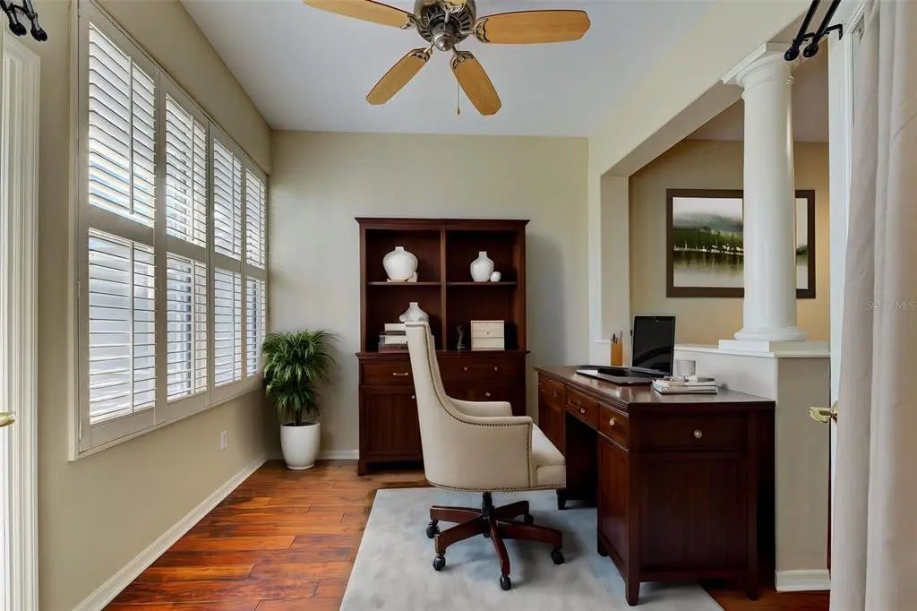 $30,000 PRICE REDUCTION AND SELLER FINANCING AT 5% AVAILABLE TO QUALIFIED BUYERS!! CALL FOR DETAILS Fabulous opportunity to own this beautiful 2 bedroom, 2 bath villa at an incredible price! Gorgeous engineered hardwood flooring in the main living areas, bedrooms and open den. Tile in all wet areas. Spacious kitchen has 42" cabinets, granite countertops, newer faucet and dishwasher. A cozy dinette overlooks the courtyard entry. Split plan provides privacy for guests. The primary suite boasts French doors and ensuite bath with stone counters, shower, linen closet and large walk-in closet. The main living and dining areas feature skylight domes making the home light and bright. There is a lovely bonus room, enclosed and air conditioned perfect for a cozy sitting area or home office. Guest bath includes stone counters and tub/shower combination. The guest bedroom features a large walk-in closet providing plenty of storage. 2-car attached garage. New roof in 2023 and AC in 2019. IMPACT WINDOWS are graced with plantation shutters. Enjoy the outdoors in the screened lanai with a spectacular view of the golf course. Pelican Pointe is a premier golf community where membership is not mandatory. Your association fee includes a social membership where you can enjoy the clubhouse with grille room and bar, heated pool, fitness center, tennis courts, pickle ball, library, and a myriad of social activities. 27 holes of golf and pro shop available. Maintenance free living at its finest where lawn care, roof, pest control, basic cable and internet are included. MOTIVATED SELLER. Come enjoy this maintenance fee, relaxing Florida lifestyle today!
