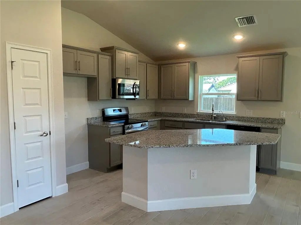- Interior FeaturesHigh Ceilings, Open Floorplan, Pest Guard System, Solid Wood Cabinets, Split Bedroom, Stone Counters, Walk-In Closet(s)