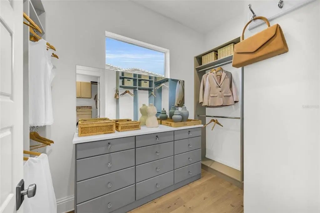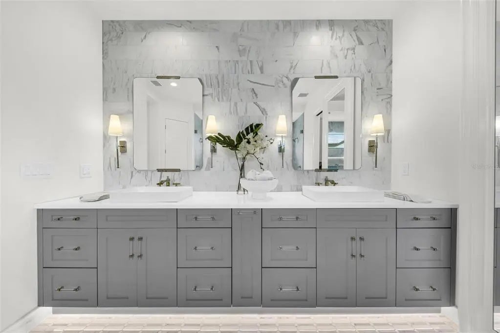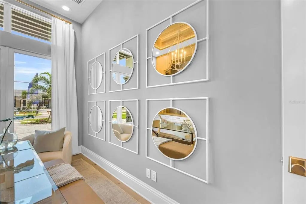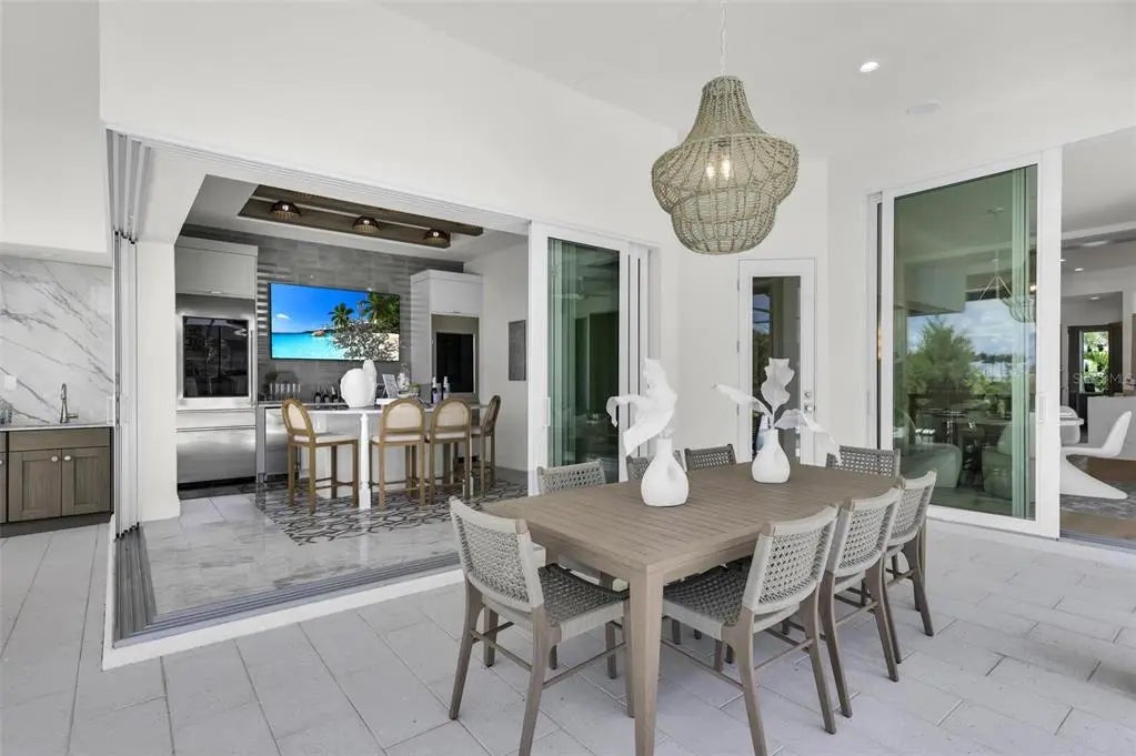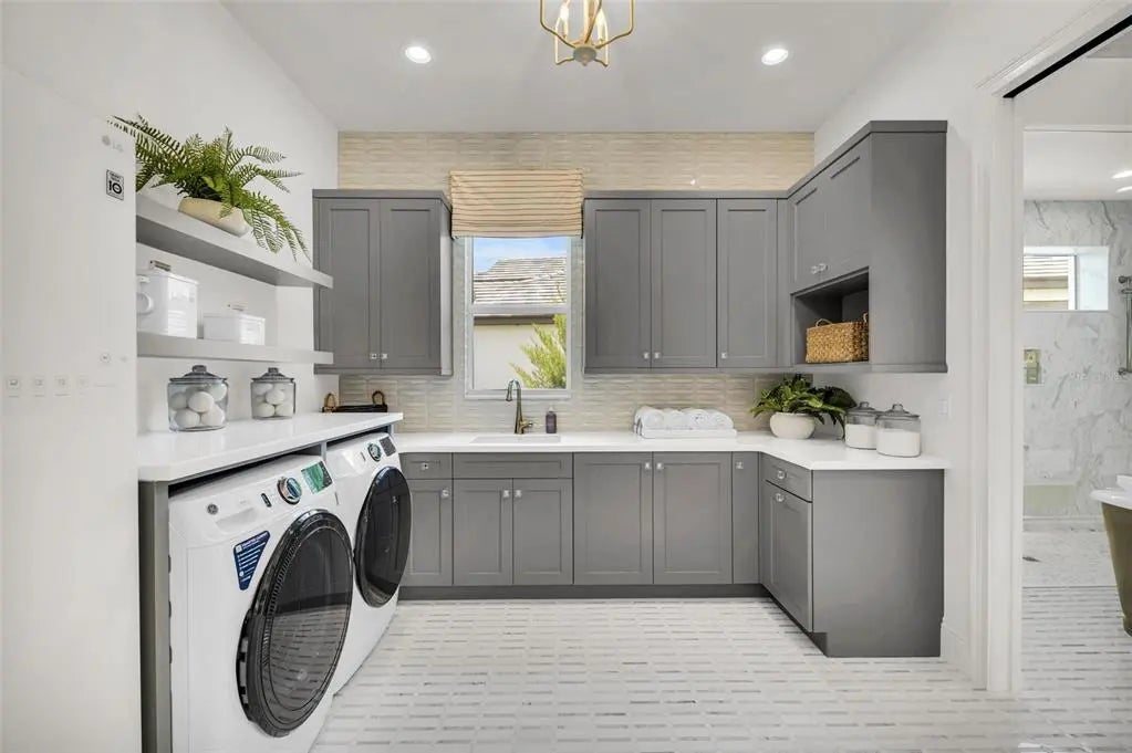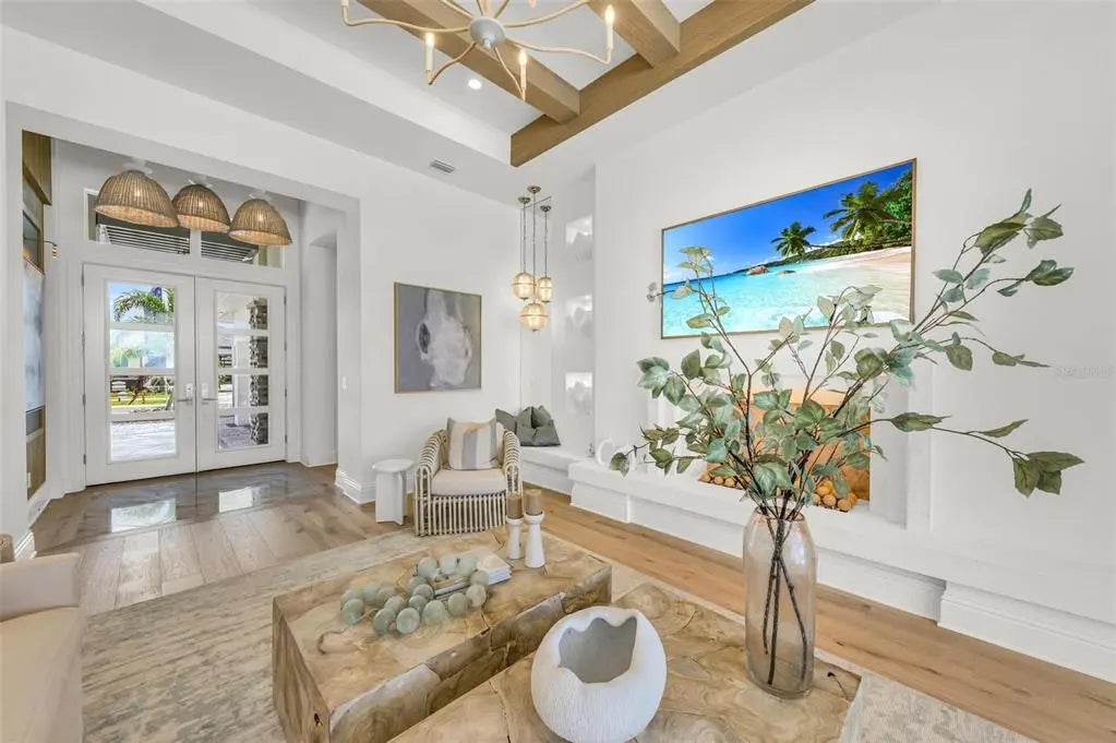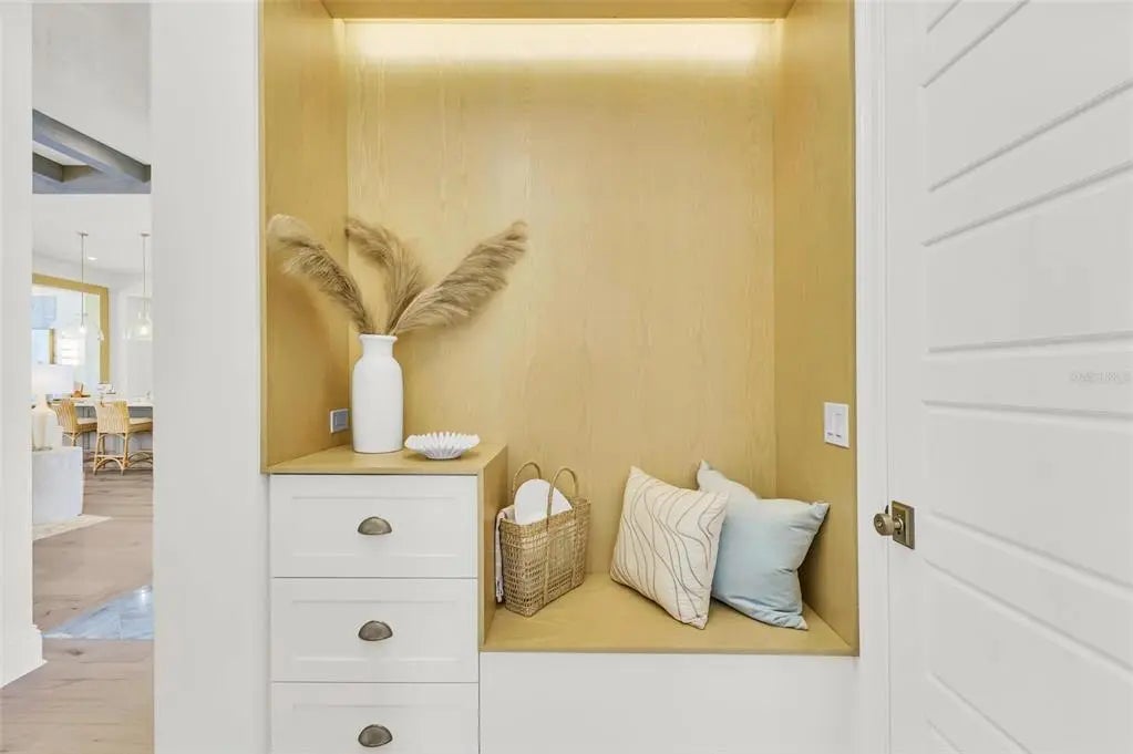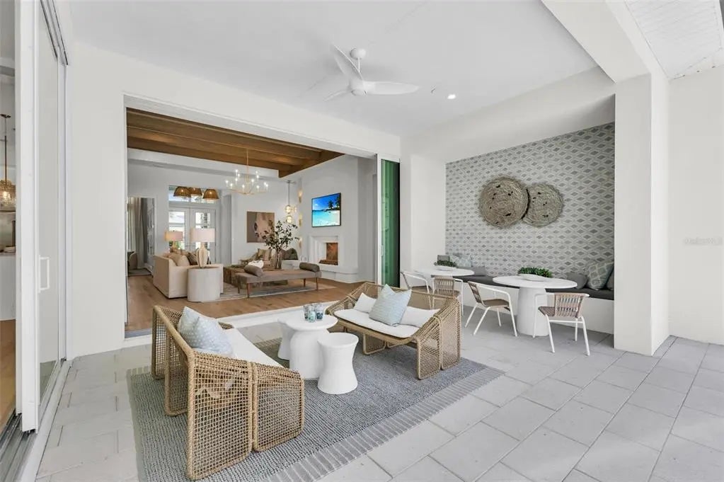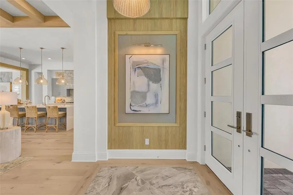 Lee Wetherington Homes gorgeous Caravel Model Home in Everly at Wellen Park is now available - fully furnished - for purchase with leaseback. This stunning custom home is styled with an inviting, sophisticated palette of soft blues and greys mixed with blonde wood tones. Luxurious details greet you as you enter through the double door entry: wood flooring with tile inlay, modern architectural elements, cast stone fireplace, and stunning 10ft sliders that pocket for easy access to over 750 s/f of covered outdoor living space. Spacious kitchen island with waterfall-edge quartz countertop, custom range hood, natural gas cook-top, and even a built-in coffee station in the pantry. Primary bedroom suite showcases elegant design details with LED accent lighting, custom built-in closets, and ensuite bathroom complete with marble tile shower and floors, free-standing tub & Venetian plaster ceiling detail. Outdoor living is accentuated with a stunning pool & spa overlooking a natural conservation area. Entertaining is a breeze with a flex-room outfitted as a wine bar that opens seamlessly to the outdoor kitchen/dining area. Everly is just minutes from the glorious Gulf Coast beaches that span from Venice to Boca Grande. Everly residents will enjoy exclusive use of the amenity center that includes a clubhouse for social gatherings, state-of-the-art fitness center, resort style pool with spa & private cabanas, chip & putt golf, four pickleball courts, and a gathering lawn for catching stunning sunsets with friends. Residents enjoy miles of connected walking trails, bike & golf cart paths, and numerous dining and social events hosted in Downtown Wellen Park. HOA fees include highspeed internet service and irrigation. List price includes all furnishings, electronics and artwork and 12 months leaseback.