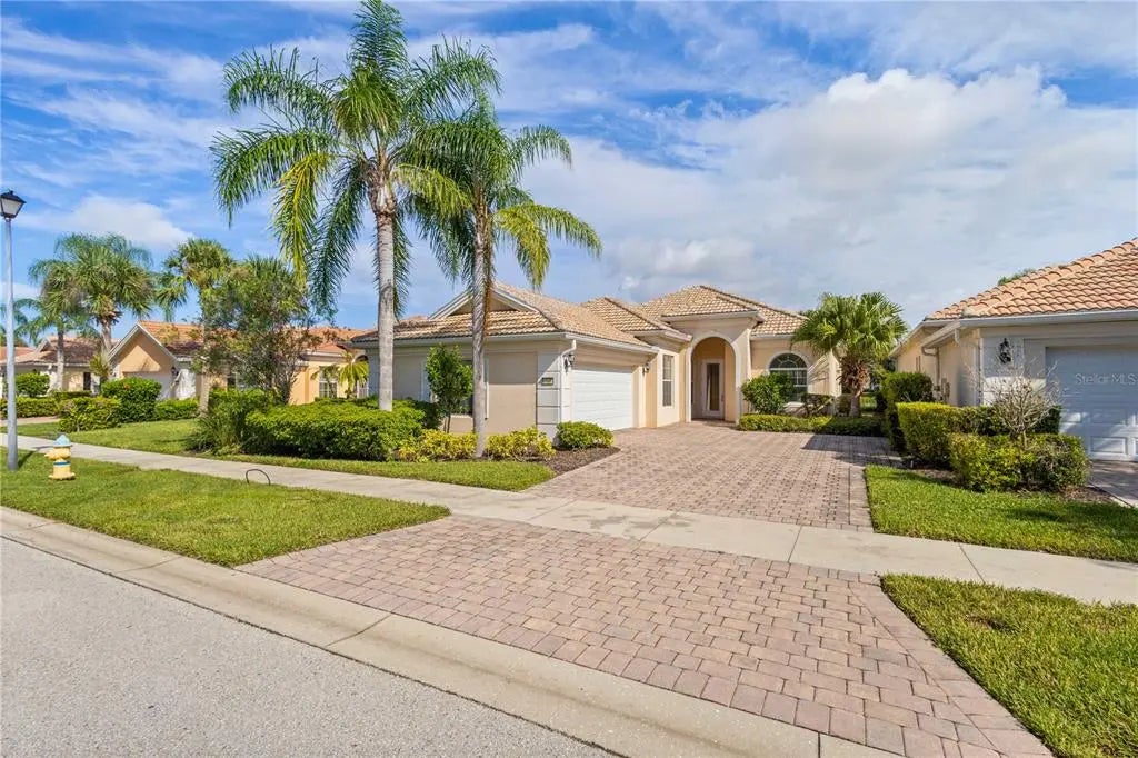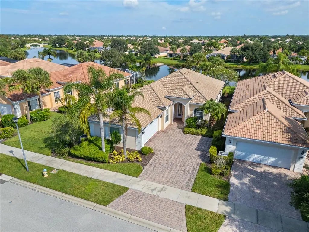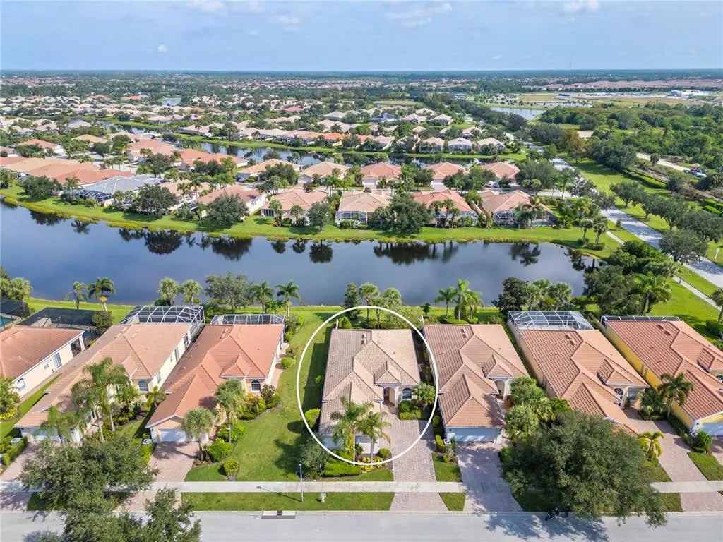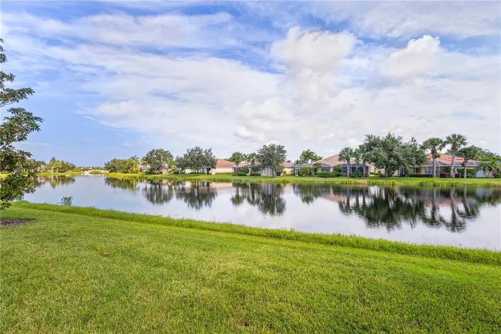 One or more photo(s) has been virtually staged. $105k price improvement! Welcome to this impeccably maintained Divosta Oakmont model, owned by a single owner. As you enter, you'll be greeted by breathtaking lake views and an open, flowing layout that seamlessly connects the Great Room, Dining Room, and Kitchen—ideal for both daily living and entertaining. The kitchen is a chef’s dream, featuring maple cabinetry, Corian countertops, and stainless steel appliances, all designed to keep you engaged with guests in the adjacent living area. High ceilings and 8-foot doors enhance the home’s spacious ambiance. The air conditioning system, just four years old, includes a transferable warranty and has been serviced biannually, with two additional service visits already paid for. The primary suite serves as a serene retreat with ample closet space and generously sized his and hers bathrooms. The split floor plan ensures privacy, with two additional bedrooms and a guest bathroom on the opposite side of the home. A versatile den offers a quiet space for work or relaxation and can be easily closed off for uninterrupted focus. The large laundry room features a drop sink and cabinets for added storage, leading to an oversized side-entry garage with an extended driveway. Step outside to the expansive covered and screened lanai, perfect for dining, entertaining, or simply relaxing while taking in the gentle breeze and panoramic water views. Privacy walls between you and your neighbors further enhance your outdoor enjoyment. Islandwalk is a pristine 830-acre gated community surrounded by lakes and preserves. With a full-time Lifestyle Director, the community offers a wealth of events, clubs, and activities to foster a vibrant social life. Amenities include three amenity buildings, a heated lagoon pool, a heated outdoor lap pool, bocce ball courts, pickleball courts, Har-Tru tennis courts, a dog park, a playground, a basketball court, and a community garden. The beautifully maintained grounds feature miles of nature and biking trails, Venetian bridges, and scenic water views. The location is exceptionally convenient, with a rear exit to Cool Today Park, the Atlanta Braves Spring Training Stadium, and the new Downtown Wellen Park, all just a short bike or golf cart ride away. Enjoy easy access to shopping, medical services, dining, and the stunning Gulf Beaches, with quick access to I-75. This home is being offered turnkey with all furnishings, dishes, cookware, silverware, TVs, and more. Don’t miss this opportunity to embrace the Florida sunshine and relaxed lifestyle!