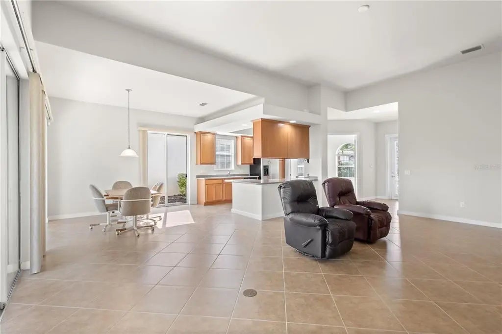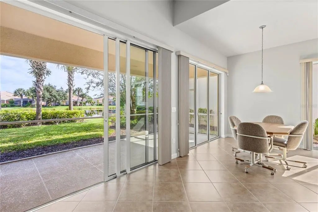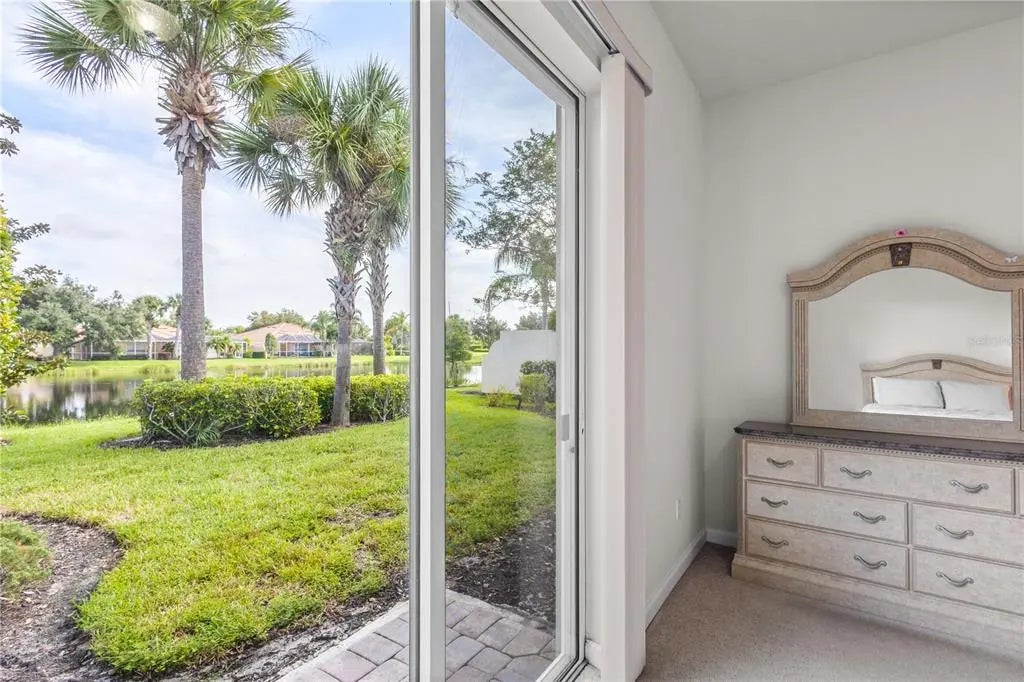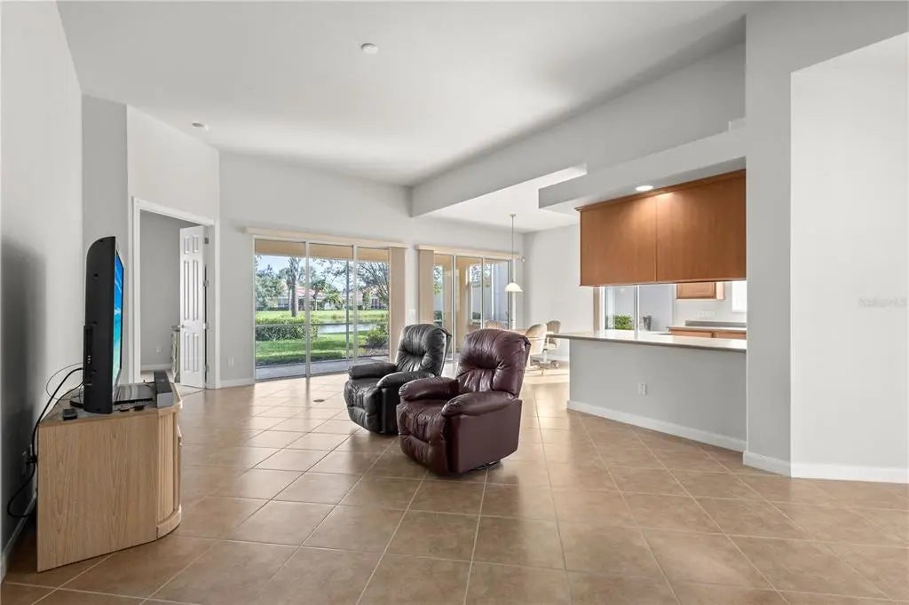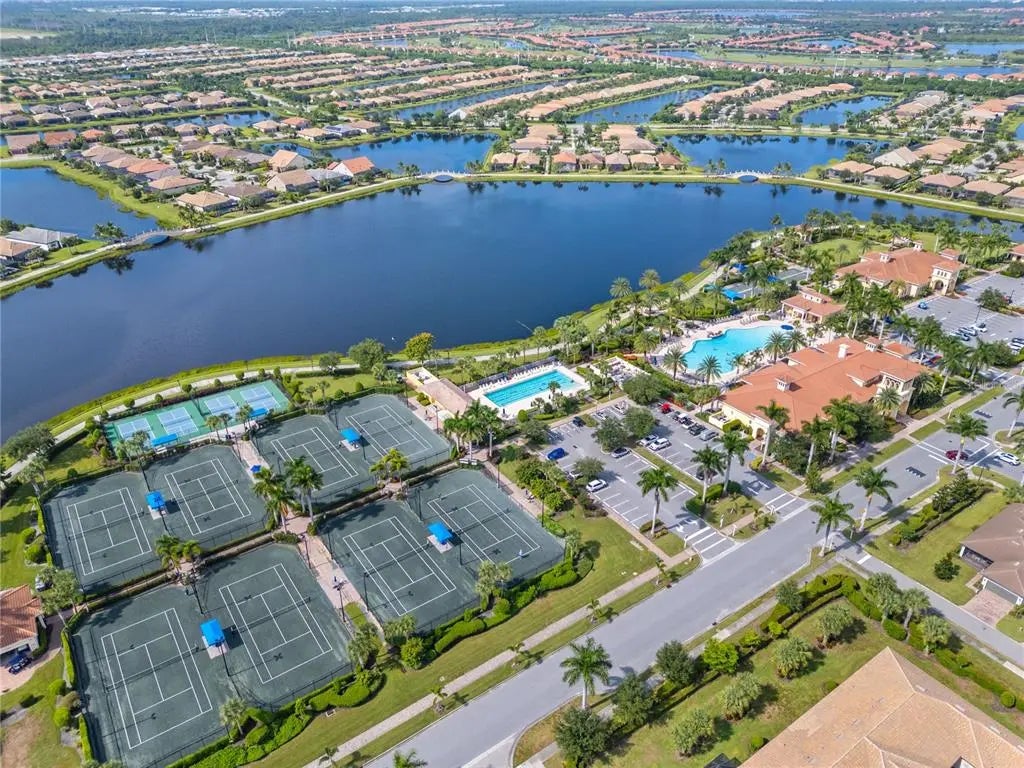 One or more photo(s) has been virtually staged. $105k price improvement! Welcome to this impeccably maintained Divosta Oakmont model, owned by a single owner. As you enter, you'll be greeted by breathtaking lake views and an open, flowing layout that seamlessly connects the Great Room, Dining Room, and Kitchen—ideal for both daily living and entertaining. The kitchen is a chef’s dream, featuring maple cabinetry, Corian countertops, and stainless steel appliances, all designed to keep you engaged with guests in the adjacent living area. High ceilings and 8-foot doors enhance the home’s spacious ambiance. The air conditioning system, just four years old, includes a transferable warranty and has been serviced biannually, with two additional service visits already paid for. The primary suite serves as a serene retreat with ample closet space and generously sized his and hers bathrooms. The split floor plan ensures privacy, with two additional bedrooms and a guest bathroom on the opposite side of the home. A versatile den offers a quiet space for work or relaxation and can be easily closed off for uninterrupted focus. The large laundry room features a drop sink and cabinets for added storage, leading to an oversized side-entry garage with an extended driveway. Step outside to the expansive covered and screened lanai, perfect for dining, entertaining, or simply relaxing while taking in the gentle breeze and panoramic water views. Privacy walls between you and your neighbors further enhance your outdoor enjoyment. Islandwalk is a pristine 830-acre gated community surrounded by lakes and preserves. With a full-time Lifestyle Director, the community offers a wealth of events, clubs, and activities to foster a vibrant social life. Amenities include three amenity buildings, a heated lagoon pool, a heated outdoor lap pool, bocce ball courts, pickleball courts, Har-Tru tennis courts, a dog park, a playground, a basketball court, and a community garden. The beautifully maintained grounds feature miles of nature and biking trails, Venetian bridges, and scenic water views. The location is exceptionally convenient, with a rear exit to Cool Today Park, the Atlanta Braves Spring Training Stadium, and the new Downtown Wellen Park, all just a short bike or golf cart ride away. Enjoy easy access to shopping, medical services, dining, and the stunning Gulf Beaches, with quick access to I-75. This home is being offered turnkey with all furnishings, dishes, cookware, silverware, TVs, and more. Don’t miss this opportunity to embrace the Florida sunshine and relaxed lifestyle!