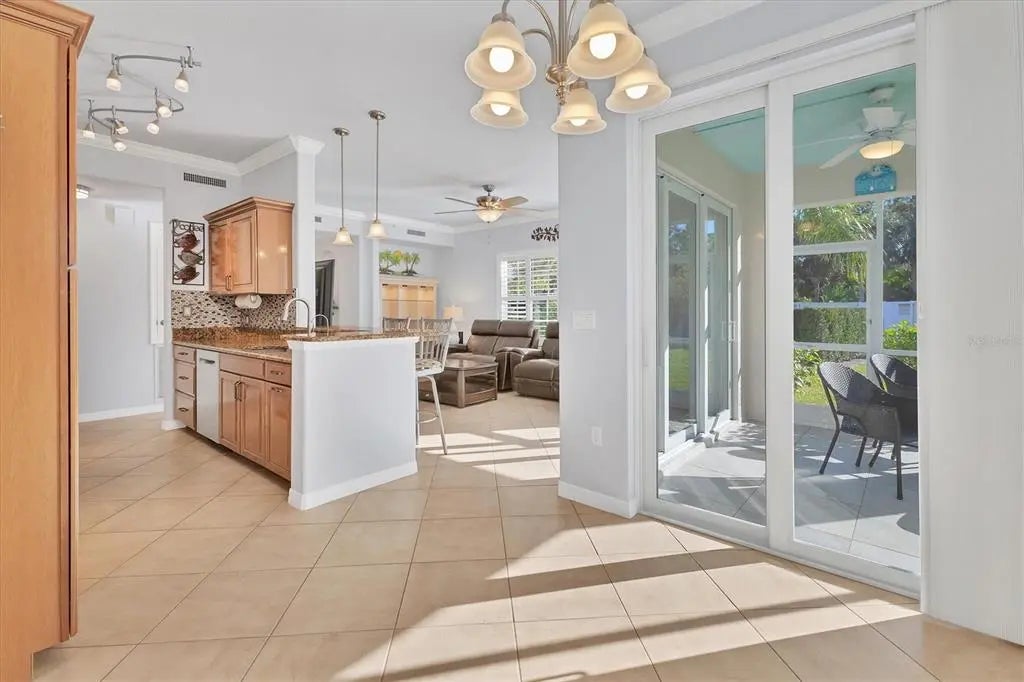 Condo living in paradise never looked better! Here is a wonderful opportunity to live minutes away to our famous Historic Downtown Venice and its beautiful beaches! This ground floor corner unit is bright and immaculate -- ceramic tile on the diagonal, beautiful crown moulding, plantation shutters and ceiling fans in all the main rooms. The kitchen features granite counters, a granite composite sink, wood cabinets, attractive backsplash and all stainless steel appliances for that clean polished look. There is a new high-efficiency HVAC system (2024) that has a fully transferrable warranty, and all other systems have been maintained and are in excellent condition. The bonus room near the entry is presently used as an office, but has the flexibility to be easily converted to a den or guest sleeping room. Also near the entry is a very large utility room with laundry, and 3 large closets to keep supplies organized or outerwear properly hung. The outdoor patio is perfect to take in our lovely Florida weather, enjoying your morning coffee or afternoon happy-hour drink. All the roofs in San Lino community were replaced in 2023, and the windows and sliders are high-impact glass. There is additional shared storage space near the elevators. San Lino is located close to many local restaurants, shopping and businesses -- and also convenient to I75 for travel to Sarasota/ Tampa in the north or Ft Myers/ Naples to the south. This is the best value for quality when compared to the rest in Venice. Truly an incredible opportunity not to be missed!
