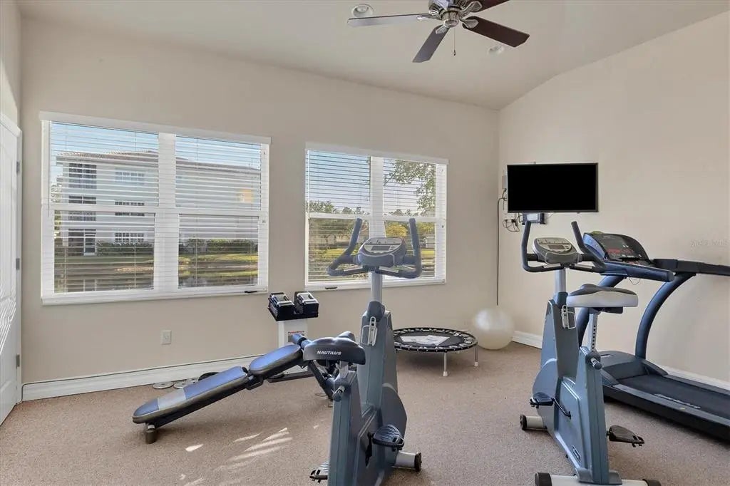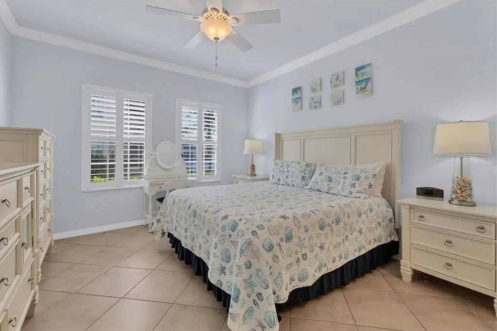 - Interior FeaturesCeiling Fan(s), Crown Molding, Primary Bedroom Main Floor, Solid Wood Cabinets, Stone Counters, Thermostat, Window Treatments