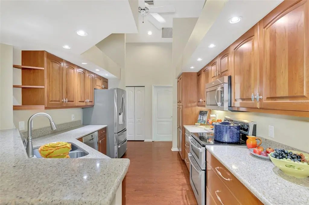 ~ $75,000 IN NEW HIGH IMPACT HURRICANE WINDOWS AND SLIDERS THROUGHOUT THE HOME ALONG WITH THE FRONT DOORS HAVE BEEN REPLACED FOR PEACE OF MIND. ~ PHENOMENAL VALUE, Energy efficient and provide peace of mind to enjoy the Florida lifestyle! BEAUTIFUL one owner three bedroom, two bath pool home has provided years of happy memories to original home owners. IMMEDIATE GOLF MEMBERSHIP AVAILABLE ALLOWS BUYERS THE OPPORTUNITY TO SKIP THE LONG WAIT LIST. Garage offers plenty of space for two cars and provides plenty of room for a golf cart with a side load garage door. Space for storing other items in the built in storage. 114 FIELDSTONE offers a split floor plan with Cathedral ceilings in the main living, a serene backyard blessed with privacy you will notice as you enter and view through the NEW HURRICANE SLIDERS. Turn the backyard into your own personal PRIVATE space! Home has engineered hard wood floors throughout the main living areas, granite counter tops in the kitchen, SS kitchen appliances, and a beautiful quiet pool area. NEW roof in 2018, AND A NEW GARAGE DOOR IN 2021. This home will make any owner feel safe and assured that this home has been loved and maintained throughout its lifespan! The second bedroom offers a built-in Murphy bed and desk system taking advantage of space saving and making this bedroom/den feel large and multifunctional. Landscaping has been freshened and this one. GOLF MEMBERSHIP opportunity is attached to this property and the ability to SKIP the waitlist! Who wouldn't want this one! VGCC is a private, member-owned country club offering an 18-hole championship golf course that is as challenging as it is beautiful. But it's not just about golf! The club also boasts top-notch Har-tru tennis courts, a State of the Art "Wellness Center" that offers equipment that can track your workout, an onsite physical therapist, an onsite message therapist and onsite personal trainer(s) and an Olympic Jr. sized pool and spa area. The dining options are exquisite, with a variety of cuisines to satisfy every palate and newly expanded outside dining area. The community spirit here is strong, with members often gathering for social events and activities. The staff is friendly and attentive, ensuring a memorable experience every time. So, whether you're a golf enthusiast or someone who enjoys a leisurely lifestyle in a luxurious setting, Venice Golf and Country Club is the place to be! The location is ideal, with close proximity to shopping, dining, and the beautiful beaches of Venice. Make your appt TODAY before this one is GONE! This one is perfect for full or part-time owner and awaiting its new forever owner! ALL PROPERTY OWNERS IN VGCC MUST BE A MEMBER OF THE COUNTRY CLUB. PLEASE ASK ABOUT FEES PRIOR TO VIEWING THIS PROPERTY! THERE IS A MANDATORY REQUIREMENT, THANK YOU.