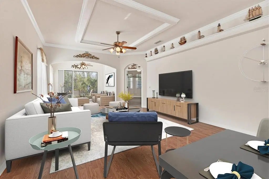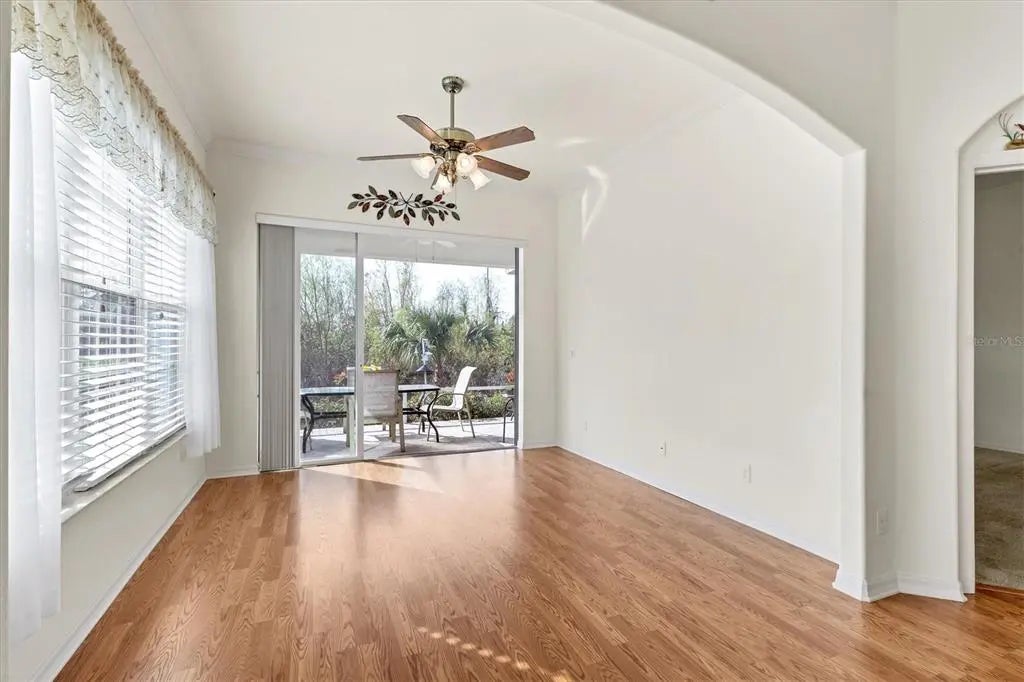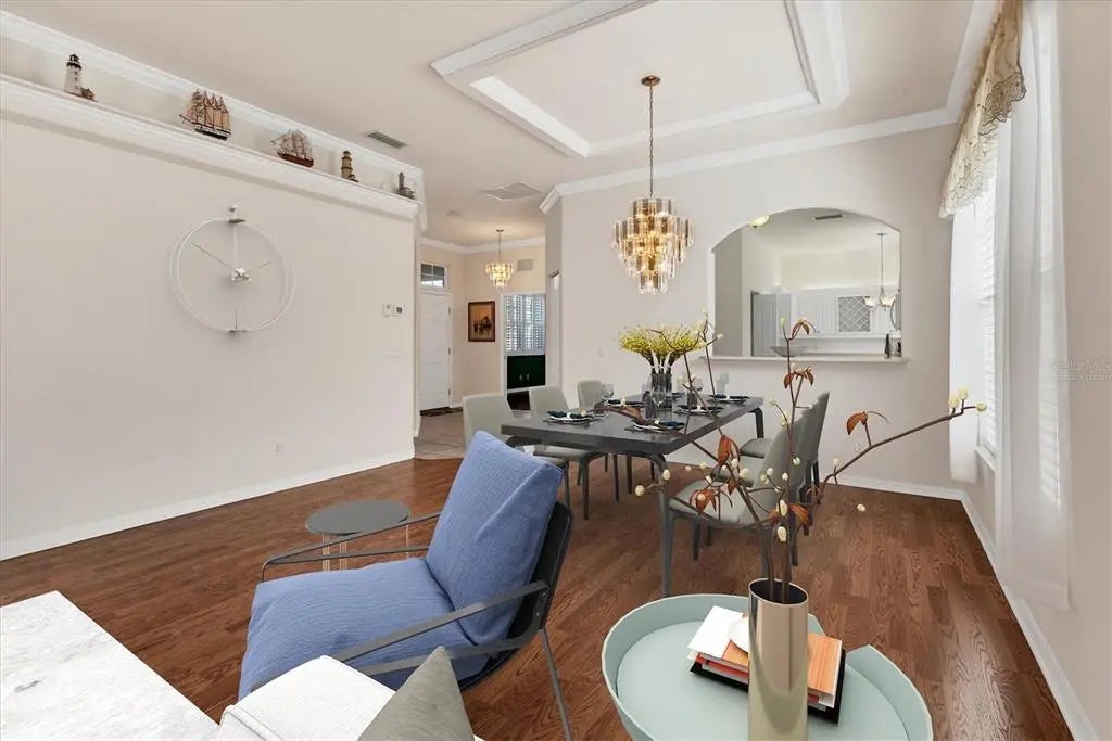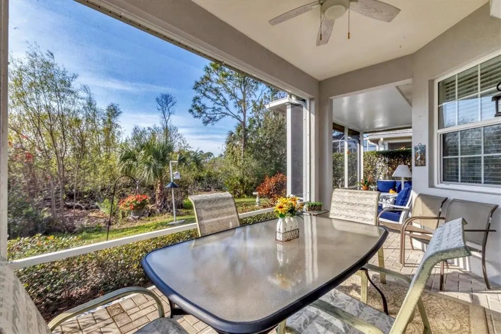One or more photo(s) has been virtually staged. PRICE IMPROVEMENT! This Charming 3-bedroom/2.5 bathroom Patio Home located in the desirable Buckingham Meadows neighborhood in St Andrews East has been meticulously maintained and offers a wonderful blend of comfort and functionality with a light and bright ambiance and popular floor plan - The Eaton II. As you approach the home, you are greeted by a lovely screened lanai. Walk inside to a spacious, open layout filled with natural light creating a warm and welcoming atmosphere throughout. The den is just off the front foyer providing flexible space for an office or can be used as the 3rd bedroom. The kitchen features white cabinetry, an eat-in breakfast area with plenty of extra storage space, complemented by an inside laundry room. The large living room has crown molding. The cozy Florida room offers a peaceful retreat for reading or just watching tv and it opens up to an expanded screened lanai perfect for outdoor entertaining or grilling and overlooks a tranquil, peaceful, wooded setting. The expansive garage includes convenient wall storage cabinets for added organization. No CDD Fee, This Home is Storm Ready with HURRICANE IMPACT WINDOWS and a Hurricane Shutter on the sliding doors for peace of mind. Enjoy the benefits of 2 community pools for relaxation and recreation. The prestigious Plantation Golf and Country Club offers several membership options though membership is not mandatory. The community is home to two 18-hole golf courses and offers reciprocal privileges with other courses in the off season. With easy access to local beaches, the Wellen Park Town Center, Atlanta Braves Stadium and Historic Downtown Venice, which offers dining, shopping and entertainment options, this home offers the ideal blend of comfort the perfect combination of convenience and location.