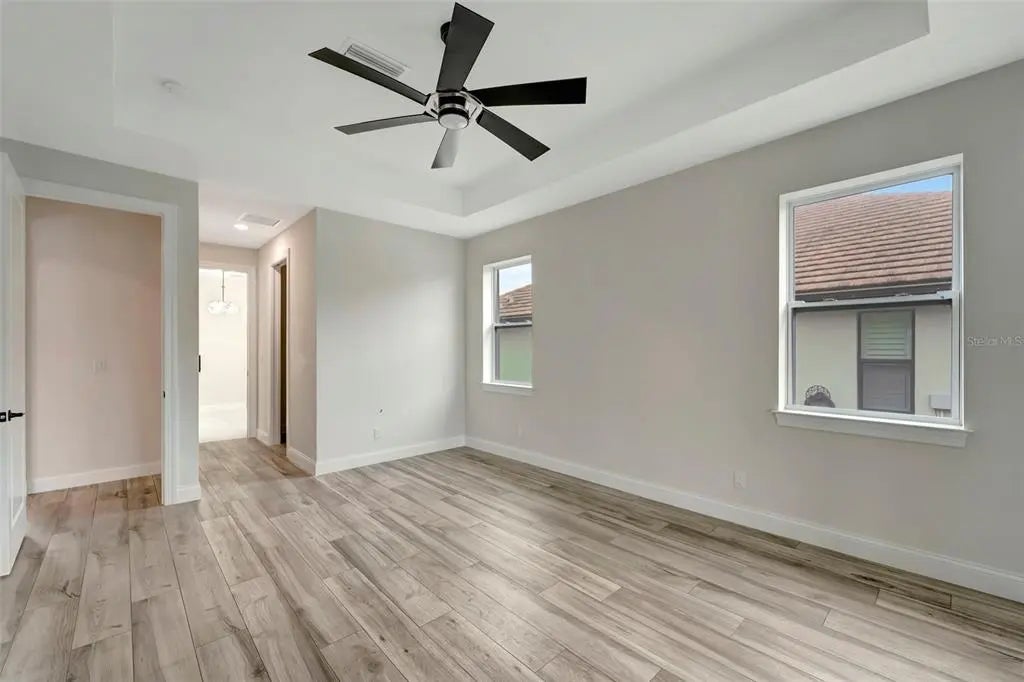- Interior FeaturesCeiling Fan(s), Crown Molding, Dry Bar, Eating Space In Kitchen, High Ceilings, Kitchen/Family Room Combo, Living Room/Dining Room Combo, Open Floorplan, Primary Bedroom Main Floor, Split Bedroom, Stone Counters, Thermostat, Tray Ceiling(s), Walk-In Closet(s)
