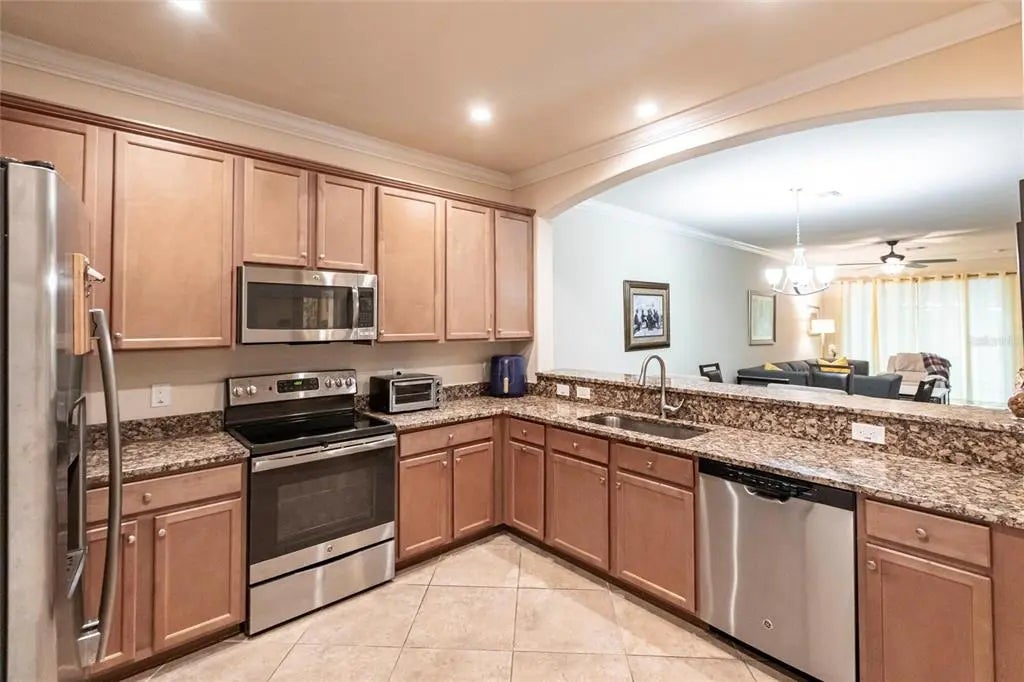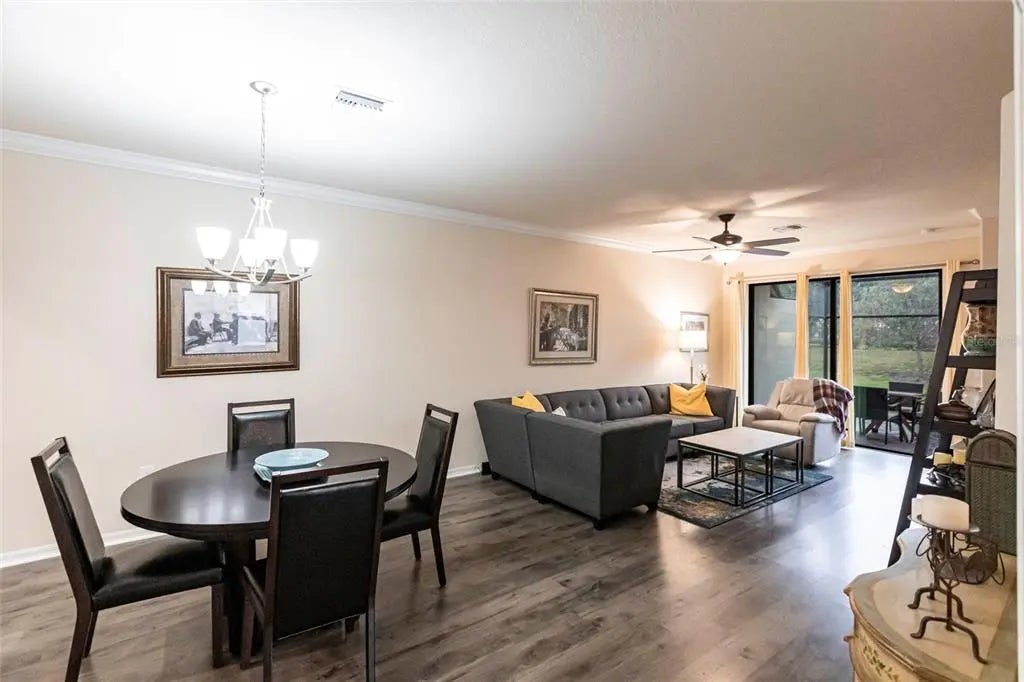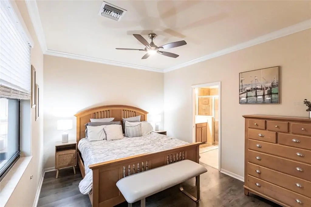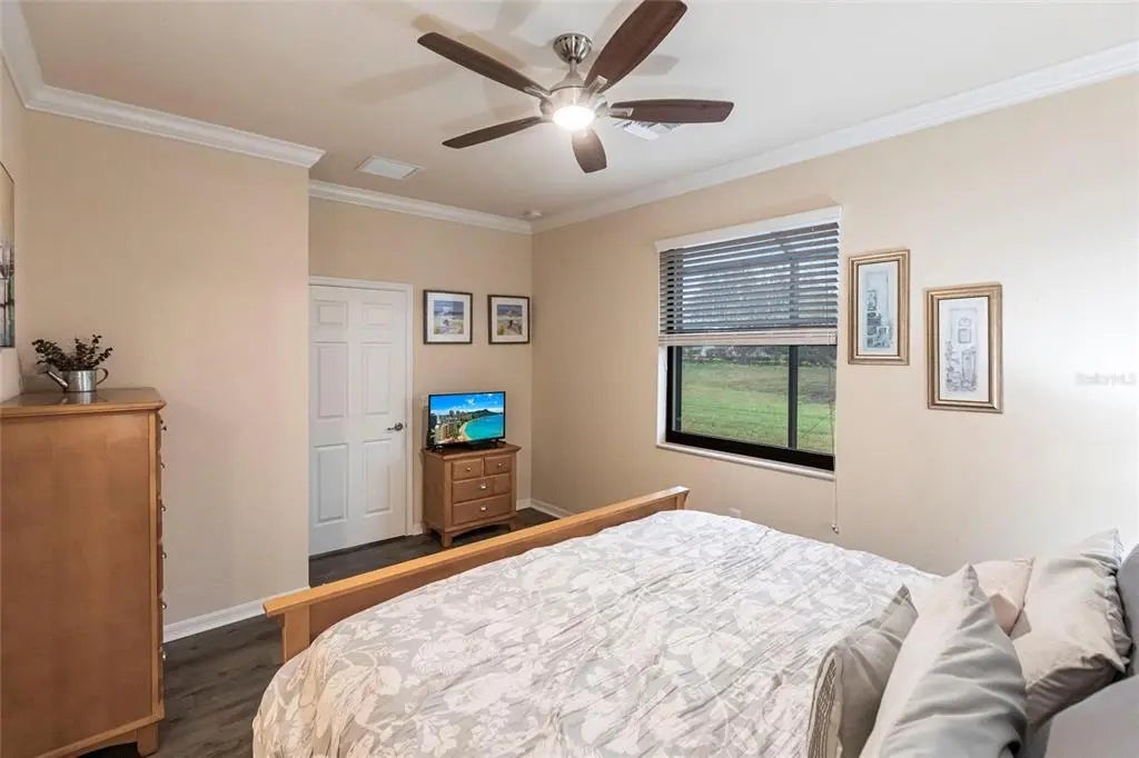 - Interior FeaturesCeiling Fan(s), Crown Molding, Eating Space In Kitchen, High Ceilings, Living Room/Dining Room Combo, Open Floorplan, Solid Wood Cabinets, Split Bedroom, Stone Counters, Walk-In Closet(s), Window Treatments