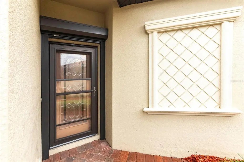 - Exterior FeaturesHurricane Shutters, Irrigation System, Lighting, Rain Gutters, Sidewalk, Sliding Doors