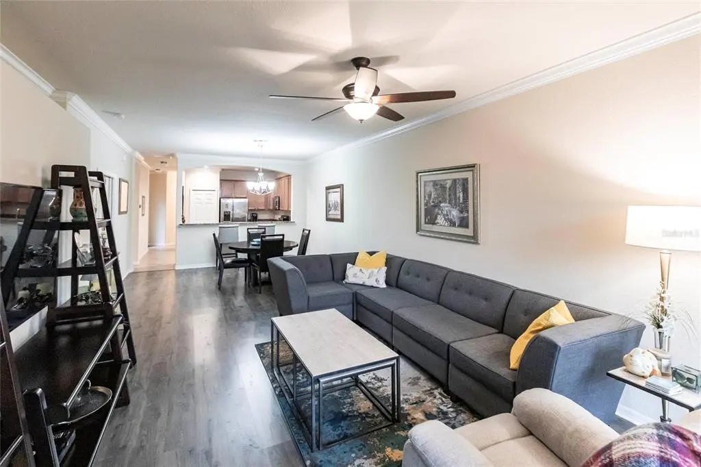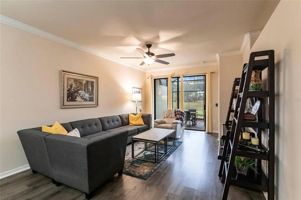 Turn-Key Perfection Awaits—Step into effortless living with this stunning 3-bedroom, 2-bathroom villa—a true gem that’s move-in ready and waiting for you! From the moment you enter, you’ll be captivated by the bright, cheerful ambiance and elegant touches throughout. Designed for both style and comfort, this home features crown molding in every room, sleek granite countertops, and modern light fixtures that elevate the space. The combination of engineered and tile flooring ensures easy maintenance while adding to the home’s stylish feel. Ceiling fans in every room provide year-round comfort, while the open layout makes entertaining a breeze. Selling fully furnished, all you need to do is pack your bags and move in! Whether you’re looking for a seasonal retreat or a forever home, it doesn’t get better than this for true turn-key living. Gran Paradiso is a luxurious, resort-style community offering many amenities - A gated entrance with a stunning clubhouse, a resort-style pool, and a state-of-the-art fitness center, including tennis or pickleball courts. Discover picturesque walking and biking paths. Unwind and revitalize in the sauna or steam rooms. Additionally, you'll enjoy hassle-free living with affordable HOA dues, including cable, internet, and lawn maintenance. Don't miss out—schedule your showing today!