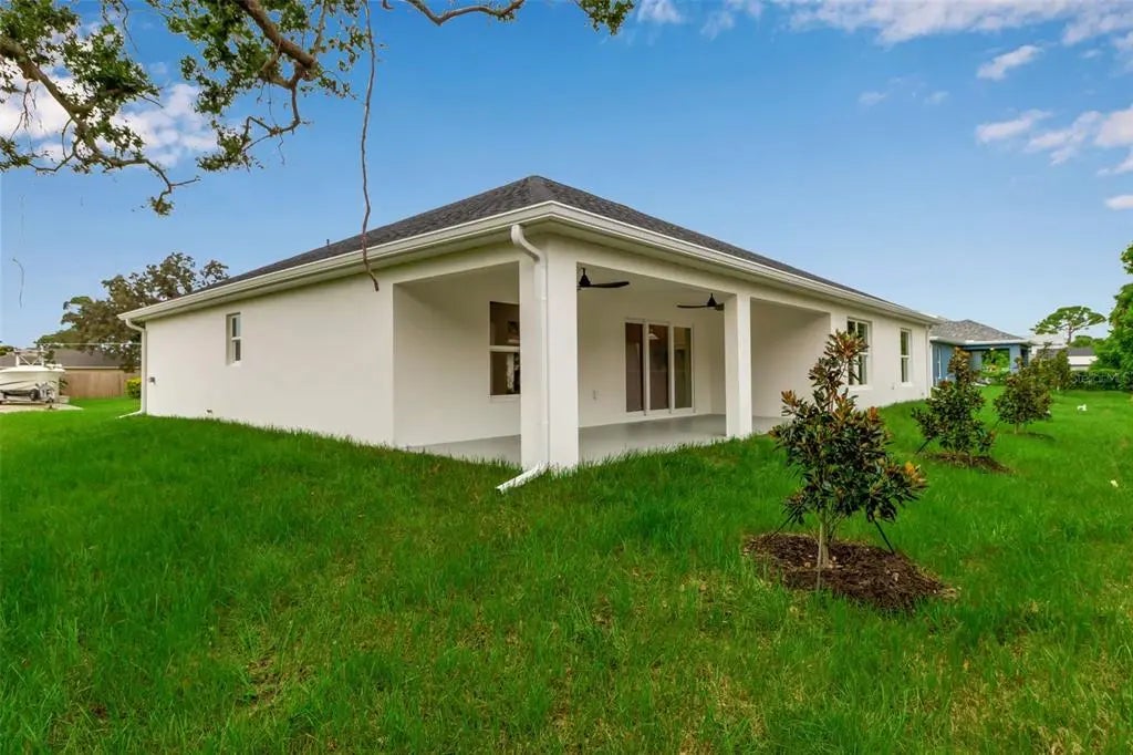 Welcome to the Boca at 756 Citrus Road — a beautiful new build by Blue Water Custom Homes that blends timeless design with modern functionality in the heart of South Venice. The exterior is warm and inviting, finished in soft stucco with a warm white tone and accented by elegant stone. Clean rooflines, large windows, and a charming covered entry create a refined first impression, while the three-car garage enhances both curb appeal and practicality. The overall look is fresh, coastal, and enduring — a design that feels right at home in Florida’s landscape. Inside, cathedral ceilings soar over the main living area, filling the home with natural light and volume. The open-concept layout seamlessly connects the great room, dining area, and kitchen — a perfect balance of style and function for everyday living or entertaining. The kitchen is a true highlight, showcasing slim shaker-style wood cabinetry, a white stone backsplash, and a built-in white range hood for a clean, cohesive look. Black-and-white pendant lights above the island and a coordinating dining fixture add the perfect touch of personality and contrast, striking a balance between trend and timelessness. A generously sized pantry with a pocket door adds both storage and a subtle design flare. The split floor plan offers both privacy and flow. The primary suite is tucked to one side of the home and features two walk-in closets. A private hall leads to the en-suite bathroom, where a freestanding soaking tub takes center stage, complemented by dual vanities and a walk-in shower with refined tile details. On the opposite side of the home, two additional bedrooms share a full bathroom, designed with the same level of thoughtful finishes. The laundry room is ideally located between the garage and the main living space, making everyday routines simple and efficient. The three-car garage is a standout feature, offering space not only for vehicles but also for storage, hobbies, or recreational gear. At the rear, large sliding glass doors open to a covered lanai, extending the living space outdoors. Whether for morning coffee, relaxing evenings, or entertaining friends, this area captures the essence of Florida living. Set in South Venice, this home offers not just comfort but freedom — with no HOA, no CDD fees, and no flood insurance requirement. Optional membership in the South Venice Civic Association provides exclusive access to a private beach ferry, community boat ramp, and park amenities. Located just minutes from Shamrock Park, the Venetian Waterway Trail, dining, shopping, and Gulf beaches, this home is ideally placed to enjoy everything the area has to offer. Crafted with care and backed by a 2-10 Home Buyers Warranty, the Boca at 756 Citrus Road is ready to welcome its first owners to enjoy both its thoughtful design and coastal lifestyle.