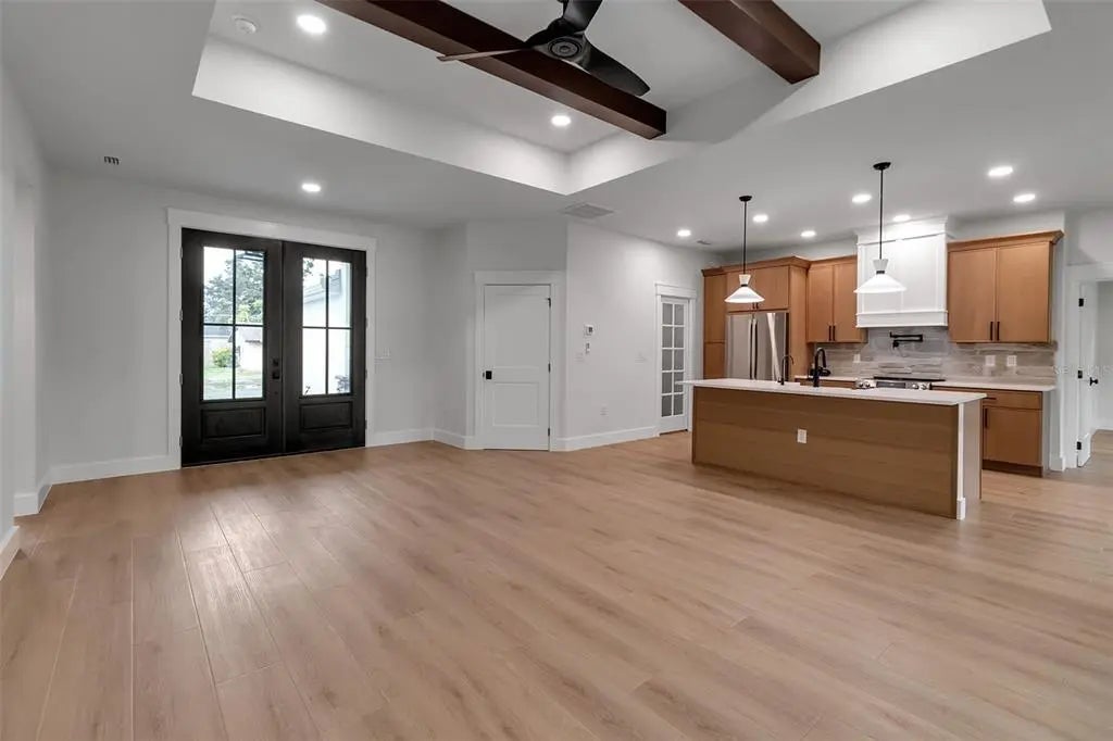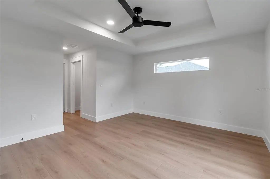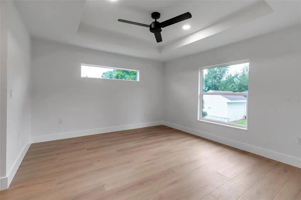 - Interior FeaturesCeiling Fan(s), High Ceilings, Open Floorplan, Primary Bedroom Main Floor, Solid Surface Counters, Split Bedroom, Thermostat, Tray Ceiling(s), Walk-In Closet(s)