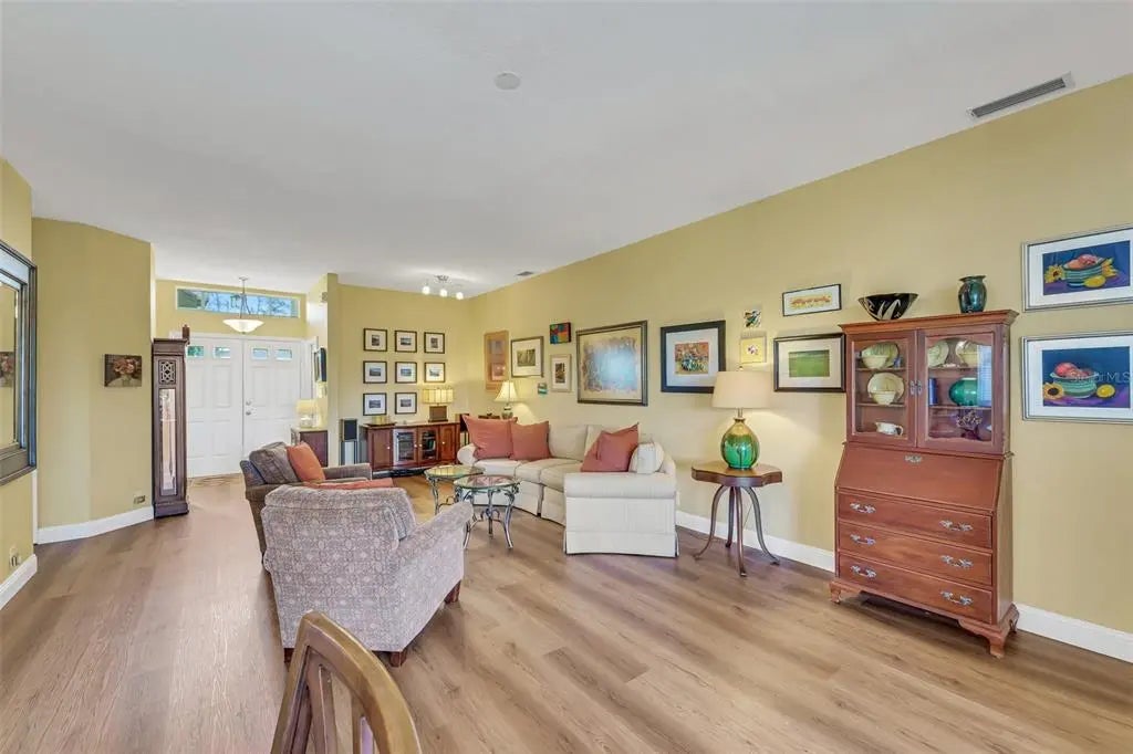 Discover serenity in the heart of Venice's coveted Southwoods neighborhood with this charming 2-bedroom, 2-bathroom home, boasting an additional den for versatile living. Embrace the essence of hassle-free living with its maintenance-free design, allowing you more time to enjoy in the delights of this great location! Nestled amidst mature tree-lined streets, this residence invites leisurely strolls and peaceful moments. Step inside to find a thoughtfully designed layout, highlighted by a spacious lanai seamlessly connecting the indoor and outdoor living spaces, perfect for entertaining or simply unwinding after a busy day. Indulge in the luxury of ample storage with plenty of closet space, complemented by newer flooring that adds a touch of modern elegance throughout the entire house. Delight in culinary adventures in the well-appointed kitchen featuring granite countertops and a spacious pantry, perfect for the home chef and avid entertainer alike. Park with ease in the large 2-car garage and relish the convenience of community living with access to a sparkling pool, ideal for soaking up the Florida sunshine and mingling with neighbors. Retreat to the tranquility of your backyard oasis, which backs up to a small preserve, offering a serene backdrop for outdoor gatherings. Experience the epitome of comfort and style in this Southwoods sanctuary. Make this your forever home and discover the beauty of Venice living at its finest. Most furniture will convey!