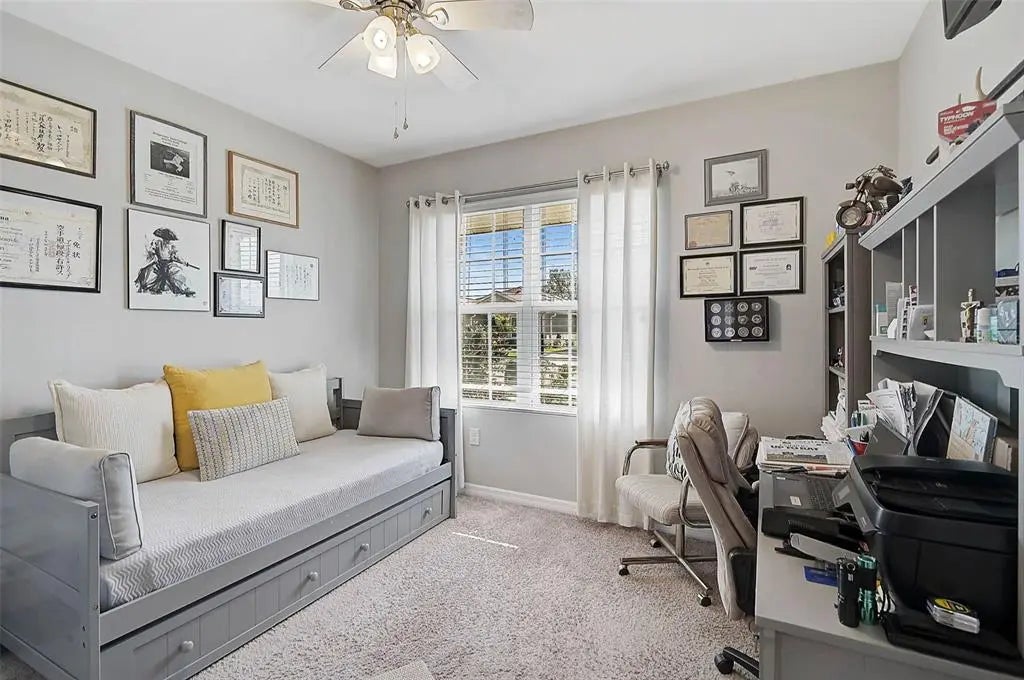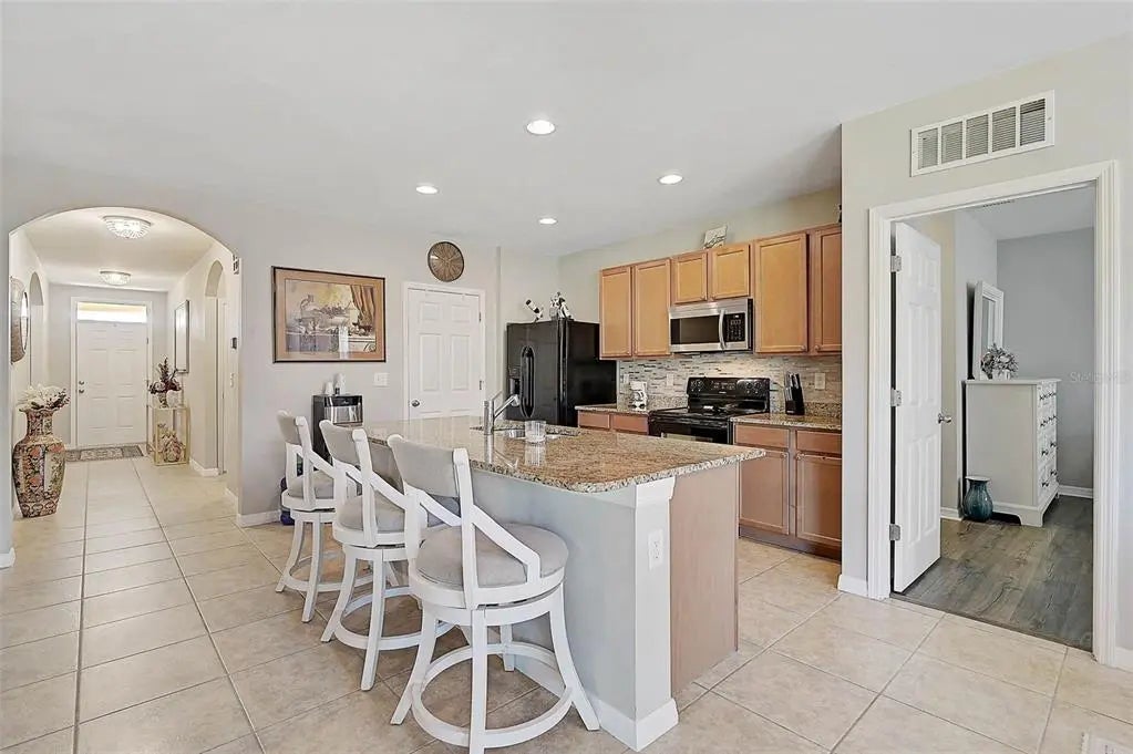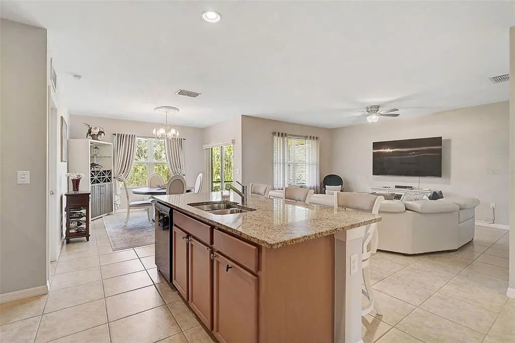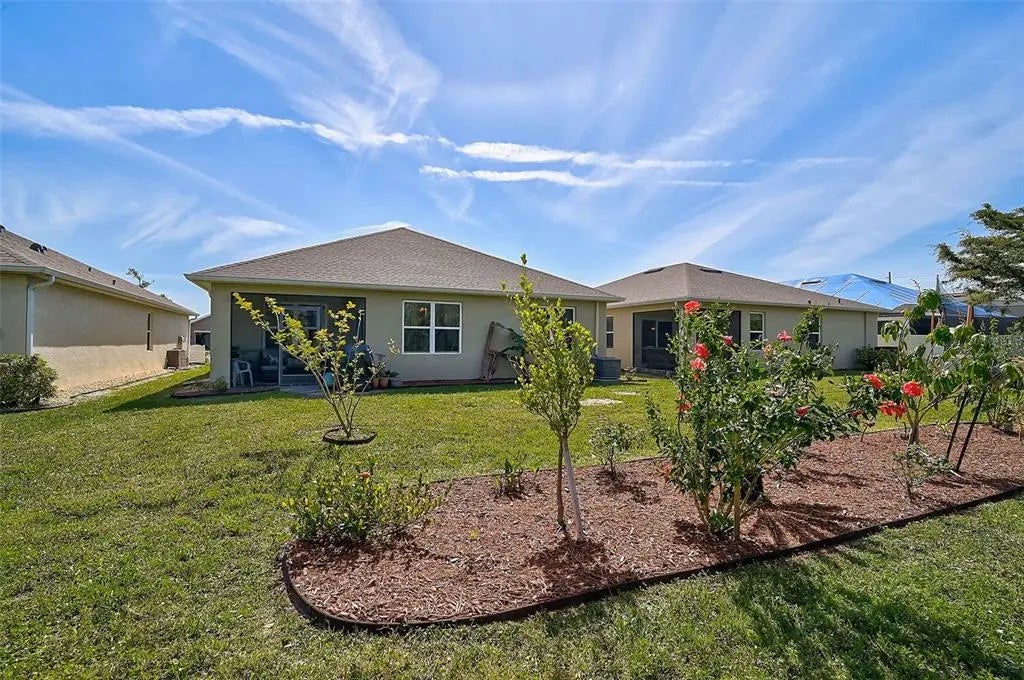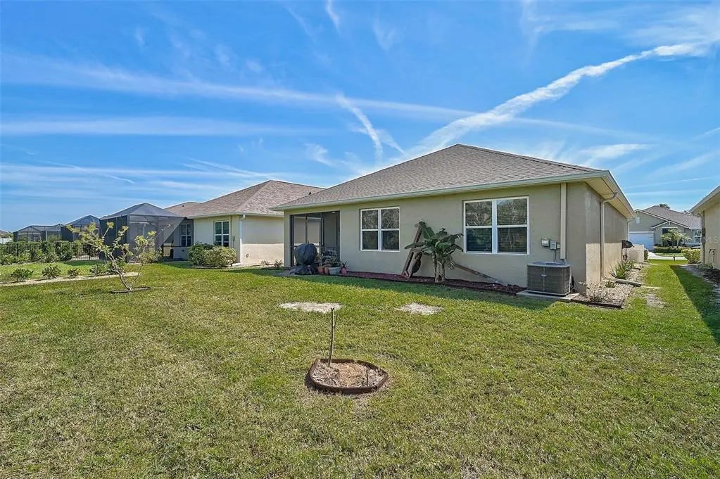 Under contract-accepting backup offers. Uncover Your Dream Home with Unmatched Elegance and Spacious Living! Welcome to Rapalo, an exceptional residence that seamlessly blends exquisite tile flooring with a bright, open living area perfect for relaxation or lively gatherings. With a brand-new roof installed in November 2024, you can transition into your new home with complete peace of mind! Picture yourself entertaining friends around the generous kitchen island, surrounded by luxurious granite countertops, an updated stylish backsplash, and a sleek microwave that elevates the heart of your home. The thoughtfully designed split floor plan provides ultimate privacy, with the Primary Suite thoughtfully separated from the additional bedrooms. This tranquil sanctuary features a private ensuite, ensuring you wake up refreshed and rejuvenated each day. Every room in this meticulously maintained home showcases modern finishes, ready for you to infuse your personal touch. Looking for a dedicated workspace? The versatile office/flex room is ideal for your remote work needs. Step outside to a spacious backyard and unwind in the screened-in lanai, a fantastic retreat for relaxation or entertaining guests. Embrace the perks of a lively community, just steps away from a refreshing pool—your perfect spot for cool dips and social gatherings. Plus, with no CDD fees, you can fully enjoy all the benefits of this fantastic neighborhood without any additional costs! This home beautifully combines style, comfort, and privacy, all within an expertly maintained setting. Located just minutes from shopping, dining, and only a quick 10-minute trip to breathtaking beaches, it truly offers the ultimate lifestyle. Don’t let this opportunity slip away—schedule your showing today and discover why this home could be your perfect match!