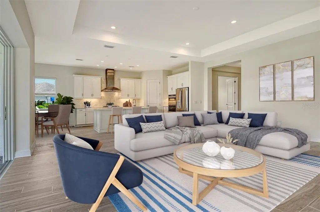 One or more photo(s) has been virtually staged. The Silver Sky Floorplan is perfect for a family, entertaining or extra room for guest's. The foyer/ gallery entry makes an elegant impression leading to an open great room/dining area with sliding glass doors and pool bath. This home includes a den with double swing doors, a large utility room, guest room with en suite, a luxurious master suite that has two walk in closets and two secondary bedrooms. The large covered lanai has a gas stub for grilling and dedicated circuit for refrigerator at outdoor kitchen. A two foot garage extension was added. This spacious new home design is located on a corner homesite with extra green space behind and beside the home providing additional common area on two sides of the home. Conveniently located near a gated entry to go for a bicycle ride, golf cart or take a stroll Downtown Wellen Park close by.