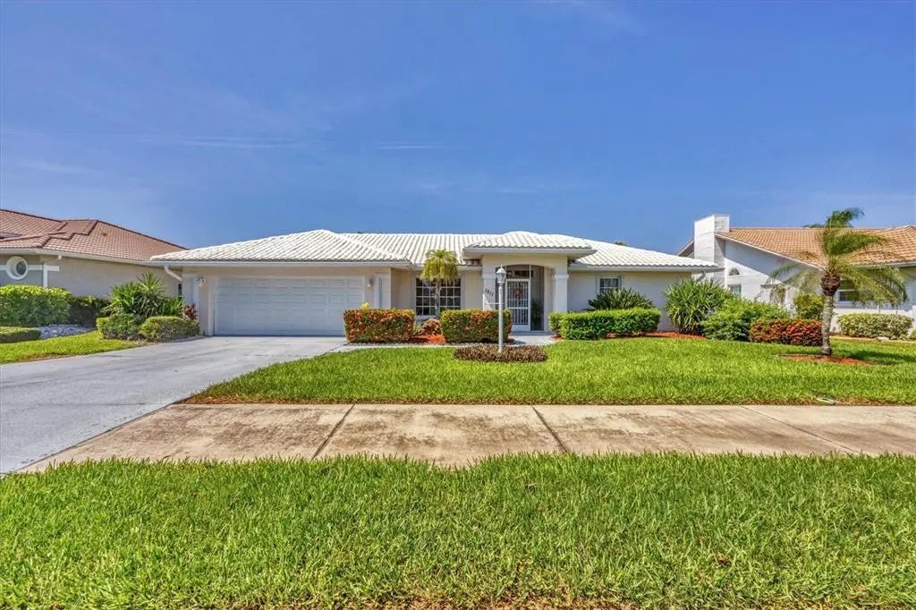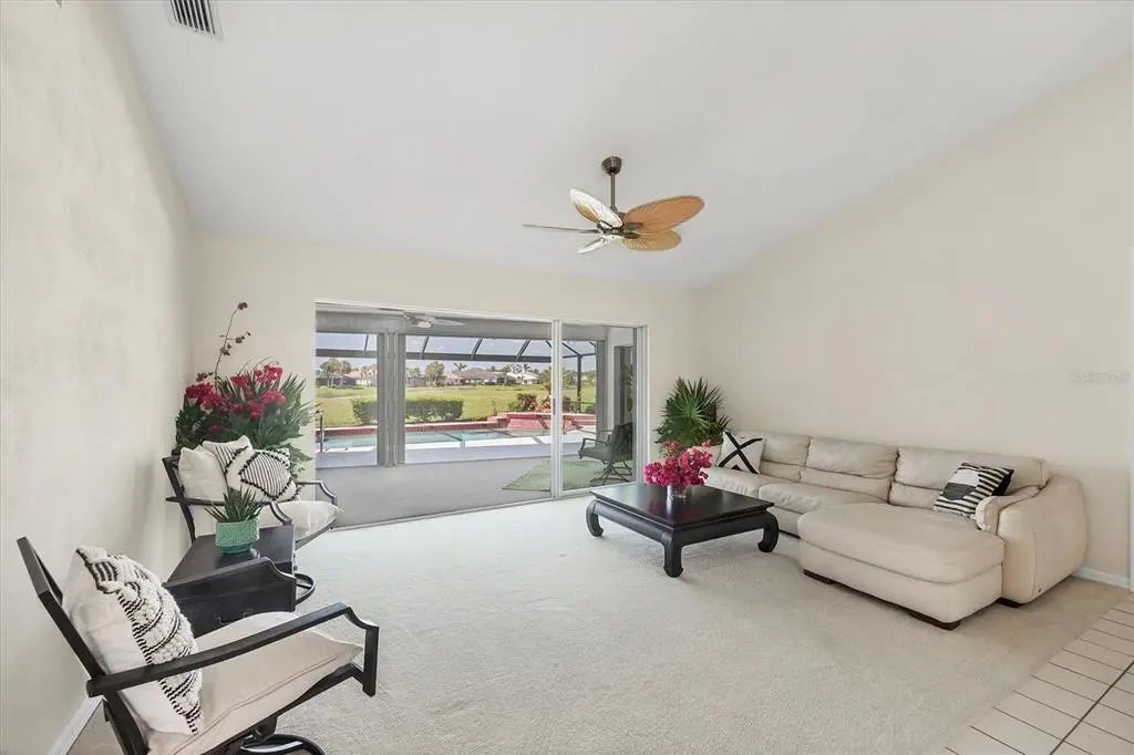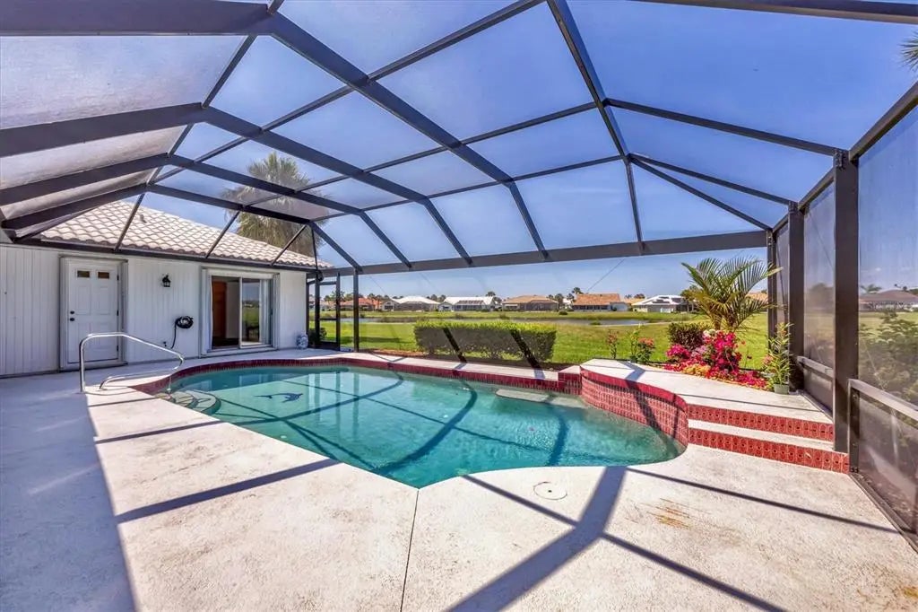 NEW IMPROVED PRICE! AMAZING VIEW! Calling all Golfers! Gorgeous Home overlooking the 9th Hole in gated Waterford Golf and Tennis Club neighborhood. Rarely available in this amazing location, the home can be partially furnished or with no furniture. 3 bedroom, 2 bath split home is immaculate and ready for move in. The primary has plenty of room for a king AND has an entire corner that opens to the pool, perfect space for sitting area or work space. En-suite has deep tub and walk in shower. The kitchen opens up to the spacious family room with a decorative fireplace and additional sliders to the pool area. 2 additional bedrooms and a bath complete with access to the pool, have plenty of room and closet space. The split floor plan allows privacy to the additional bedrooms. One of the additional bedrooms could easily be used as a study/home office that overlooks the pool. The partially covered screened lanai and pool area is perfect for entertaining or having an evening cookout. Live both inside and out with sliders opening on 3 sides of the house, as you move effortlessly to a private outdoor living area with screened-in lanai, Its sparkling pool, and surrounded mature landscaping and stunning views of the golf course. This home has it all!! The Waterford Community has amazing amenities including; heated community pool/spa, tennis courts, fitness center, access to 3 rated golf courses, pro shop and dining. Additional shopping, restaurants, Legacy Trail and Venice's historic downtown area and the Gulf Beaches. Additional Notes: Hurricane Shutters in lanai give you outside area and protection at the same time. NOT located in a flood zone, with no damage from any of 2024s storms. Low HOA fees. Membership to Golf Club is not required. Access to the restaurant with no minimum fees. Ready for your new home?