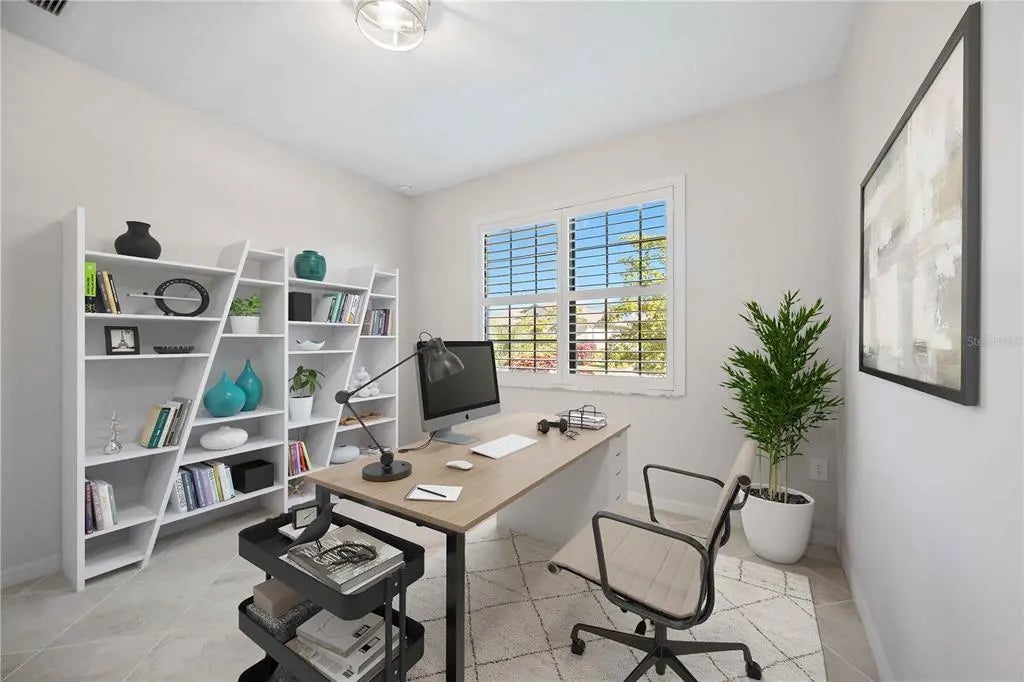 PRICED TO SELL!! Discover Tortuga – A Gated Community! MOTIVATED SELLER!! VA Assumable Mortgage 2.875%! This MOVE-IN READY home features 3 spacious bedrooms, 3 full bathrooms, and a versatile den. Designed with an open-concept floor plan, the kitchen flows seamlessly into the dining and family areas. The kitchen boasts an oversized center island, granite countertops, stainless steel appliances, and a walk-in pantry. Classic plantation shutters throughout and a retractable sunshade in the family room enhance both comfort and style. The spacious den offers endless possibilities and is ideal for a home office. The luxurious primary suite features a beautiful board and batten feature wall and includes his-and-her walk-in closets, a spa-like soaking tub, an oversized walk-in shower, and dual granite-topped vanities. The secondary bedroom has its own en-suite bath and walk-in shower, while the third bathroom—featuring a tub/shower combination—is conveniently located near the front bedroom. A generously sized laundry room, complete with a mud-sink, adds to the home’s functional appeal. Located near shops, restaurants and the new Wellen Park. Don’t miss your chance to experience luxury and comfort- SCHEDULE YOUR SHOWING TODAY!!