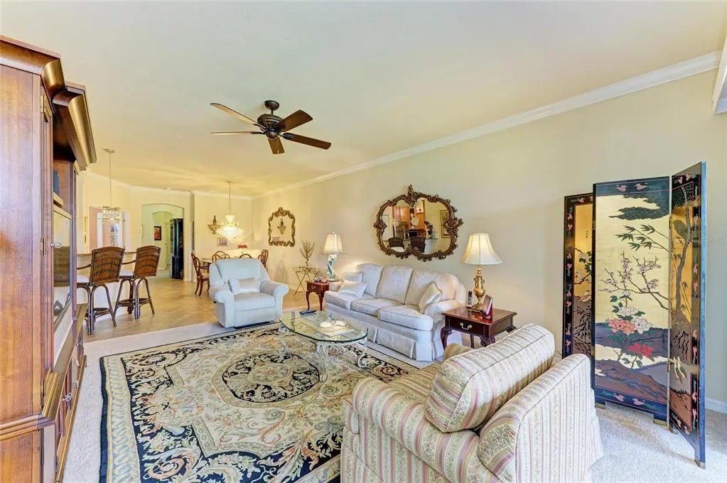 - Interior FeaturesCeiling Fan(s), Crown Molding, Living Room/Dining Room Combo, Open Floorplan