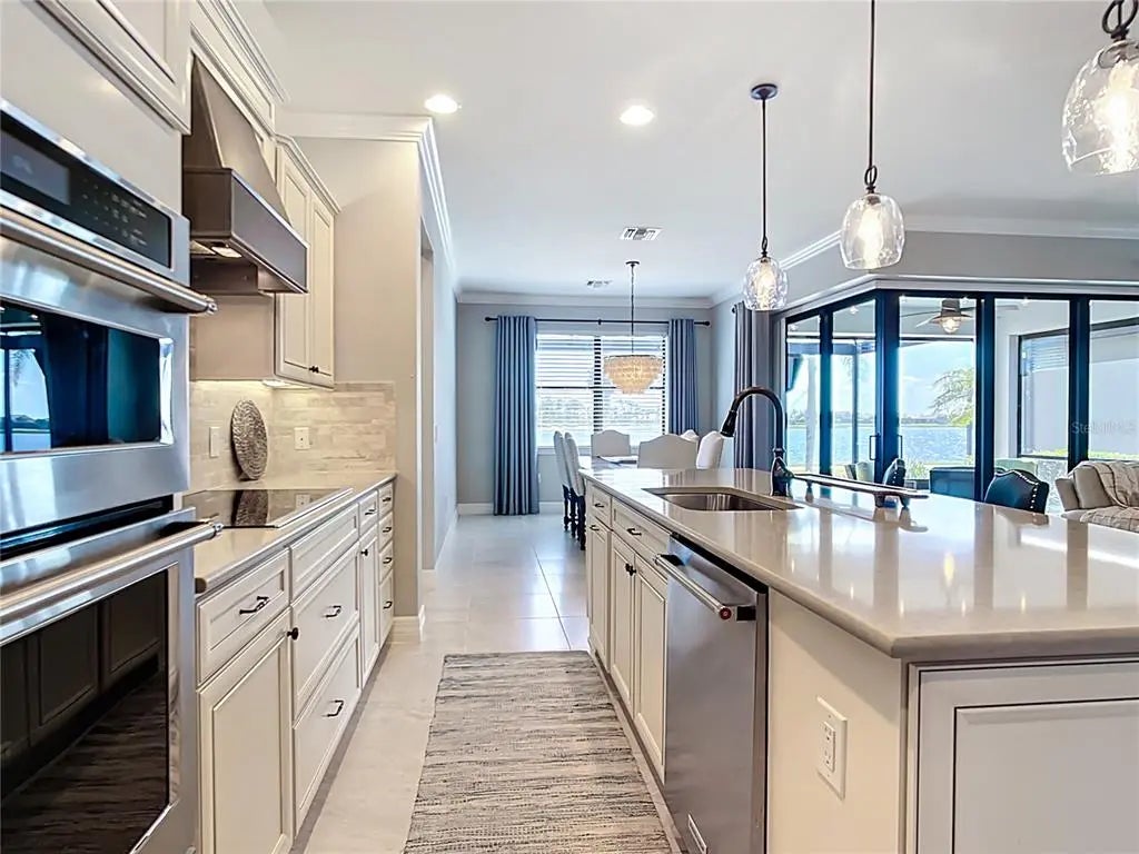 One of the most DESIRABLE lots and rarely available in IslandWalk. (JUST FOUR PROPERTIES HIT THE MARKET IN 7+ YEARS ON THE BIG LAKE AND THIS IS ONE OF THEM!) This stunning, TURN-KEY FURNISHED, upgraded sought after Summerwood Model offers expert and upgraded craftsmanship, NO CARPET, modern elegance, and effortless living. DESIGNER PAINT SCHEME AND WALLPAPER! Move-in ready, this 3-bedroom + den/office, 2-bath executive home spans over 2,000 sq. ft. and is designed for both grand entertaining and private relaxation. From the moment you arrive, exceptional with curb appeal welcomes you—featuring fresh landscaping, fresh exterior paint, extended pavers, custom glass front door, and an upgraded screened entry. Step inside and be captivated by the EXPANSIVE 10’ ceilings, upgraded 8’ decorative doors, and wide moldings. The spacious great room seamlessly connects to the kitchen which is a gourmet chef's dream and an entertainment centerpiece with REMODELED cabinetry, UPGRADED appliances! The separate dining room glows under a newer chandelier, while modern bar pendant lighting adds ambiance! Open the ZERO-CORNER sliding doors with custom vertical blinds to extend your living space onto the oversized & EXTENDED lanai—featuring PICTURE SCREENS, AUTOMATED HURRICANE SHADES, ambient lighting, and breathtaking lake views. Retreat to the finished master suite, a true sanctuary boasting a tray ceiling, large California walk-in closet, and spa-like ensuite. The extended step-in shower features frameless glass, built-in bench seating, and designer finishes. ALL BEDROOMS offer tiled floors and CUSTOM CALIFORNIA CLOSETS for ultimate organization. Additional highlights include - Epoxy-finished garage floor with an insulated door and attic screen vent, CUSTOM LAUNDRY ROOM CABINETRY & solid wood shelving, CROWN MOLDING THROUGHOUT, water softener & custom window treatments plus multiple ceiling fans throughout the home! NEW HOT WATER HEATER & DISPOSAL 2024! This community is an unparalleled Resort-Style Living! Enjoy TWO clubhouses, TWO resort pools, a lap pool, 12 pickleball courts, 8 tennis courts, a dog park, full time activity director, a community garden, a playground, basketball courts, and endless social activities! Located near Wellen Park Town Center, fine dining, minutes to the Atlanta Braves Stadium, downtown Venice, and world-class Gulf Coast beaches.