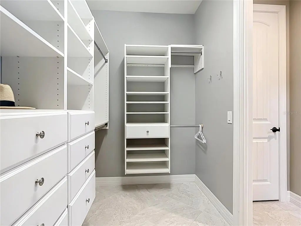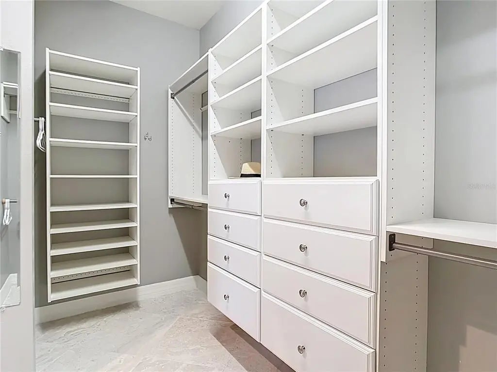 - Interior FeaturesBuilt-in Features, Ceiling Fan(s), Coffered Ceiling(s), Crown Molding, High Ceilings, In Wall Pest System, Kitchen/Family Room Combo, Open Floorplan, Primary Bedroom Main Floor, Solid Surface Counters, Solid Wood Cabinets, Split Bedroom, Stone Counters, Thermostat, Tray Ceiling(s), Walk-In Closet(s), Window Treatments
