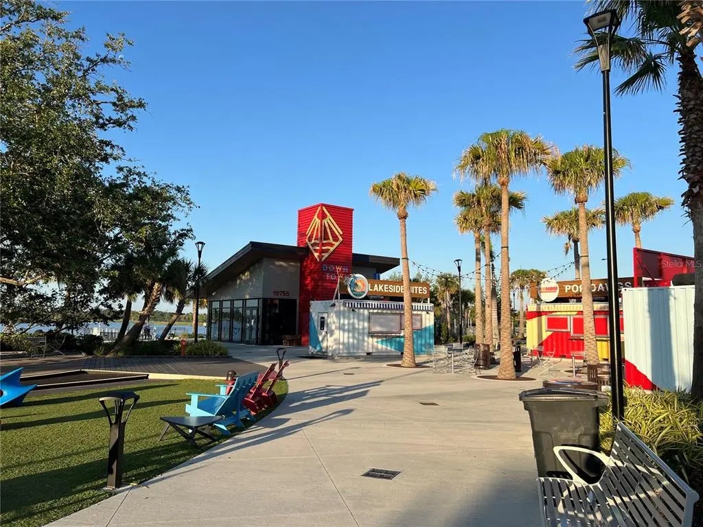 - Exterior FeaturesHurricane Shutters, Irrigation System, Lighting, Rain Gutters, Sidewalk, Sliding Doors