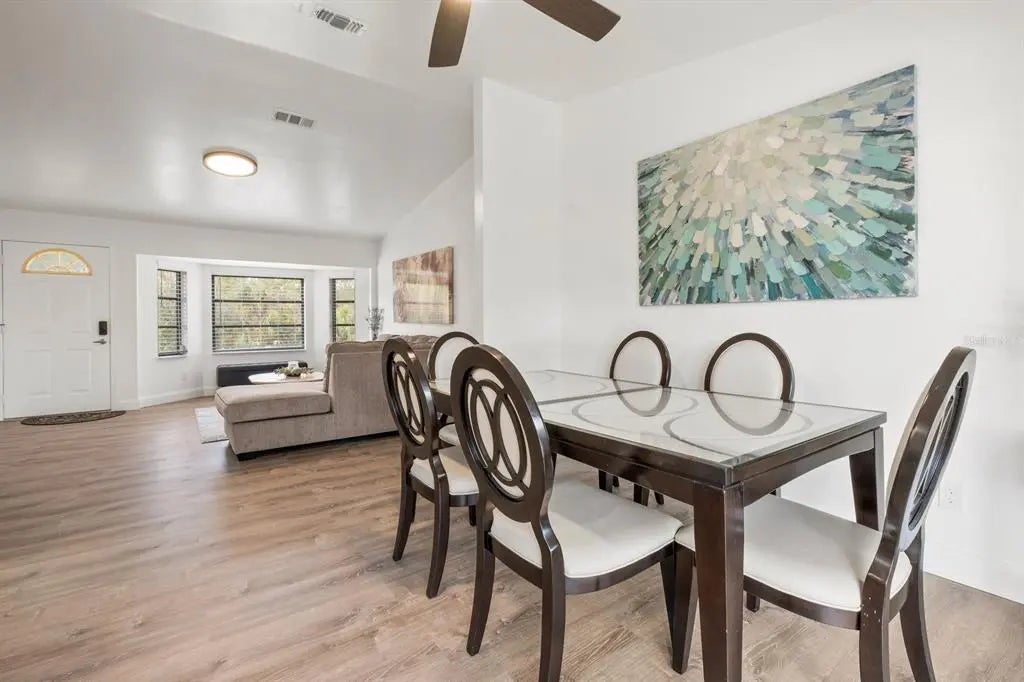 - Interior FeaturesCeiling Fan(s), Living Room/Dining Room Combo, Tray Ceiling(s)