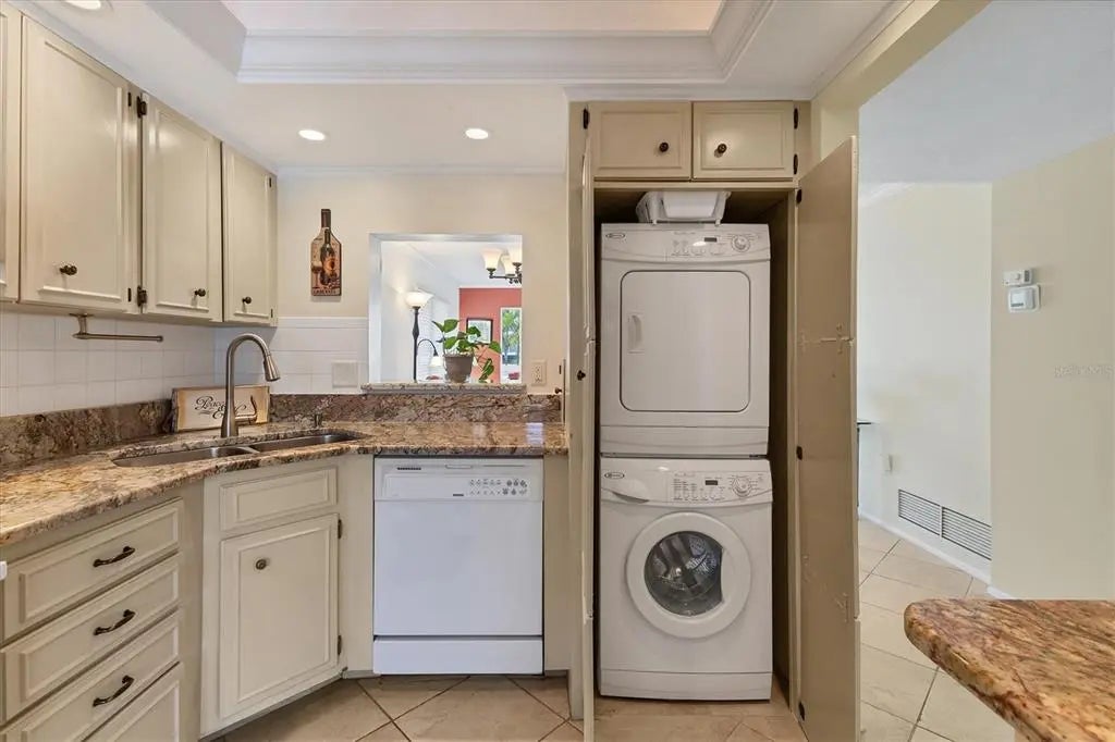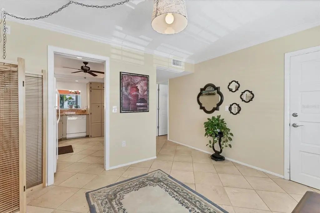 Discover the allure of VENICE ISLAND with this EXCEPTIONAL END UNIT CONDO offering a PRIME DOWNTOWN LOCATION with BOAT BASIN WATER VIEW! Situated along the Intracoastal Waterway, Bella Costa is conveniently located just two blocks from the vibrant heart of downtown Venice offering dining, shopping, Farmer's Market and events, and a quick one-mile trip to the newly enhanced Venice Beach and the Gulf's inviting waters. Enjoy free parking downtown and at the beach, and Legacy Trail just a block away, is perfect for your morning walks or bike rides north or south from the Venice trailhead. And let's not forget the breathtaking West Coast sunsets, yours to enjoy every evening with your feet in the sand. This beautifully appointed condo boasts a numerous upgrades throughout the kitchen and bathrooms, featuring tile floors and sparkling stone countertops thru out, tiled shower with frameless glass door in primary ensuite bedroom, interior stacked washer & dryer, a recently updated A/C system and partial Turnkey Furnishings. Imagine relaxing with an iced tea on your lanai, enjoying the perfect view of the boat basin through wind-compliant windows and sliders. A unique feature is the additional room, providing flexible space for relaxation, accommodating guests, dining area or cozy den. Bella Costa also offers a resident clubhouse complete with a full kitchen and great room, ideal for hosting larger gatherings. Residents also have access to a sparkling heated pool, library, exercise room and billiards making it a wonderful retreat for you, your family and guests. The property includes a brand-new covered and assigned carports, as well as a storage closet for your beach gear, golf clubs, and bicycles. Being offered turnkey and partially furnished, this condo provides the ultimate convenience for immediate occupancy, vacation stays, or rental opportunities without any holding period restrictions. Notably, Bella Costa has successfully completed the recent MILESTONE inspections, demonstrating fully funded reserves with no structural deficiencies or pending assessments. This remarkable condo offers an incredible Venice Island opportunity!