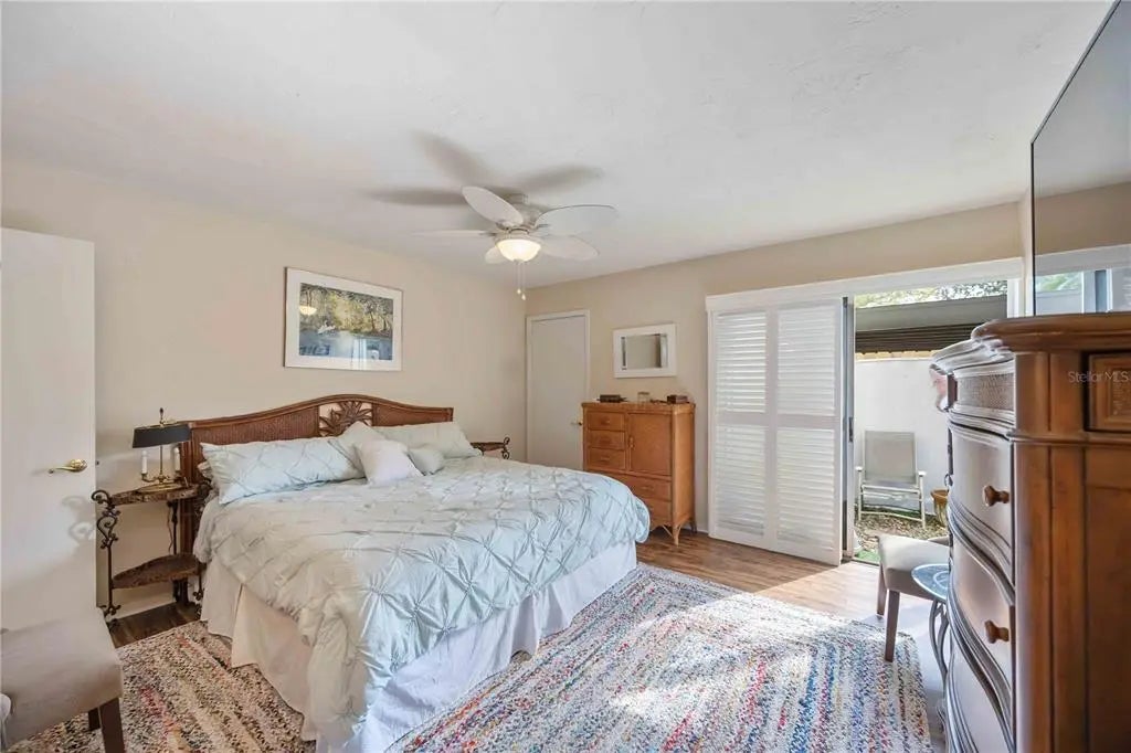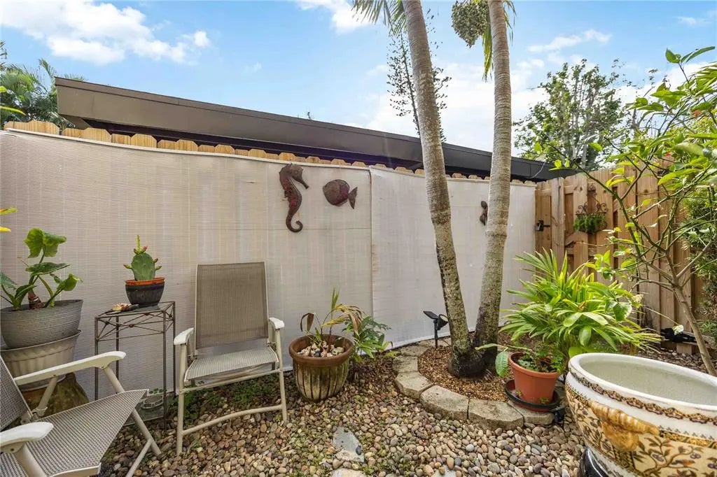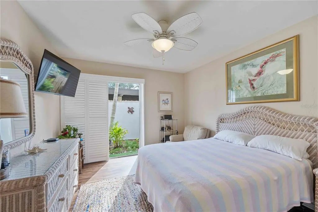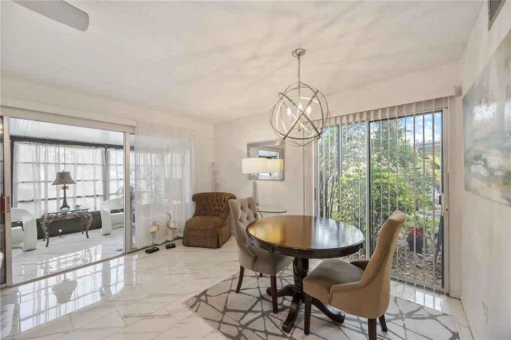 *New vinyl flooring in both bedrooms, January 2026! No Carpet!* Winding tree-lined roads lead to Sea Grape Villas, where this first-floor corner unit is located on a quiet cul-de-sac and lives like a single-family home. A covered screened lanai provides a private entry with seating space, backyard access, and an adjacent laundry room. The interior features new flooring and updated light fixtures throughout. The open layout seamlessly connects the kitchen and dining area, featuring updated countertops, a spacious sink, and ample storage space. Sliding glass doors open to a shaded garden area with bench seating. The living room and sunroom offer abundant natural light and open views of the surrounding green space. The primary bedroom features a walk-in closet, an updated en-suite bathroom, and sliding glass doors with plantation shutters. The guest bedroom also features plantation shutters and access to a private bathroom. Both bedrooms open to a fenced courtyard ideal for outdoor seating or morning coffee. The home is equipped with a whole-house air purification system that neutralizes allergens, bacteria, and VOCs without chemicals. Furnishings are negotiable. Bird Bay Village is a pet-friendly community offering walking trails, pickleball, tennis, a lap pool, fitness rooms, shuffleboard, and an active clubhouse. Shopping, dining, banking, the Legacy Trail, and daily conveniences are located just outside the neighborhood. Venice Island is less than two miles away and offers beaches, a marina, theaters, art centers, golf, a fishing pier, parks, and year-round events. This property is priced competitively and offers strong full-time, seasonal, or investment potential. Contact your Realtor to schedule a private showing.