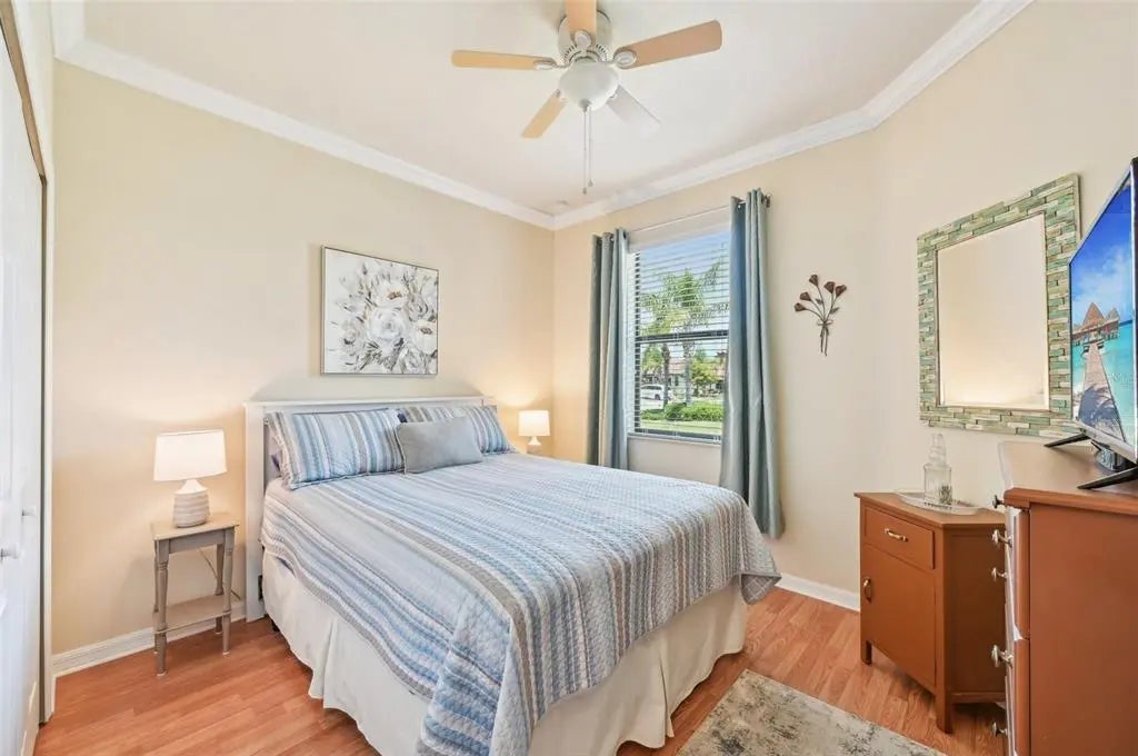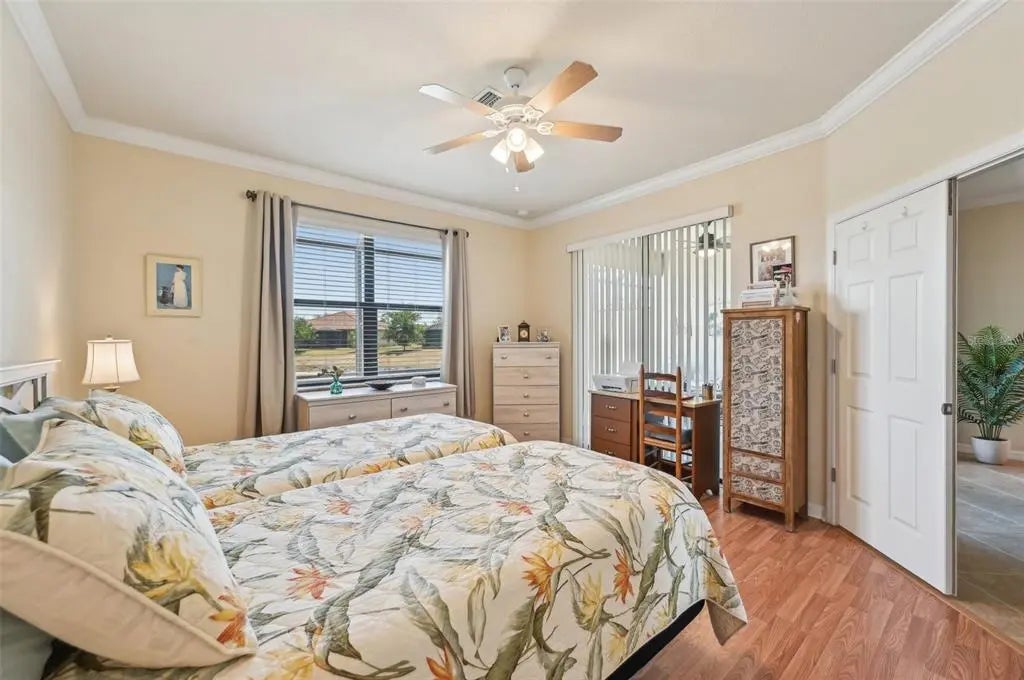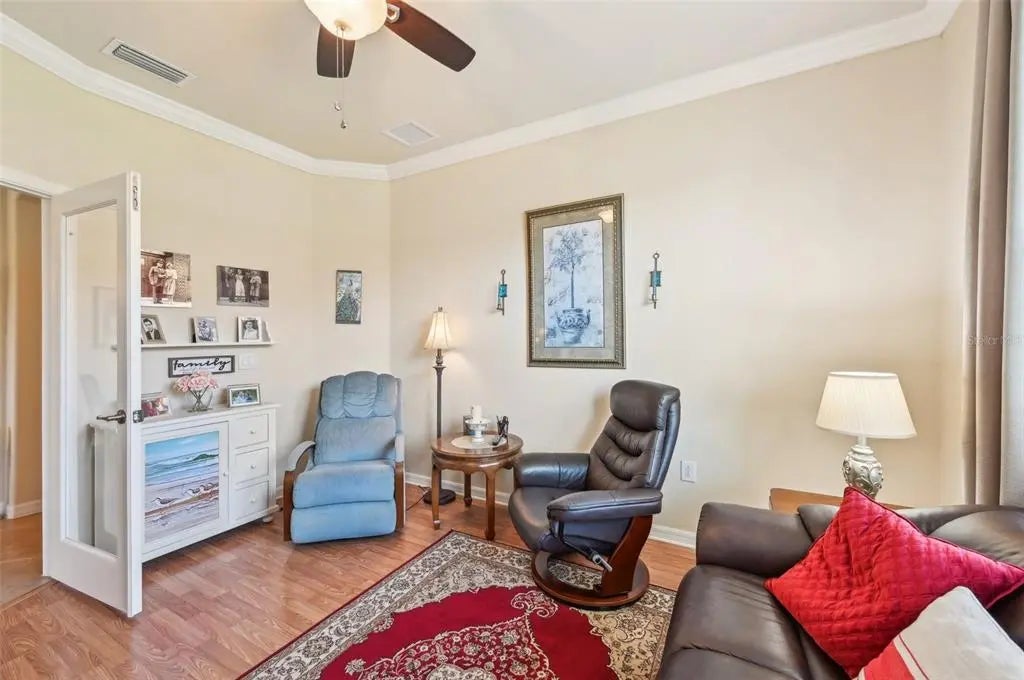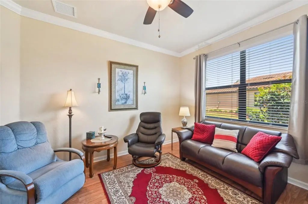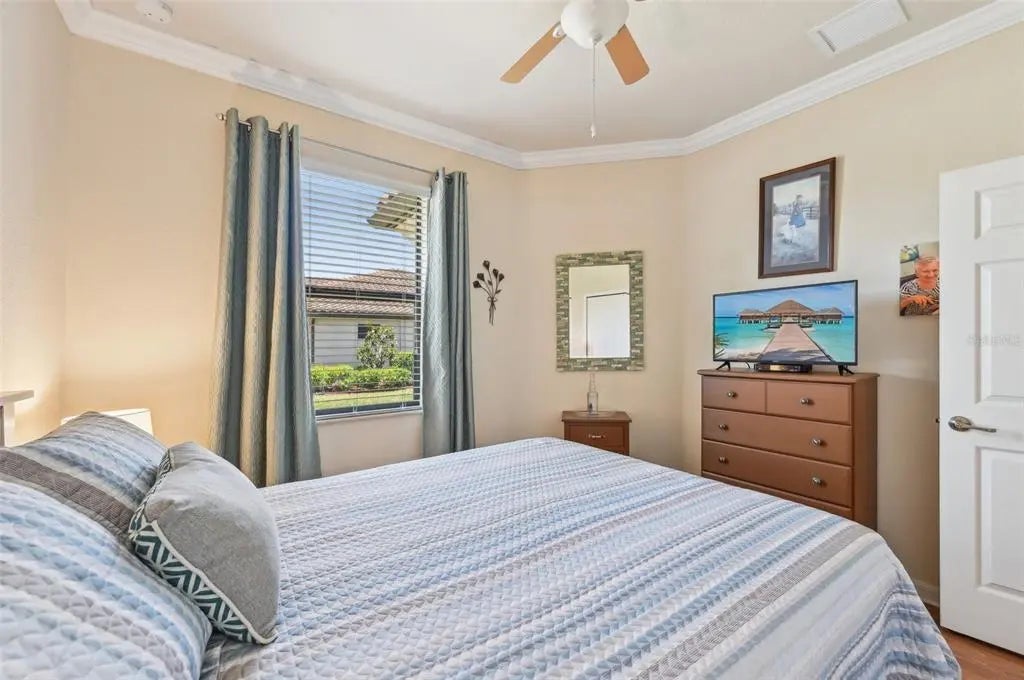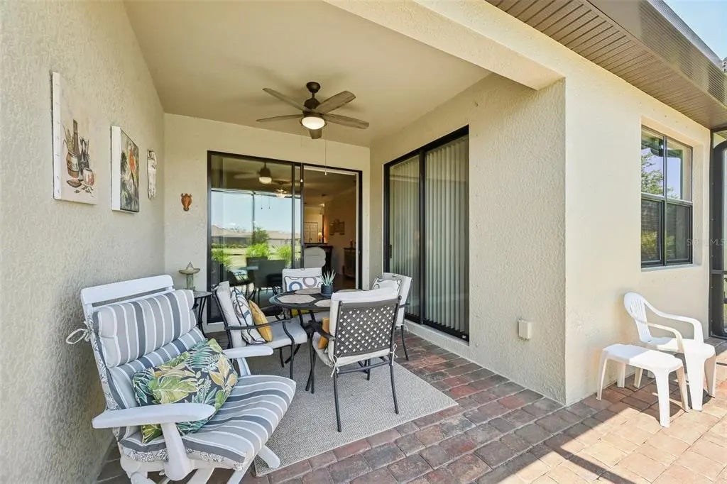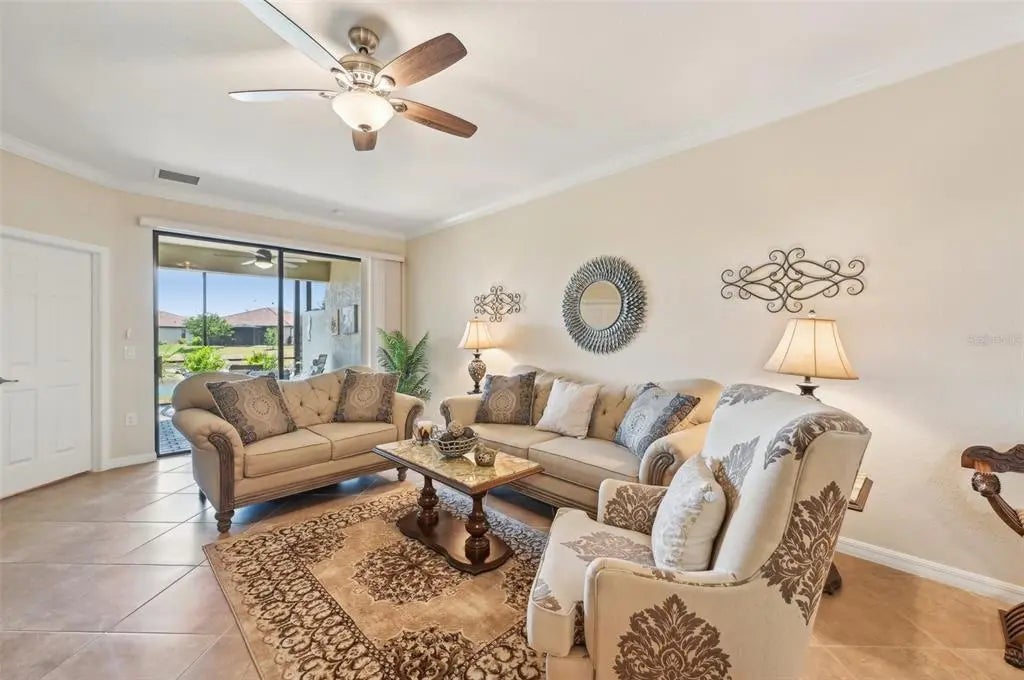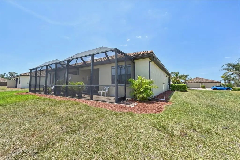 $25,000 Price Adjustment! This 2 BR & Den, 2 BA, 2-car garage maintenance-free villa is located in the resort-style community "Gran Paradiso at Wellen Park" and situated on a premium lake-view homesite. It features an extended fully screened lanai with freshly sealed pavers, the perfect spot to enjoy your gorgeous view. From the moment you step into this meticulously maintained home, you will be impressed by the neutral color palette and luxury finishes, such as 18" tile on the diagonal, crown molding and granite counter tops. The open floor plan is ideal for entertaining or quiet relaxation. Flooring in the bedrooms and den has been upgraded to plank-style laminate (no carpet in the entire home!). Enjoy your morning coffee at the breakfast bar, overlooking your kitchen with 42" wood cabinets & GE stainless-steel appliances. The office/den is bright & spacious and could easily double as a 3rd bedroom. The split floor plan with guest bedroom and guest bath is perfect when family and friends come to visit. Your Primary Bedroom Suite also has the beautiful lake-view and your En Suite Primary bath offers a double vanity, a garden tub and a separate walk-in shower. A screened entry area, an inside laundry room and a spacious 2-car garage complete this beautiful home. HOA fees include the use of all the community amenities, lawn care, fertilization, mulch, basic cable & high-speed internet, roof repair & replacement and periodic exterior painting. New A/C (2025). New washer & dryer (2025). Newer dishwasher, Convection oven and microwave. Water heater was replaced 4 years ago. Gran Paradiso is an amenity-rich, maintenance-free resort community, situated in the the vibrant Wellen Park area, only 15 min from the Gulf of America. Rivaling a vacation resort, owners enjoy a beach-entry pool, Tuscan-inspired Clubhouse, tennis, pickle ball, state-of-the-art fitness center, sauna/steam rooms & massage rooms. There is a myriad of activities for the residents, organized by a full-time Lifestyle Director. Gran Paradiso is golf-cart friendly and encompasses over 1,000 acres with extensive walking and biking paths. Wellen Park offers a marketplace with a variety of shopping and restaurants and the Spring Training Stadium of the Atlanta Braves, the 2021 World Series Champions. There is also an 80-acre lake, surrounded by bike paths and lake-front eateries. Area beaches are in close proximity, as is quaint downtown Venice. Schedule your showing today!