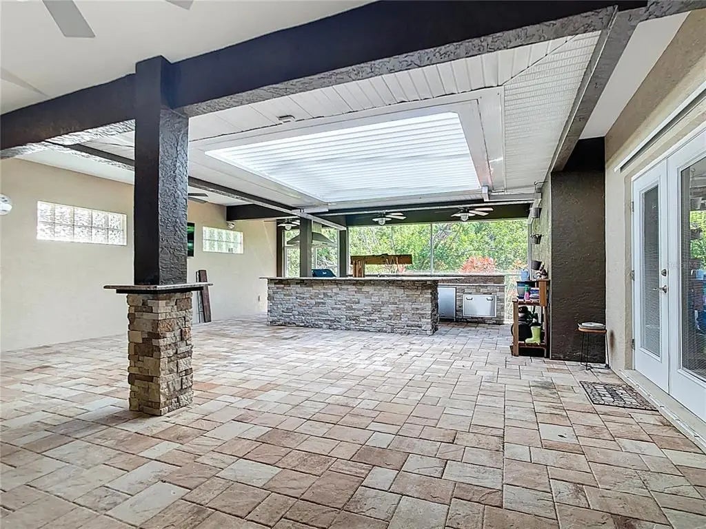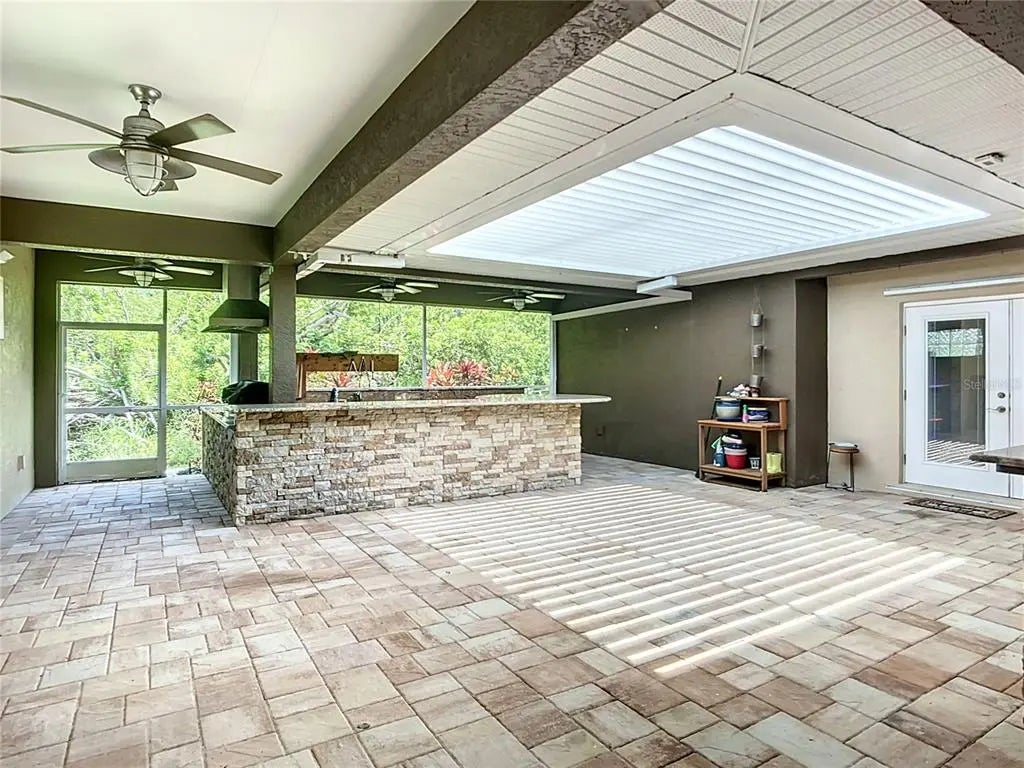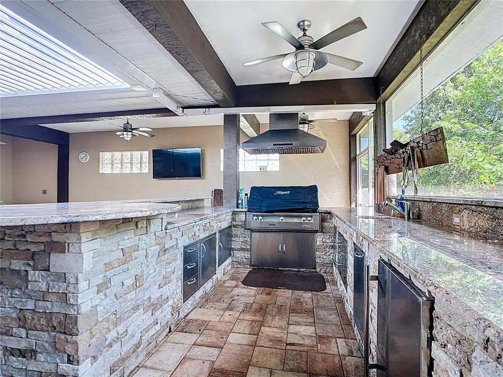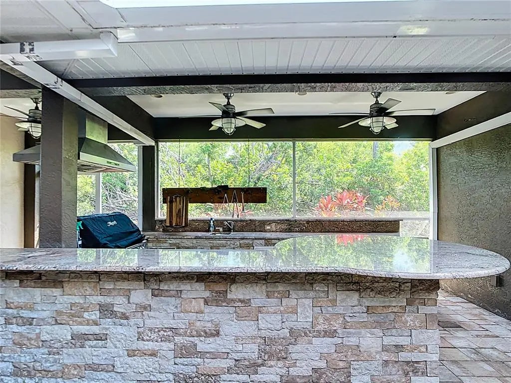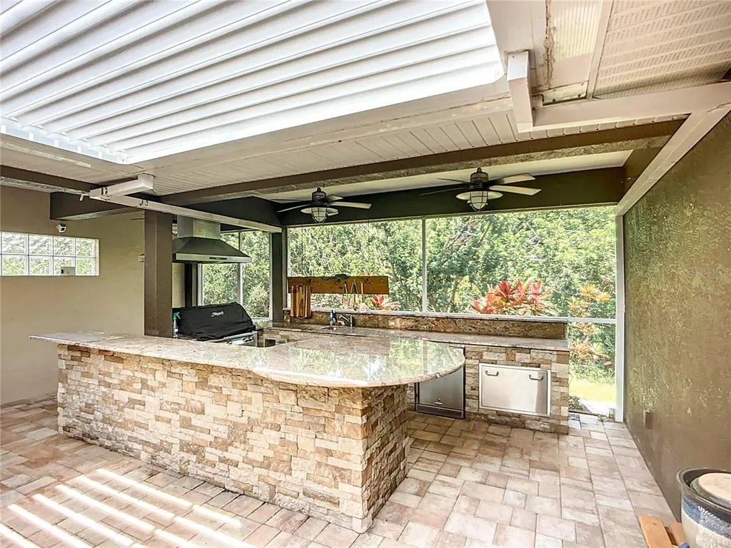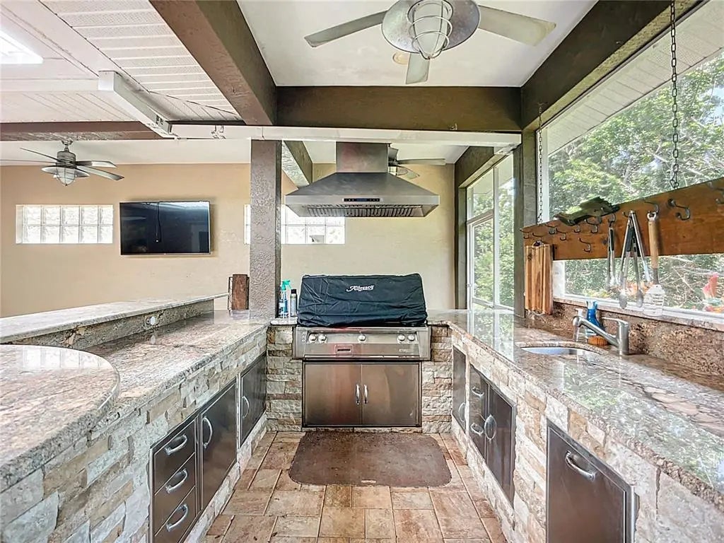 - Exterior FeaturesHurricane Shutters, Irrigation System, Lighting, Other, Outdoor Grill, Outdoor Kitchen, Private Mailbox, Rain Gutters