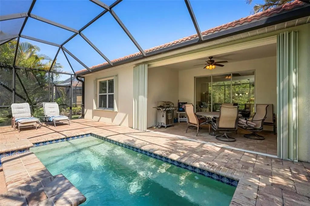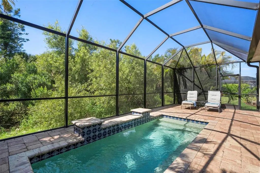 Come and see this delightful home in the vibrant Grand Palm community! This home features a bright, open floor plan with three spacious bedrooms and a versatile den that’s perfect for an office, guest room, or whatever sparks your imagination. It’s packed with upgrades like premium flooring, custom lighting, elegant coffered ceilings, and an irrigation system to keep your yard lush and green. The cocktail pool with a gentle waterfall is perfect for refreshing dips and relaxation in any season. Surrounded by serene preserve views, it creates a secluded retreat and personal oasis. Take leisurely strolls through the gorgeous neighborhood whenever the mood strikes! Step inside, and you’ll be charmed by the breezy Florida vibe. The gourmet kitchen is a chef’s dream, boasting Corian countertops, stainless steel appliances, a large center island, a closet pantry, and the joy of cooking with natural gas for precise, efficient meal prep. The kitchen flows effortlessly into the dinette and Great Room, and when you slide open the doors, you’ll love the seamless indoor/outdoor Florida lifestyle. The coffered ceilings in the kitchen and family room add a touch of sophistication! The primary bedroom is your cozy haven, featuring a generous walk-in closet and a luxurious en-suite with dual sinks and a spacious walk-in shower. Two additional bedrooms, tucked away in their own wing with a full bathroom and extra closet space, are perfect for guests or family. The den, with stylish French doors off the great room, is ideal for working from home or unwinding. This home is loaded with practical perks that add to the WOW factor! Enjoy a newer HVAC, metal hurricane shutters, low-cost flood insurance, and no flooding during major storms for worry-free living. Grand Palm’s resort-style amenities make every day feel like a vacation. Dive into multiple pools (including a fitness pool and waterslide!), have fun at the splash pad, or stay active with tennis, pickleball, bocce, or volleyball. Explore 28 miles of biking and walking trails, visit the two dog parks, or try fishing and kayaking at Adventure Lake’s island. The state-of-the-art fitness center and Social Club, with a full-time lifestyle director, keep the community buzzing with excitement. Plus, you’re just minutes from Venice’s beautiful beaches and charming downtown! This home radiates charm with its lush, meticulously maintained landscaping that welcomes you at every turn. A coastal-inspired design brings a sense of tranquility and relaxed elegance, making every space feel like a serene retreat. Priced to impress, this home is a steal in such a lively, amenity-rich community. Don’t miss out on this coastal gem! Reach out today to schedule a tour and start living the Florida lifestyle you’ve always dreamed of!