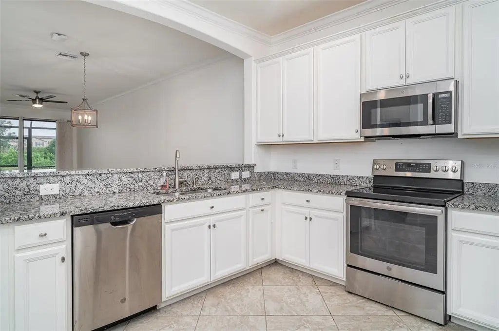- Interior FeaturesCrown Molding, Living Room/Dining Room Combo, Stone Counters