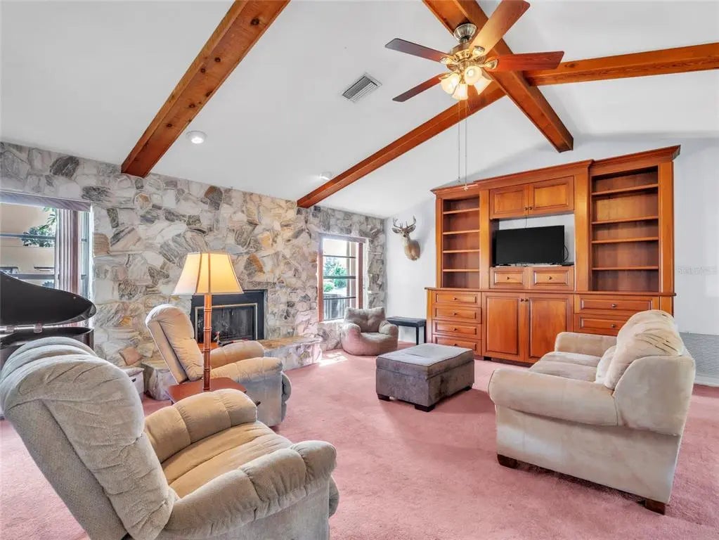 - Interior FeaturesCathedral Ceiling(s), Ceiling Fan(s), Kitchen/Family Room Combo, Solid Surface Counters, Solid Wood Cabinets, Split Bedroom, Stone Counters, Thermostat, Window Treatments