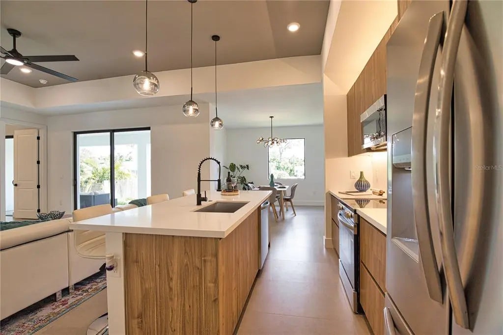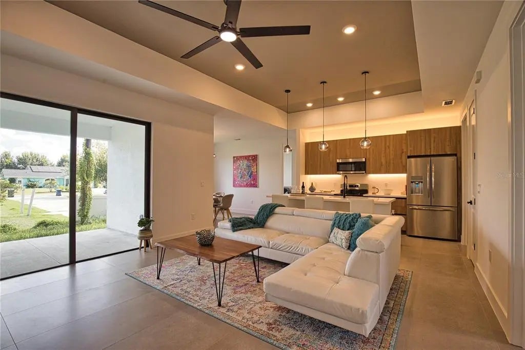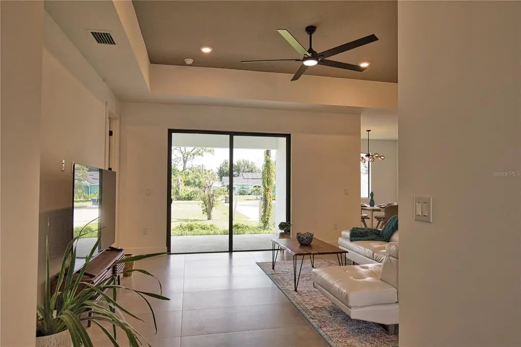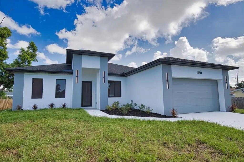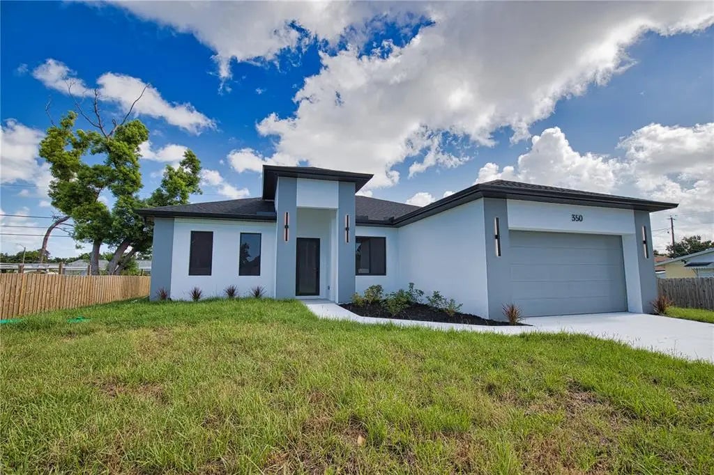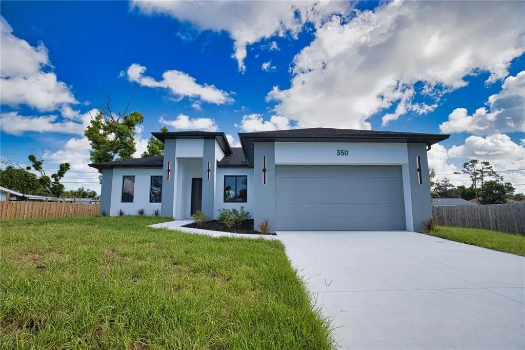 This GREAT VALUE, new-construction 4/2 home provides a modern and peaceful living space in the thriving community of Venice. The NO HOA, NO FLOOD ZONE, 1 YEAR BUILDER'S WARRANTY and LOCATION make this home a real find! As a SOUTH VENICE resident, you can take advantage of the SOUTH VENICE BEACH FERRY, transporting you to your own PRIVATE BEACH on Manasota Key and gain access to the resident BOAT LAUNCH. This serene neighborhood is close to many unique activities such as several nature parks, Legacy Trail, Historic Downtown Venice, Warm Mineral Springs, Venice Fishing Pier and is a 6 minute drive to Manasota Beach, a 15 minute drive Venice beach! The 4th bedroom gives the flexibility of use for an office, gym or craft room to suit your needs. The home's exterior is welcoming and stylish with modern lighting and landscaping along with the peace of mind of hurricane impact windows and a high elevation. The open floor plan allows you to enjoy the main living areas simultaneously. The living room, dining area, and kitchen flow together perfectly, providing the ideal space for entertaining or family gatherings. The high tray ceiling, ceiling fan and large windows flood the main area with natural light and create a cheerful and inviting atmosphere. The neutral color palate allows you to add your personal touches and customize your look. The heart of this home is the sleek, modern kitchen. The quartz countertop and breakfast bar are perfect for casual dining and gathering. Soft close cabinets with gola profile and drawers with a modern, stylish and clean look. Stainless steel appliances, ample cabinet storage space and pantry complete the wish list for a perfect kitchen. The spacious dining area is designed for serving family meals or entertaining and includes a beautiful chandelier that contributes to this home's unique charm. Sliding glass doors provide access to the large covered porch off the main living area creating a seamless transition from indoor to outdoor living space. The master suite is a TRANQUIL RETREAT elevated by gorgeous tray ceiling, ceiling fan and sliding door to back yard. The en-suite bathroom feels like a PRIVATE SPA with a gorgeous OVERSIZED SHOWER, rain shower head, upgraded LED mirrors and soft LED lighting under the vanity to provide you a peaceful haven. 3 additional bedrooms with ample closet space and ceiling fans share a well-designed bathroom with a tub and the same upgraded rain shower head, LED mirrors and LED lighting. Laundry will be less of a chore in this spacious and neat laundry room featuring a convenient utility sink with cabinet. The 2 car garage conveniently leads to the laundry room for the perfect transition upon your arrival home. This property is staged and easy to show! It's features, proximity to beaches, S Venice resident perks and unique outdoor/shopping activities make this house the ideal place to call home.