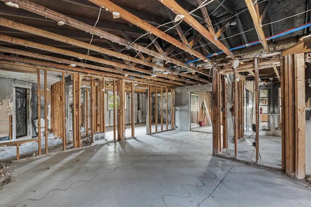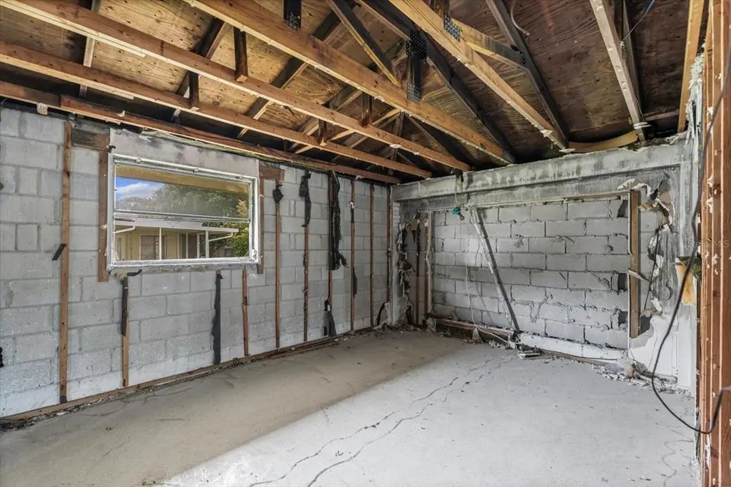 A fixer upper opportunity in the highly desirable Venice East neighborhood! Fire damage originating in the garage provides a competitive price and a blank slate to envision your dream home. Engineering plans included in the sale, showing only to replace effective roof trusses and full rehab. Plans also show possibility of conversion to a 4 bedroom. This sturdy block home with ample square footage, features terrazzo floors and concrete slab ready for your flooring of choice, an enclosed porch and garage, and a large lot above the flood plain. Nearby you’ll find Venice East Golf Course, shopping centers with all the major retailers, restaurants, gyms, and natural beauty found in the parks and beaches nearby. Schedule your showing today and see your future home!