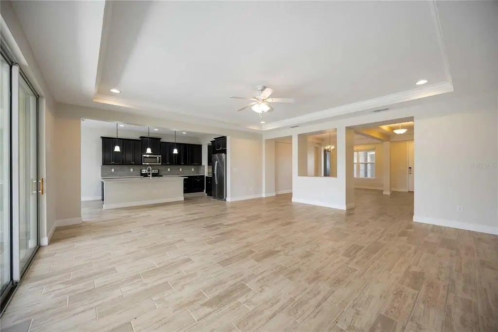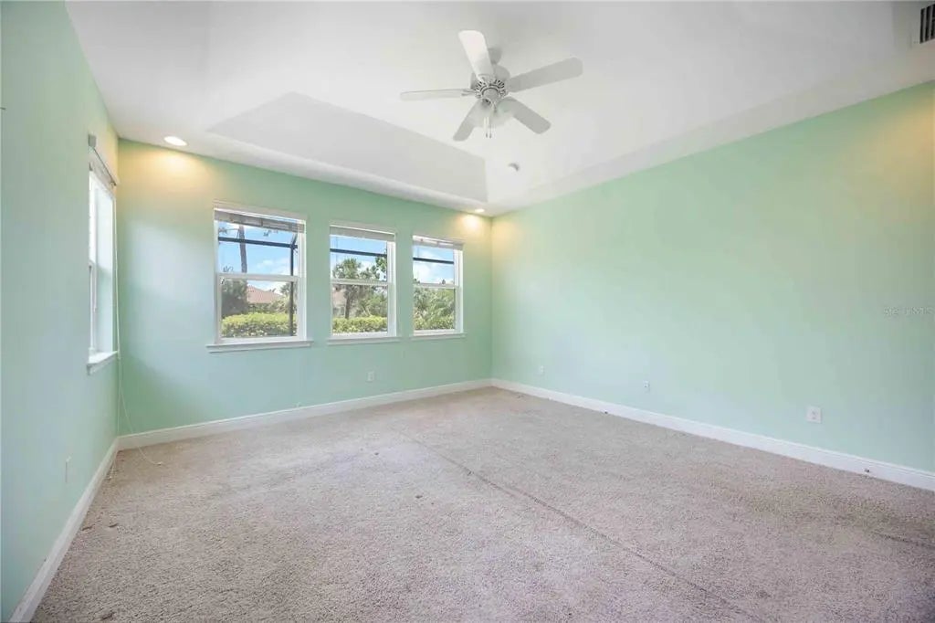 - Interior FeaturesCeiling Fan(s), Eating Space In Kitchen, High Ceilings, In Wall Pest System, Open Floorplan, Solid Surface Counters, Solid Wood Cabinets, Tray Ceiling(s), Walk-In Closet(s), Window Treatments