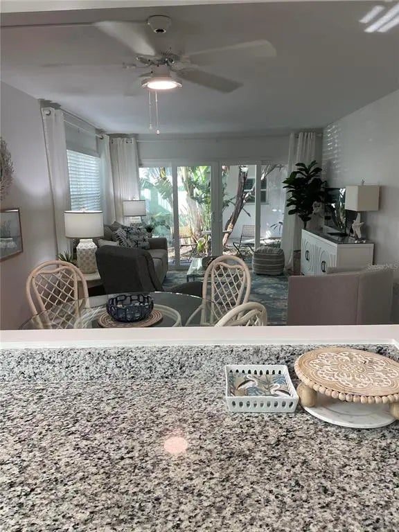 - Interior FeaturesCeiling Fan(s), Living Room/Dining Room Combo, Open Floorplan, Primary Bedroom Main Floor, Solid Surface Counters, Thermostat, Window Treatments