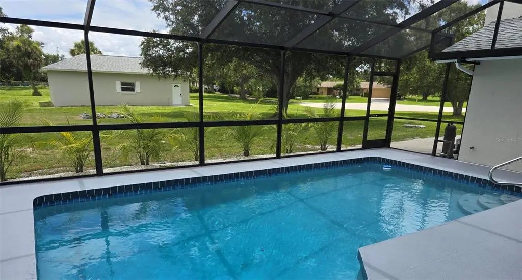 Under contract-accepting backup offers. Welcome to Venice Acres. A community that offers acreage and space between properties, large beautiful oak trees, but yet still in town. This one has it all! A 3/2 POOL home, with a 2 car attached garage, and a matching 800 sq.ft. (40x20) "4 car Detached Garage". * Please don't be mislead by the p.s.f. at $390 per, as the detached garage (obviously included in list price) has an approximate value of $95,000, pushing the actual p.s.f. of the home, up from about $340 p.s.f.* Move in ready, as this 1.21 acres home doesn't need remodeling or updating because it's already finished. New roofs on house and detached shop, new sliders, porcelin tile throughout, new fans, lighting, outlets, countertops, appliances, bathrooms, water filtration system, AC serviced and ducts cleaned, pool cage repainted and rescreened, new pool pump and pool light, and more. Open spacious kitchen with generous amount of cabinets, bright lighting, fireplace in the family room and sliders opening to the pool area. The dedicated laundry room is located off the kitchen with access to the garage. Covered patio and outdoor deck fenced for privacy. Located on a corner lot that allows access to the detached shop and backyard off Lambeth Circle. Take a moment to drive the unique community of Venice Acres and see how most residents take pride in their homes and property. This community offers a great place for residents to walk, jog, bicycle, and you'll may even see a golf cart, so please observe the speed limit and remember that children may be at play. Thanks for looking. Schedule a showing, and see if it's right for you. Thanks for looking.