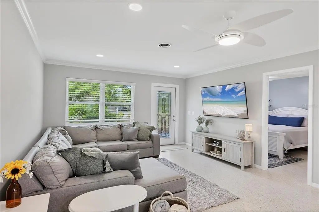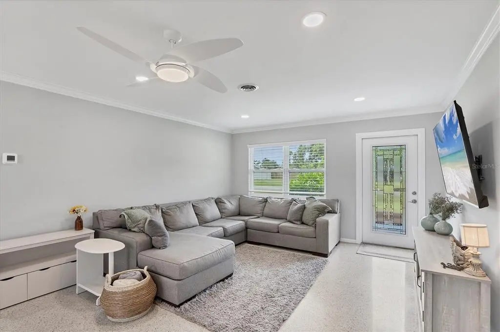 - Interior FeaturesCeiling Fan(s), Crown Molding, Open Floorplan, Split Bedroom, Stone Counters, Thermostat, Walk-In Closet(s), Window Treatments