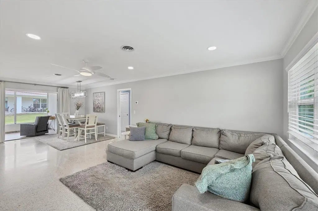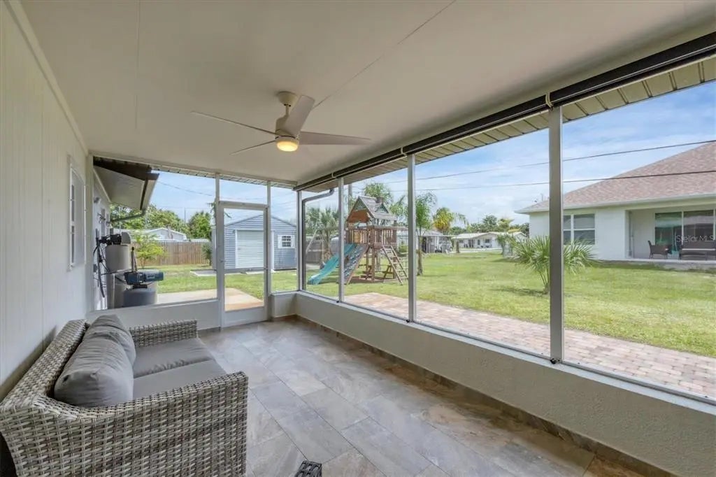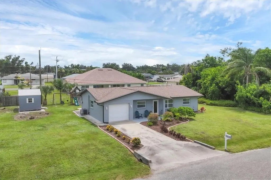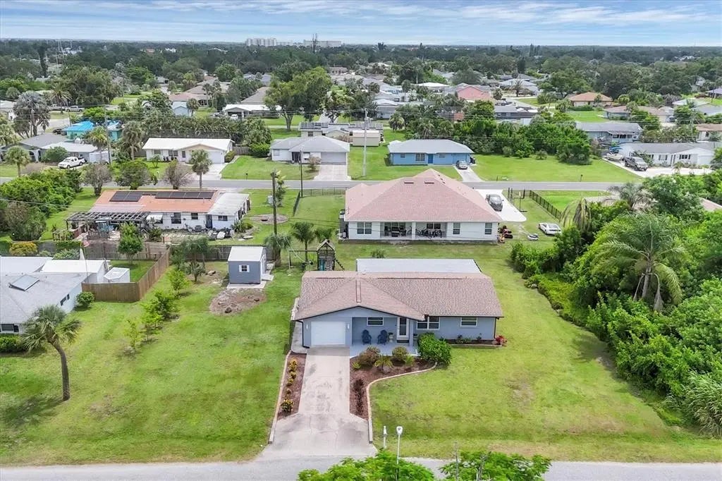Under contract-accepting backup offers. Elegant coastal living on a rare 120x100 triple lot, offering expansive outdoor space and a peaceful lifestyle rooted in classic Florida charm. Welcome to this beautifully updated, spacious South Venice home. Sunlight fills the interior, highlighting its open layout and timeless design. Cool terrazzo floors run throughout, offering lasting comfort and easy maintenance. The split-bedroom layout ensures privacy, with both the primary suite and dining area opening onto a large, screened lanai through sliding glass doors, and indoor-outdoor living continues with an adjoining patio -- perfect for enjoying the Florida breeze year-round. This well-maintained home boasts over $107,000 in recent upgrades: New roof, AC & ductwork, flooring, hurricane windows, septic system, renovated kitchen and baths, all appliances, reverse osmosis system, all doors, gutters, blinds, roller shades in lanai, shed, etc. Unbeatable Location & Community Perks: Minutes from Shamrock Park with tennis, playgrounds, walking trails, and Legacy Trail access; Voluntary HOA provides ferry to private South Venice Beach and boat ramp access to the Intracoastal for a small annual fee; Close to Historic Downtown Venice, dining, shops, medical, library, Performing Arts Center, and more. Schedule your showing today to see this move-in-ready South Venice gem with unmatched value and space!