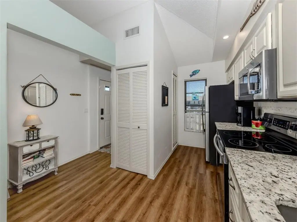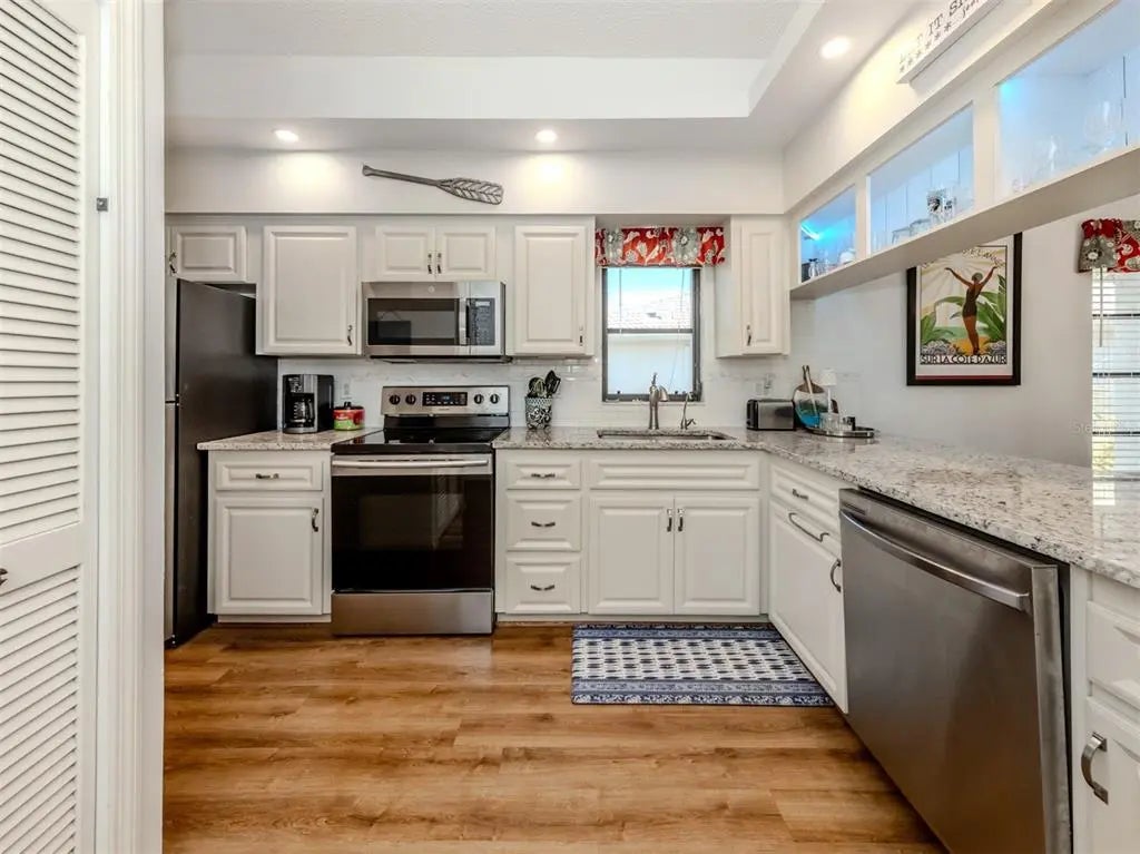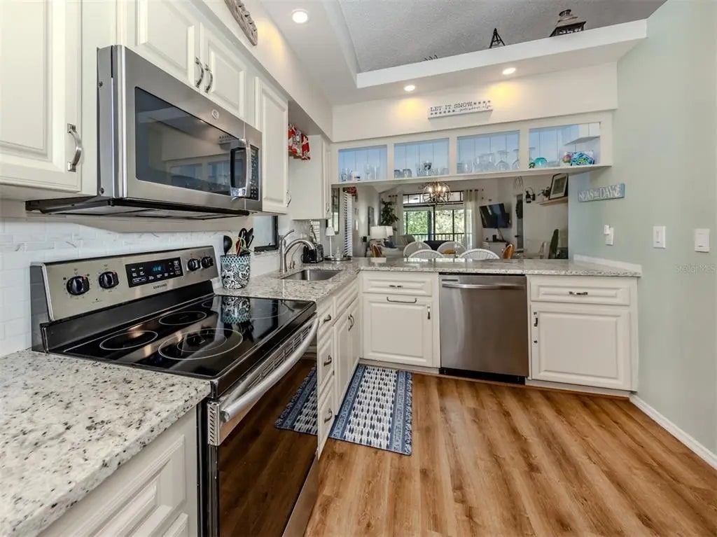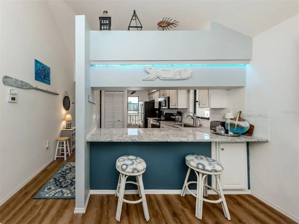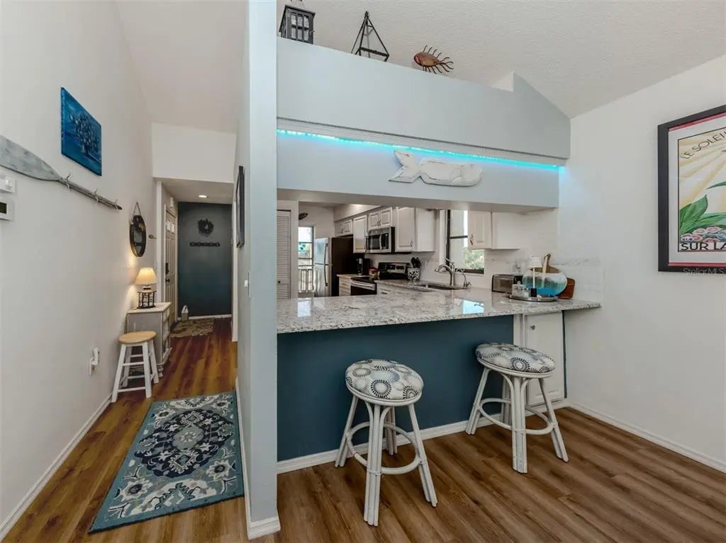 Price improvement! Move-in-ready, TRUN-KEY, second-floor end unit with private entrance, attached covered carport and vaulted ceilings. Enjoy a remodeled kitchen with granite countertops, pantry and newer appliances. The primary suite features a brand-new shower and closets. The furnace and A/C are also new. This unit is located in the Golf View community in beautiful Venice. This end unit provides ample natural light due to its many windows and cathedral ceilings, which you will not find in any other unit. Unit 228 has been renovated top to bottom, offering LVP flooring, new carpets, along with ample storage closet, and there is no unit above you. Imagine waking up to the tranquility of lush green trees and the gentle rustling of palm trees, right from the comfort of your home. Unit 228 offers you a covered parking space and a locked shed to store all your beach and personal items. There is also available parking for a second car and guests. This turnkey-furnished gem ensures you can move right in and start living your dream immediately. Just 4 miles to the Gulf and 375 yards to the Capri golf course, you'll find endless opportunities for relaxation and recreation, along with the historic downtown Venice for restaurants and famous shops. The maintenance-free community with a heated pool is ideal for enjoying a leisurely swim or catching up with friends and neighbors. Embrace the essence of Florida living as you unwind and soak up the glorious sunshine. Rest easy knowing this property has been meticulously maintained.