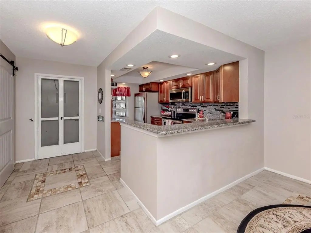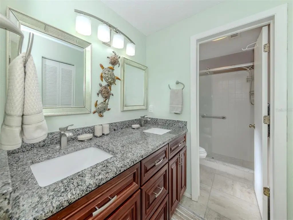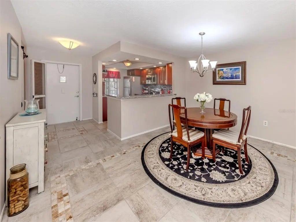 Turnkey End-Unit Condo with Serene Lake View - Ready for YOU! Tucked into one of the quietest spots in the community, this 2-bedroom, 2-bath second-floor end-unit offers tranquil views of the lake and a front-row seat to Florida wildlife. Whether you're relaxing on the screened lanai or enjoying the breeze through open windows, you'll love the peace and privacy this location provides—yet you're still just minutes from Venice Island, beaches, groceries, and everyday conveniences. Inside, the kitchen has been tastefully updated with rich cherry wood cabinets, granite countertops, and stainless steel appliances. The cabinets offer a warm, natural tone that catches the light beautifully and adds a sense of craftsmanship to the space. The open floor plan flows easily from the kitchen to the dining area and living room, anchored by a beautiful wet bar—ideal for entertaining or winding down at the end of the day. The primary bedroom features an en-suite bath and ample closet space, while the guest bedroom and full bath are perfectly situated for comfort and privacy. And best of all, this condo is being sold turnkey furnished, so you can move right in and start enjoying the Florida lifestyle from day one. If you're looking for a low-maintenance home with a calming view, solid upgrades, and a location that puts you close to everything Venice has to offer, this is one to see.