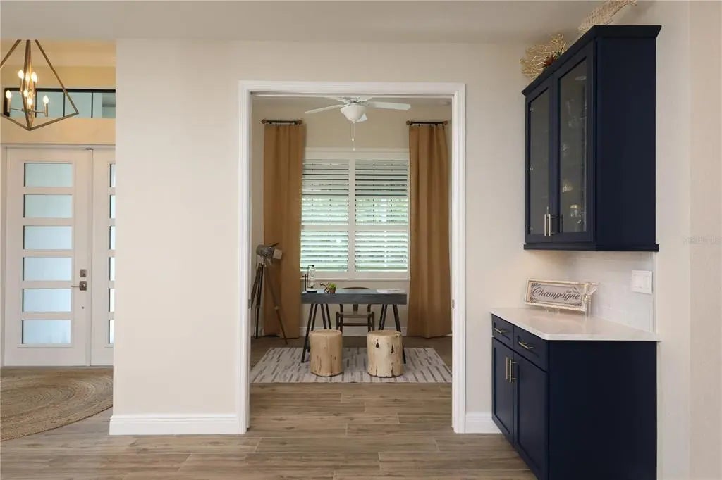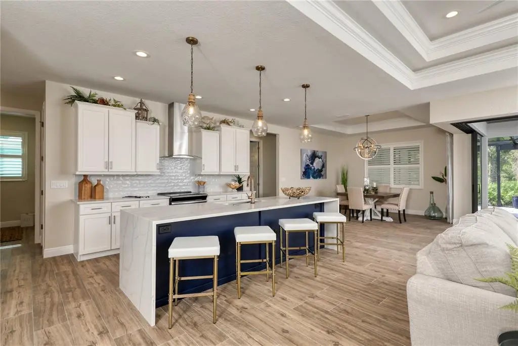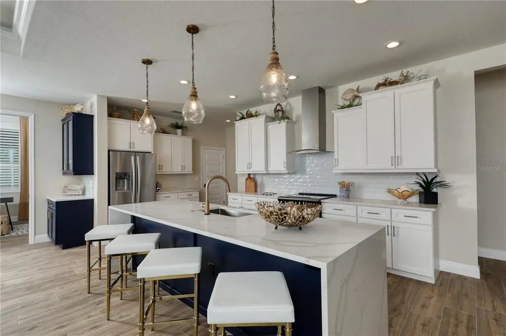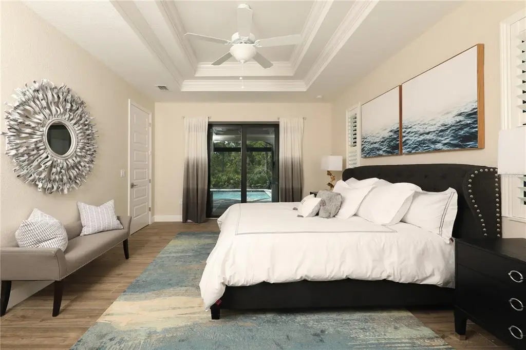 Welcome to 14194 San Domingo Blvd, a beautifully appointed 3-bedroom, 3-bath home with a spacious office, nestled in the desirable waterfront community of South Gulf Cove. This furnished builder’s model sits on a double lot with a leveled parking lot perfect for a future garage, offering ample space, luxury, and convenience. Step inside to soaring high ceilings with trays in both the living room and primary suite, adding a touch of elegance and openness throughout. The heart of the home is a gourmet kitchen featuring a large island, quartz countertops, upgraded stainless steel appliances, a sleek range hood, built-in microwave, built in garbage cans, under cabinet lighting, soft close cabinets, large deep sink, coffee bar, bar cabinet, and a pantry—perfect for entertaining or everyday living. The primary suite is a private retreat! Enjoy separate vanities, a private toilet, HUGE HIS AND HERS walk in closets, and fully tiled shower. The guest rooms are both large bedrooms with ceiling fans and ample closet space. The entire home is fully tiled with gorgeous wood plank tile! The expansive open floor plan flows effortlessly into the outdoor oasis, where you'll find a screened-in pool, outdoor kitchen, and plenty of room for lounging or hosting guests. The living room features a stunning zero corner slider leading outside. Additional features include: • 3 spacious bedrooms + large office • 3 full baths with upscale finishes • Hurricane Impact Windows • Tray ceilings in primary bedroom and living room • Concrete Block Construction • Tile Roof • Wood Plank Tile Throughout the home • Stunning Finishes • 3 car Garage converted to office space • Outdoor entertainment area with pool and kitchen • Professionally Furnished and move-in ready • Ample parking with a dedicated parking lot • Located in South Gulf Cove with access to boating, parks, and more Don’t miss this rare opportunity to own a showcase home that truly has it all—luxury, space, style, and location. Schedule your private showing today! *some furnishings used for staging purposes