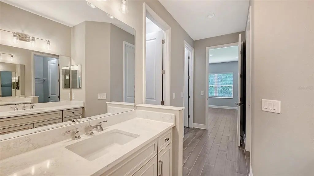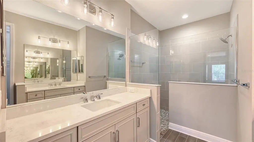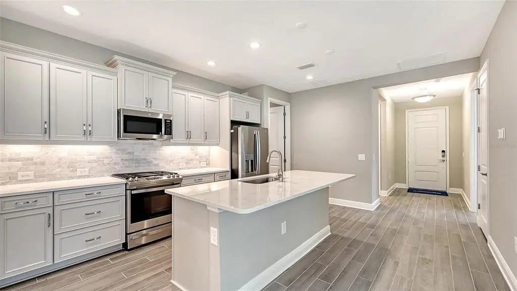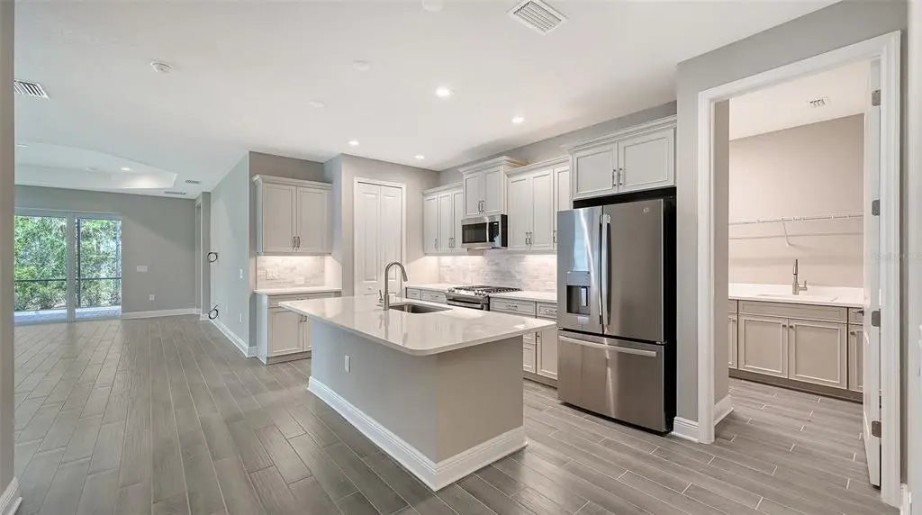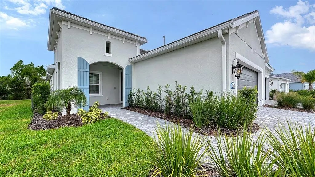 Step into this bright and spacious Sandcastle 2, where thoughtful design and modern upgrades create a welcoming retreat. Featuring wood-look tile flooring throughout, 8’ interior doors, and 9'4" ceilings, this home feels open, airy, and full of natural light. The upgraded kitchen is perfect for entertaining, complete with white cabinetry, quartz countertops, and a large center island that serves as the heart of the home. The owner’s suite offers both comfort and convenience, with a generous walk-in closet and split vanities in the en-suite bath. A pocket sliding glass door seamlessly connects the great room to a large, covered, and screened lanai, creating the ideal space for indoor-outdoor Florida living. Additional features include impact-resistant windows and smart home technology, providing security and peace of mind. Lawn maintenance and resort-style amenities are included in the low HOA fee. Located in the amenity-rich, natural gas community of Grand Palm, just minutes from Downtown Venice, Wellen Park, Gulf beaches, and I-75—this home combines luxury living with an unbeatable location.