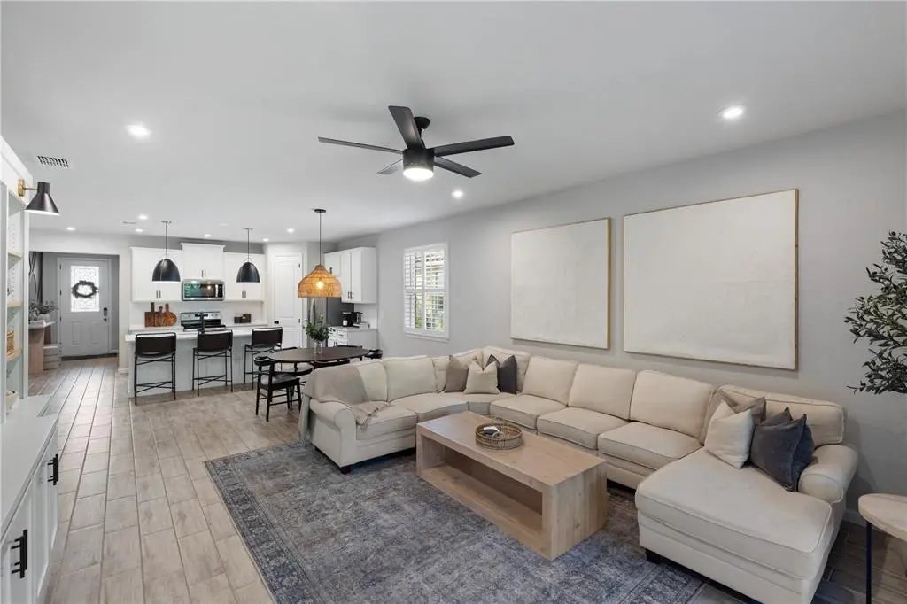 - Interior FeaturesCeiling Fan(s), Chair Rail, Crown Molding, Eating Space In Kitchen, High Ceilings, Kitchen/Family Room Combo, Living Room/Dining Room Combo, Open Floorplan, Smart Home, Split Bedroom, Stone Counters, Thermostat, Tray Ceiling(s), Walk-In Closet(s), Window Treatments