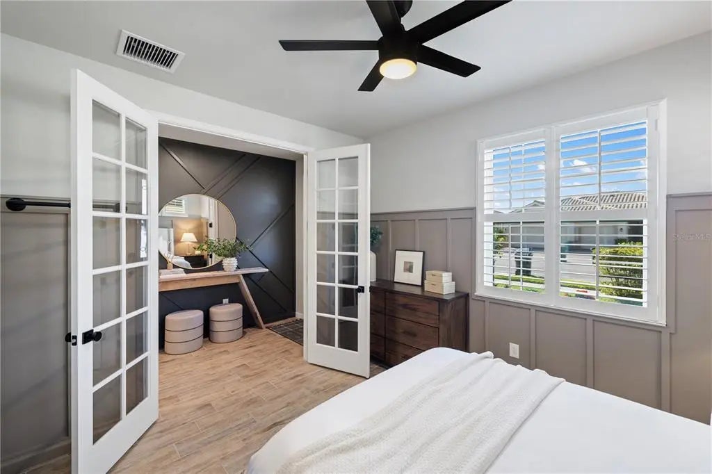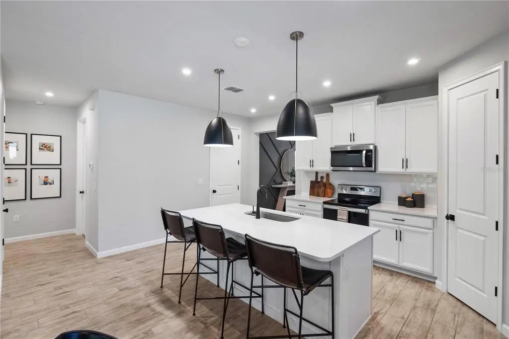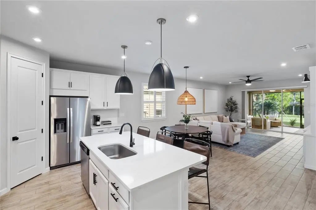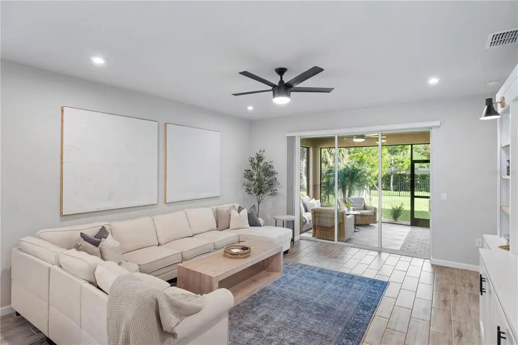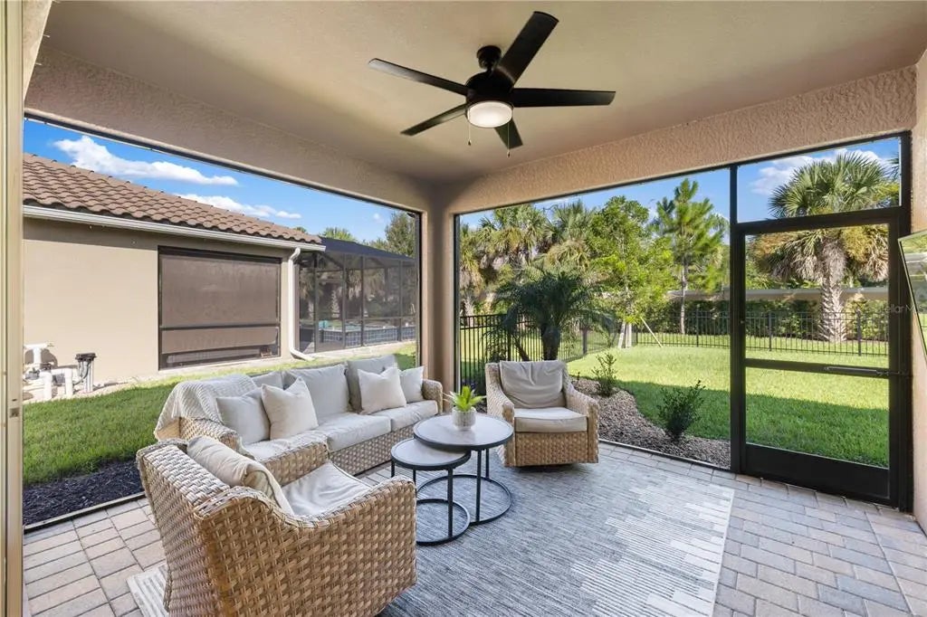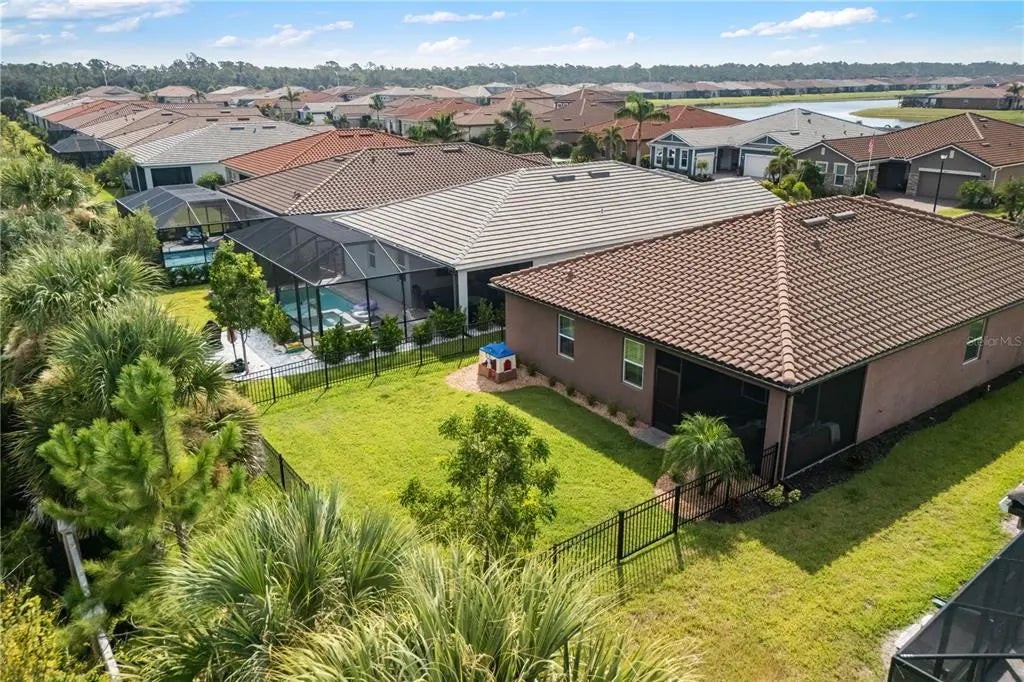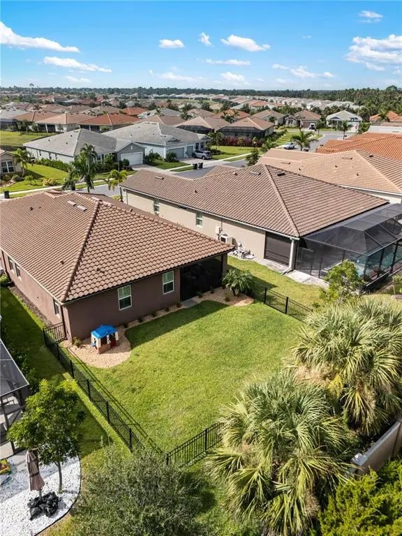 $10,000 PRICE IMPROVEMENT! Enjoy peace of mind knowing FLOOD INSURANCE is NOT REQUIRED on this designer home. Built in 2022, this 3 BEDROOM plus DEN, 2 BATH home in Renaissance at WELLEN PARK offers nearly 2,000 SQFT of stylish living and thoughtful upgrades. Inside, you’ll find wood-look TILE floors, QUARTZ counters, stainless appliances, a tile backsplash, an oversized island with custom molding, and a walk-in pantry with shelving. Details like PLANTATION SHUTTERS, board-and-batten accents, CUSTOM CLOSETS in every room, and cabinetry in the laundry and garage elevate the design. The SCREENED LANAI with TV and fan overlooks the FENCED BACKYARD, perfect for relaxing or entertaining. The primary suite includes a massive walk-in closet, dual sinks, and a walk-in shower. Fresh mulch and a sealed driveway add to the curb appeal. Low HOA covers lawn care and access to resort-style amenities: pool, gym, pickleball, tennis, clubhouse, and a lakefront fire pit. All just minutes from downtown Wellen Park, CoolToday Park, shopping, dining, and Venice beaches.
