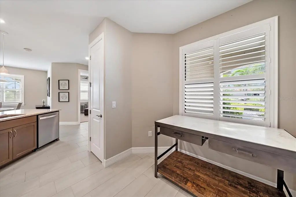 - Exterior FeaturesHurricane Shutters, Rain Gutters