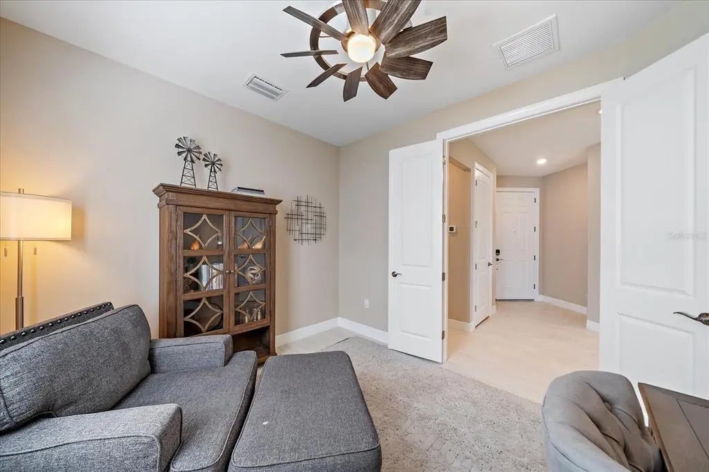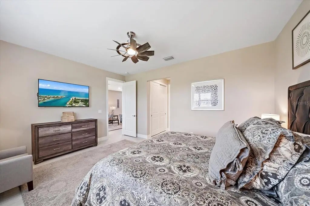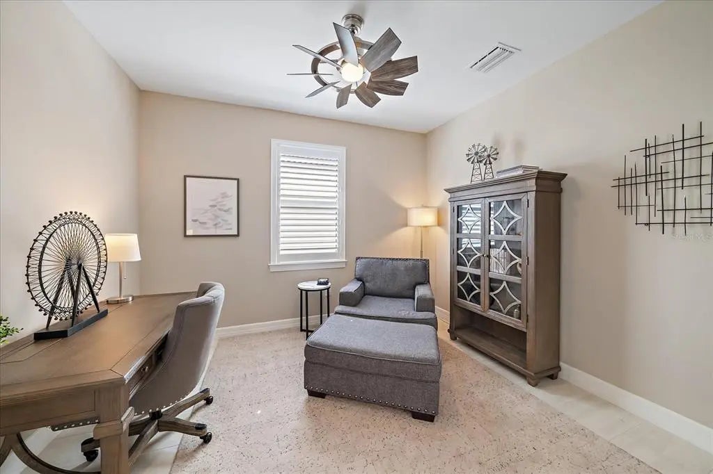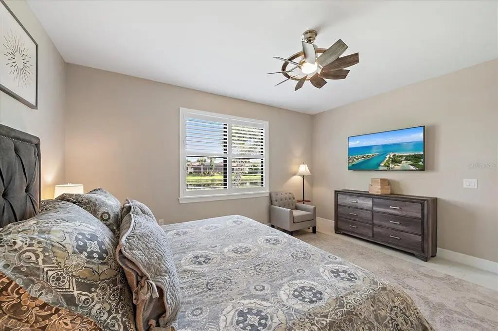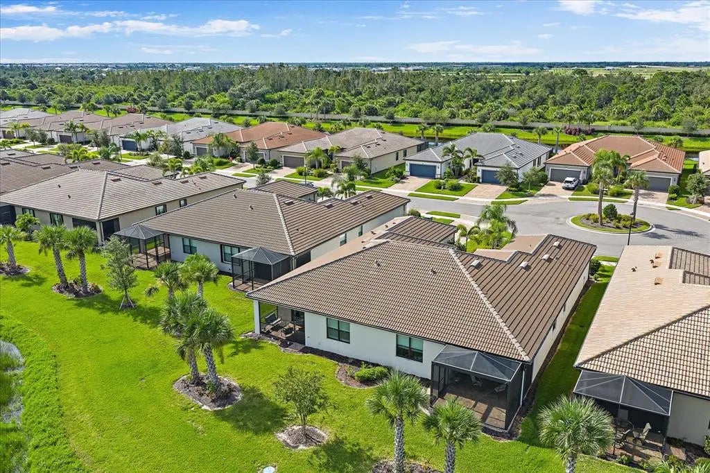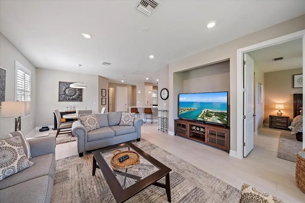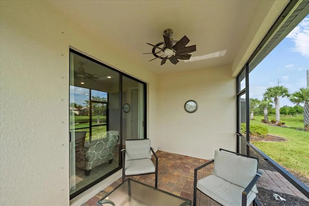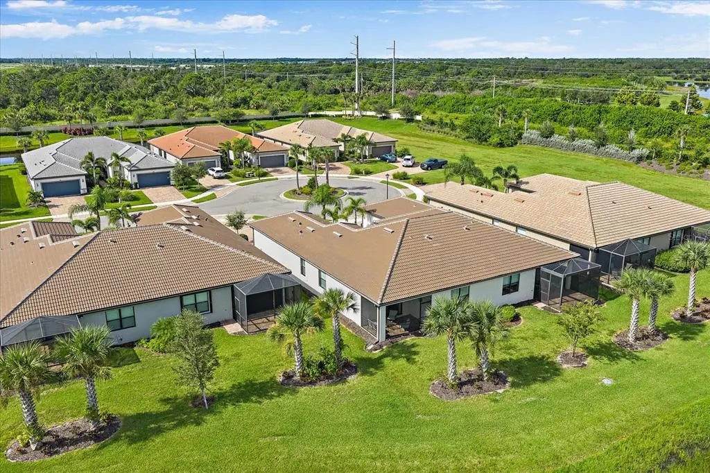 Welcome to this beautifully designed villa home offering 2 bedrooms, 2 bathrooms, and a versatile den. With 10-foot ceilings and 8-foot doors throughout, the interior feels open and inviting. Plantation shutters accent the hurricane-impact windows, adding both style and functionality, while additional hurricane shutters provide peace of mind. A 2021 roof, HVAC & water heater and 2021 appliances ensure lasting value and reliability. Offered fully furnished, this residence is move-in ready for its next owner. From the screened-in lanai, enjoy unobstructed views of the water with the option to extend the lanai for even more outdoor living space. The home is ideally situated on a quiet cul-de-sac and features an oversized, extended paver driveway along with an epoxied garage floor. As part of a maintenance-free community, exterior upkeep is handled for you, allowing more time to enjoy the IslandWalk lifestyle. IslandWalk is a gated, resort-style community that offers an extensive array of amenities designed for both relaxation and recreation. Residents enjoy access to two resort pools and spas, a dedicated lap pool, and a clubhouse with multipurpose rooms, a lanai, pavilion, and catering kitchen for social gatherings. The fitness centers and movement rooms support an active lifestyle, while the library, game room with billiards and ping-pong, and arts and crafts studio provide space for creativity and leisure. Outdoor amenities include Har-Tru tennis courts, 12 pickleball courts, bocce courts, basketball, a playground, fire pits, grills, a community garden, and a dog park with separate sections for large and small pets. Scenic walking trails, a boardwalk, and lush landscaped areas create a serene backdrop for daily living.All of this is just minutes from Wellen Park’s shopping, dining, and entertainment, area beaches, and the Atlanta Braves’ spring training stadium. This villa blends modern comfort, water views, and a vibrant, amenity-rich lifestyle in one of Venice’s most sought-after communities.