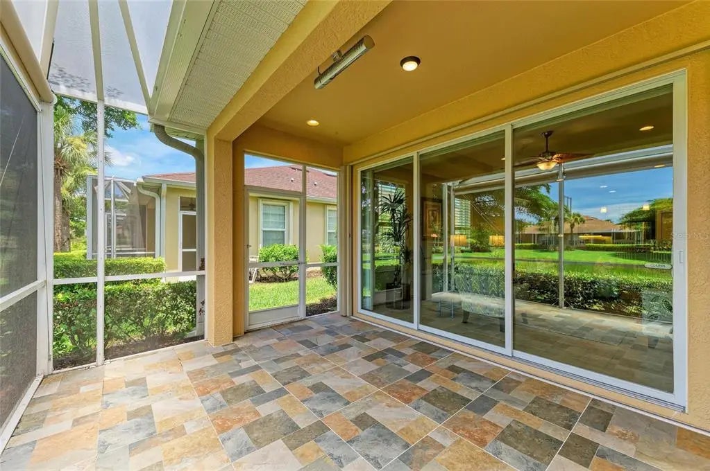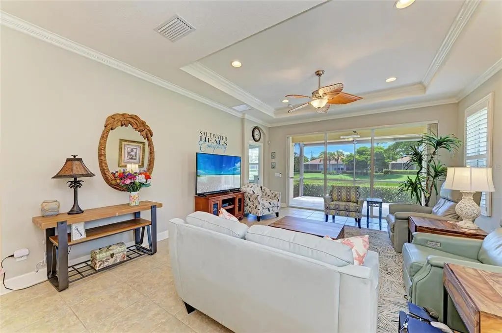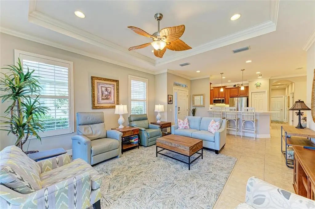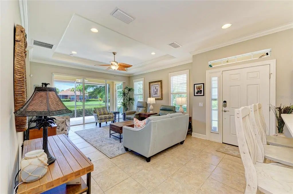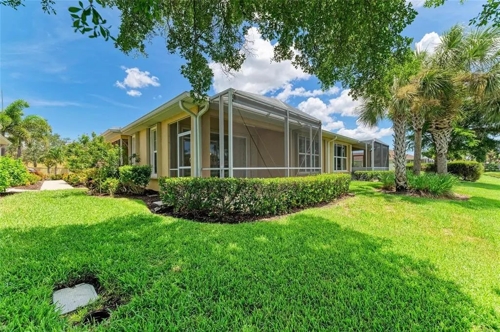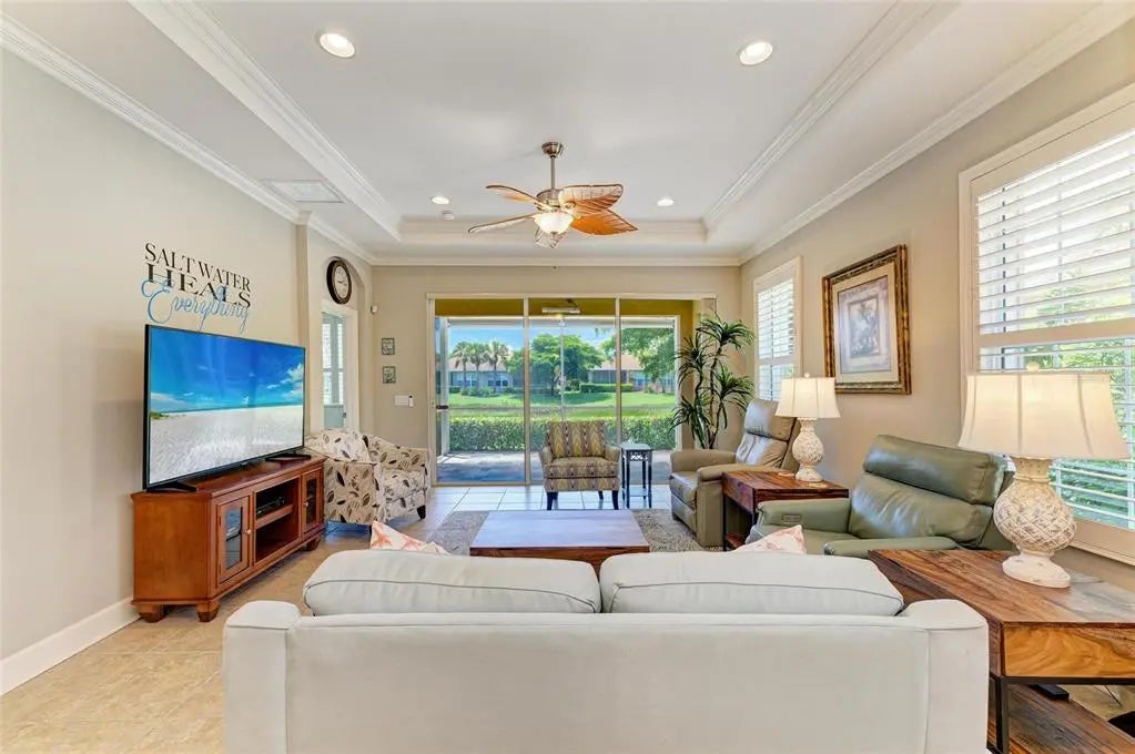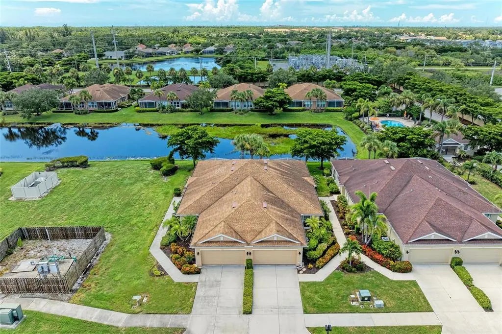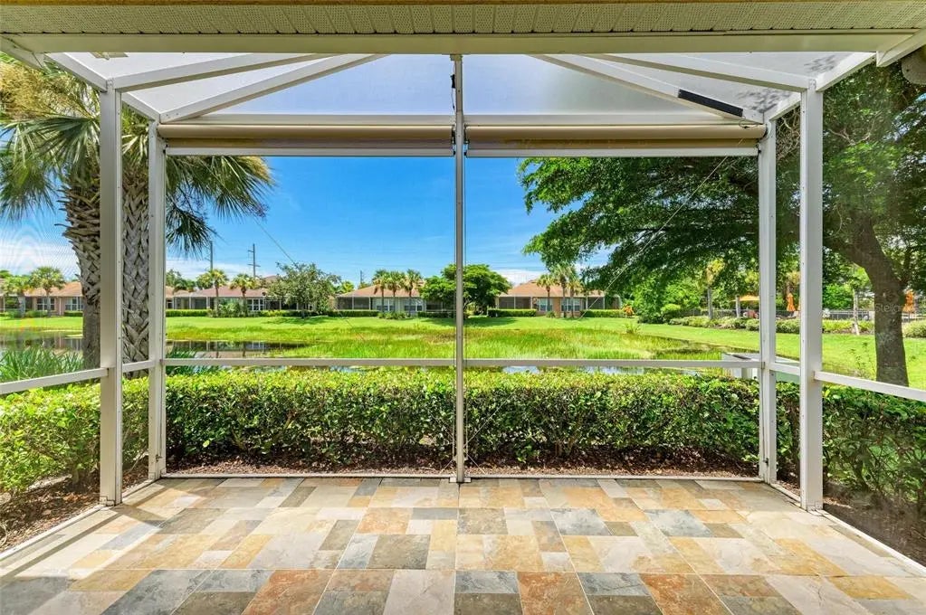 Under contract-accepting backup offers. WOW – PRICED TO SELL! The PERFECT, immaculate Florida maintenance-free villa...NOT in a flood zone, with NO CDD fees, and only a short drive to Venice Beach, has just hit the market! This must-see 2-bedroom, 2-bathroom, 2-car garage plus den/office villa is located in the highly desirable gated community of Verona Reserve in Venice, Florida, and is truly move-in ready. With over $80,000 in designer upgrades already completed, it’s ideal as a seasonal retreat or a year-round residence. Step inside to a bright, open-concept floor plan with split bedrooms for privacy, elegant tray ceilings, crown molding in every room, and beautiful tile flooring throughout. Natural light pours into the main living area through a huge triple-slider and multiple windows. The chef-inspired kitchen is a showstopper with 42-inch crowned cabinetry, modern stainless-steel appliances, under- and over-cabinet lighting, upgraded quartz countertops, a designer tile backsplash, and an extra-long breakfast bar perfect for entertaining. A large pantry with custom pull-out drawers offers exceptional storage, and the dining room just off the kitchen makes hosting effortless. The spacious owner’s suite is a serene retreat with a large walk-in custom closet, triple windows overlooking lush landscaping and a tranquil pond, and a spa-like ensuite bath featuring a beautifully tiled walk-in shower with built-in bench and frameless glass door, a dual-sink vanity with generous storage, and a private water closet. The den/office offers flexibility for remote work or hobbies, with French doors and sound-deadening wall insulation. The guest bedroom includes a walk-in closet and an ensuite bath with a tub/shower combo, also accessible from the hall. The indoor laundry room features wood cabinetry, a laundry sink, and a newer washer and dryer. Step outside to the extended screened lanai with new nonslip porcelain tile, power sunshades, and an overhead heater for cooler evenings. Overlooking the pond, this is the perfect spot for morning coffee or sunset cocktails while enjoying peaceful privacy. This meticulously maintained home also includes upgraded easy-close hurricane shutters, a newer dishwasher, garbage disposal, hot water heater, A/C, washer and dryer, whole-house water softener and filter, epoxy-coated garage floor, new garage opener, extra storage, plantation shutters, and whole-house gutters. Verona Reserve is a peaceful, pet-friendly gated community located just minutes from downtown Venice, shopping, dining, entertainment, healthcare, airports, I-75, and US-41. Amenities include a community pool, dog park, social activities, and neighborhood gatherings. Low HOA fees cover lawn care, roof replacement, exterior painting, and master insurance. This villa is located in Flood Zone X, meaning no flood insurance is required. Don’t miss the rare chance to own a pristine, low-maintenance home in one of Venice’s most sought-after communities — just minutes from the Gulf Coast beaches and the charm of Venice’s historic district!
