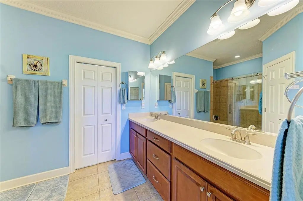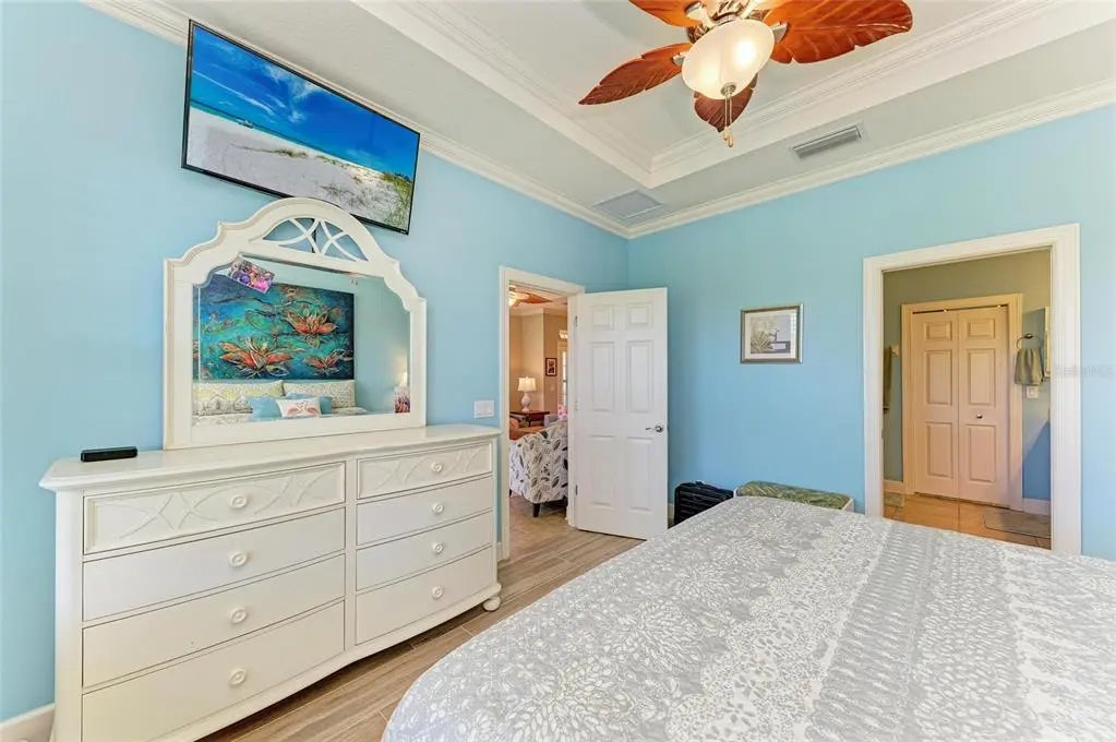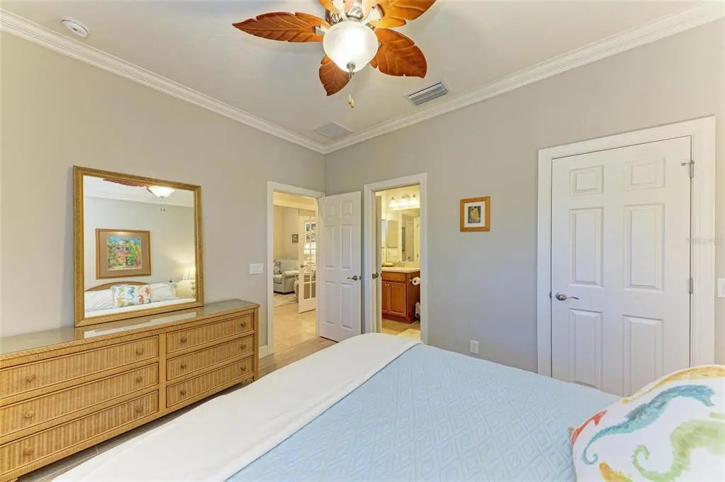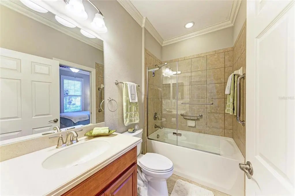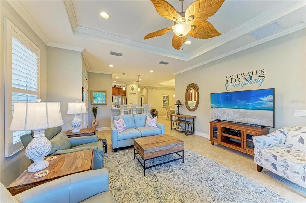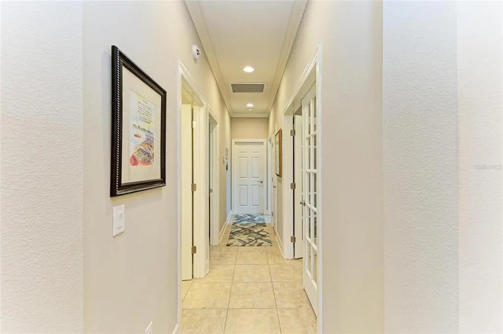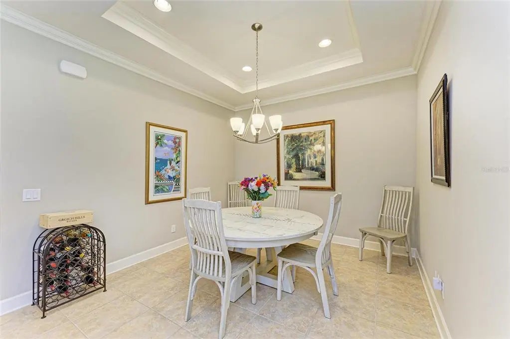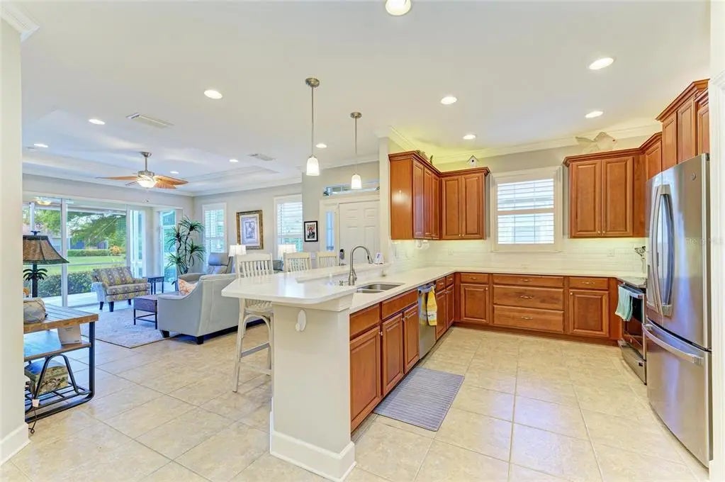 Under contract-accepting backup offers. WOW – PRICED TO SELL! The PERFECT, immaculate Florida maintenance-free villa...NOT in a flood zone, with NO CDD fees, and only a short drive to Venice Beach, has just hit the market! This must-see 2-bedroom, 2-bathroom, 2-car garage plus den/office villa is located in the highly desirable gated community of Verona Reserve in Venice, Florida, and is truly move-in ready. With over $80,000 in designer upgrades already completed, it’s ideal as a seasonal retreat or a year-round residence. Step inside to a bright, open-concept floor plan with split bedrooms for privacy, elegant tray ceilings, crown molding in every room, and beautiful tile flooring throughout. Natural light pours into the main living area through a huge triple-slider and multiple windows. The chef-inspired kitchen is a showstopper with 42-inch crowned cabinetry, modern stainless-steel appliances, under- and over-cabinet lighting, upgraded quartz countertops, a designer tile backsplash, and an extra-long breakfast bar perfect for entertaining. A large pantry with custom pull-out drawers offers exceptional storage, and the dining room just off the kitchen makes hosting effortless. The spacious owner’s suite is a serene retreat with a large walk-in custom closet, triple windows overlooking lush landscaping and a tranquil pond, and a spa-like ensuite bath featuring a beautifully tiled walk-in shower with built-in bench and frameless glass door, a dual-sink vanity with generous storage, and a private water closet. The den/office offers flexibility for remote work or hobbies, with French doors and sound-deadening wall insulation. The guest bedroom includes a walk-in closet and an ensuite bath with a tub/shower combo, also accessible from the hall. The indoor laundry room features wood cabinetry, a laundry sink, and a newer washer and dryer. Step outside to the extended screened lanai with new nonslip porcelain tile, power sunshades, and an overhead heater for cooler evenings. Overlooking the pond, this is the perfect spot for morning coffee or sunset cocktails while enjoying peaceful privacy. This meticulously maintained home also includes upgraded easy-close hurricane shutters, a newer dishwasher, garbage disposal, hot water heater, A/C, washer and dryer, whole-house water softener and filter, epoxy-coated garage floor, new garage opener, extra storage, plantation shutters, and whole-house gutters. Verona Reserve is a peaceful, pet-friendly gated community located just minutes from downtown Venice, shopping, dining, entertainment, healthcare, airports, I-75, and US-41. Amenities include a community pool, dog park, social activities, and neighborhood gatherings. Low HOA fees cover lawn care, roof replacement, exterior painting, and master insurance. This villa is located in Flood Zone X, meaning no flood insurance is required. Don’t miss the rare chance to own a pristine, low-maintenance home in one of Venice’s most sought-after communities — just minutes from the Gulf Coast beaches and the charm of Venice’s historic district!