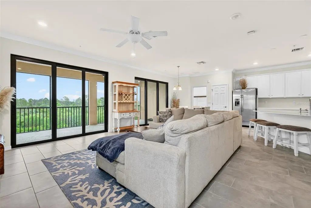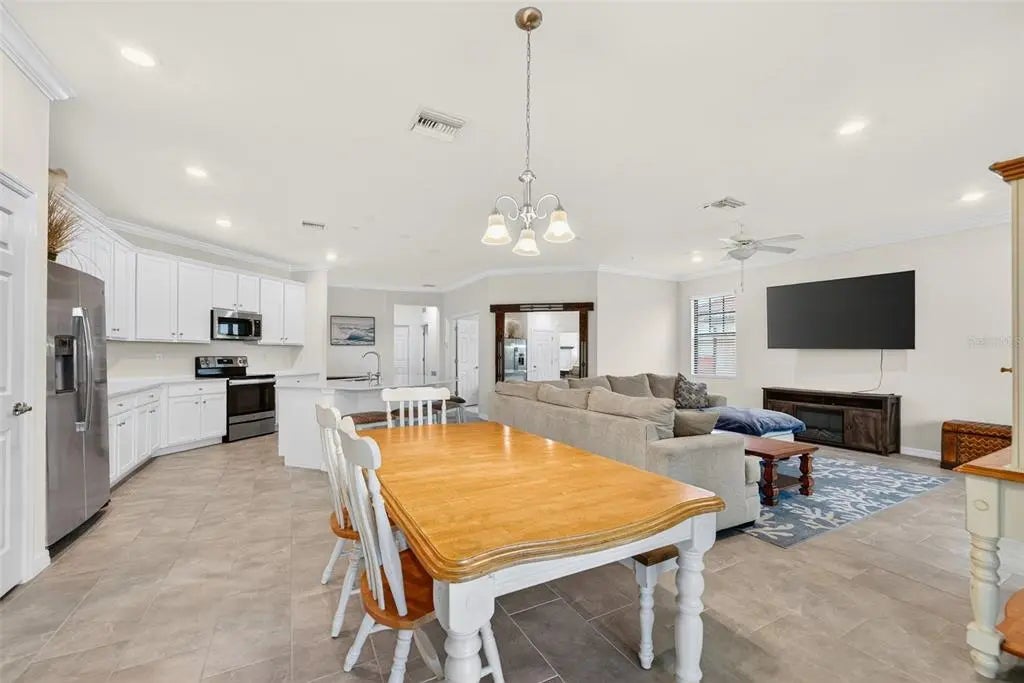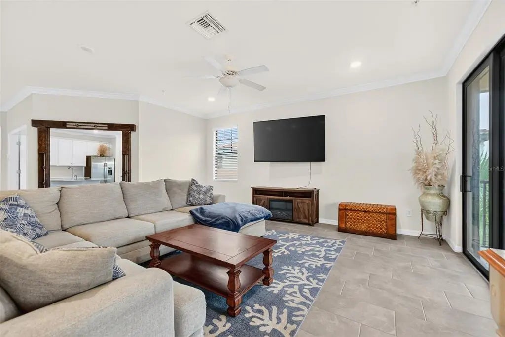 - Interior FeaturesCeiling Fan(s), High Ceilings, In Wall Pest System, Living Room/Dining Room Combo